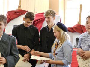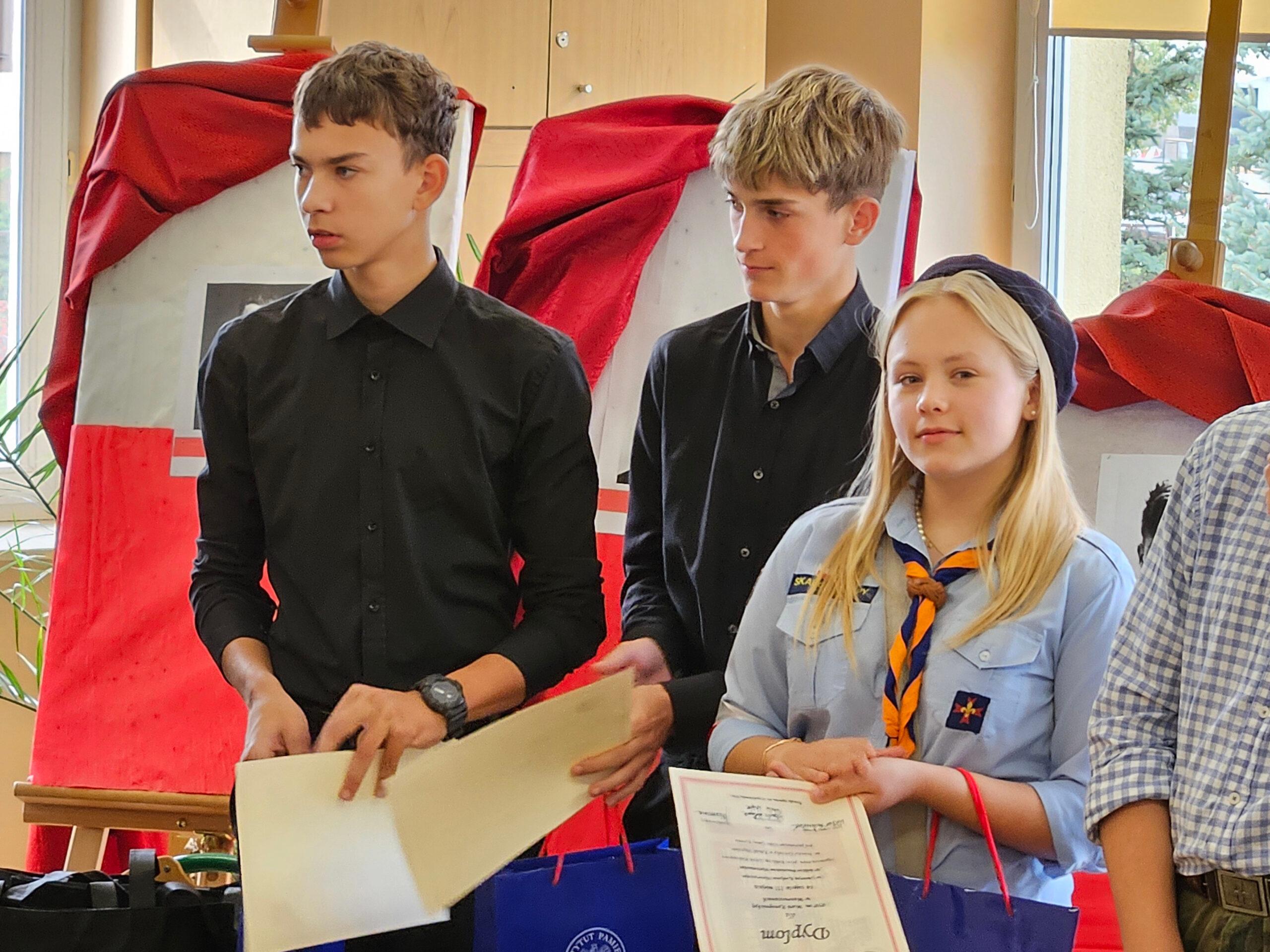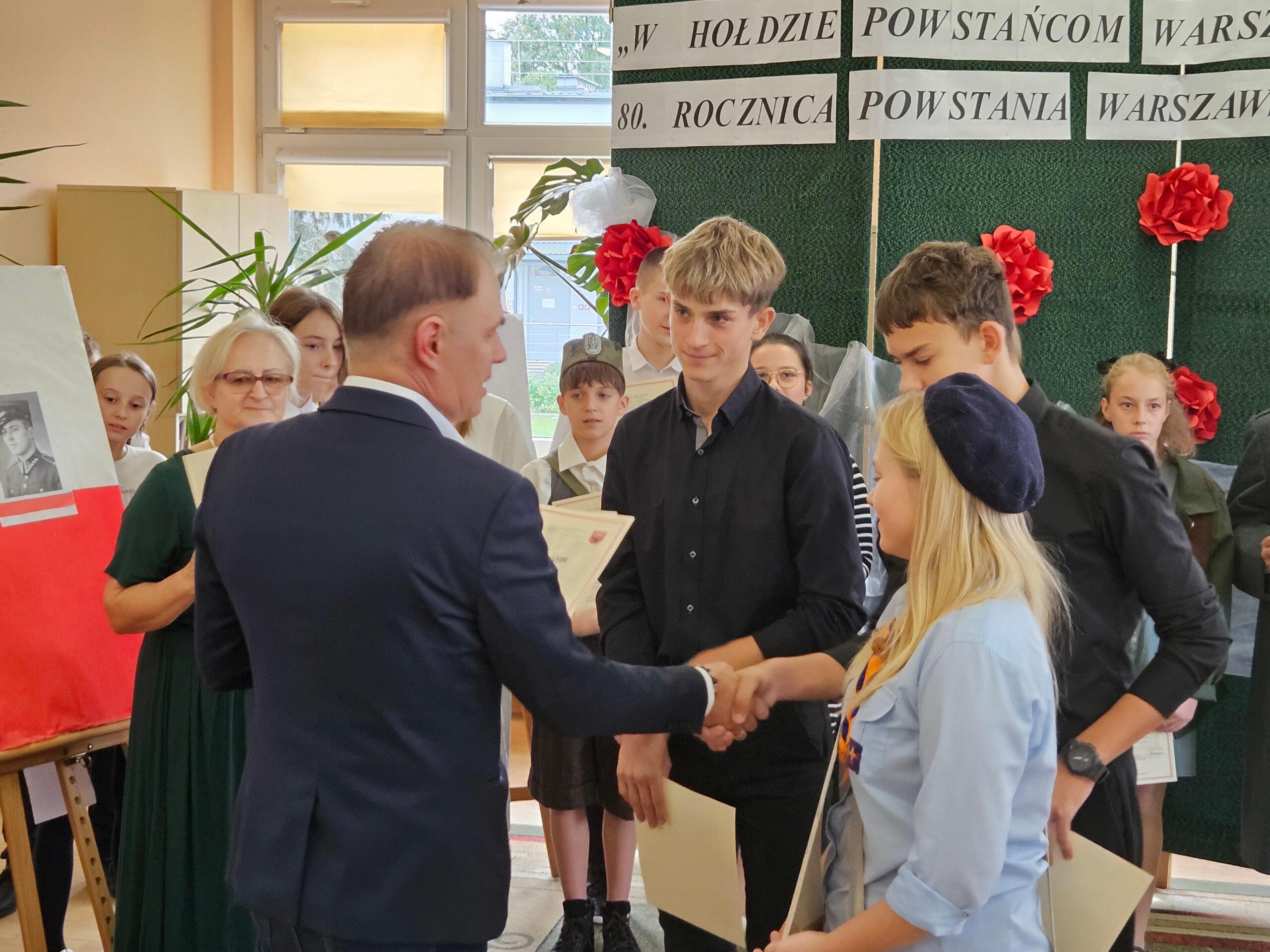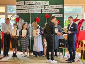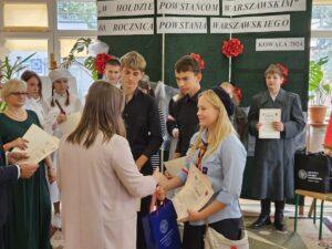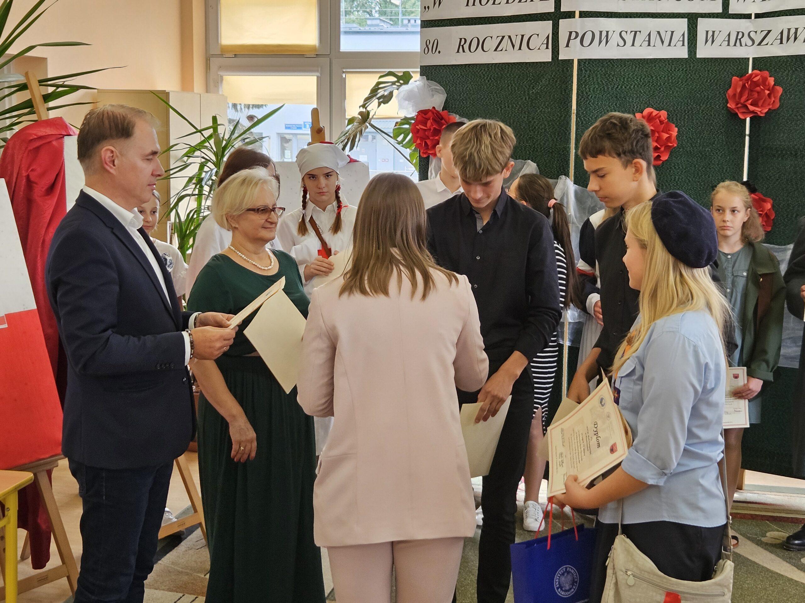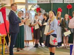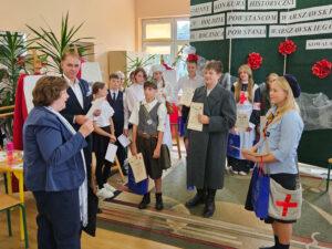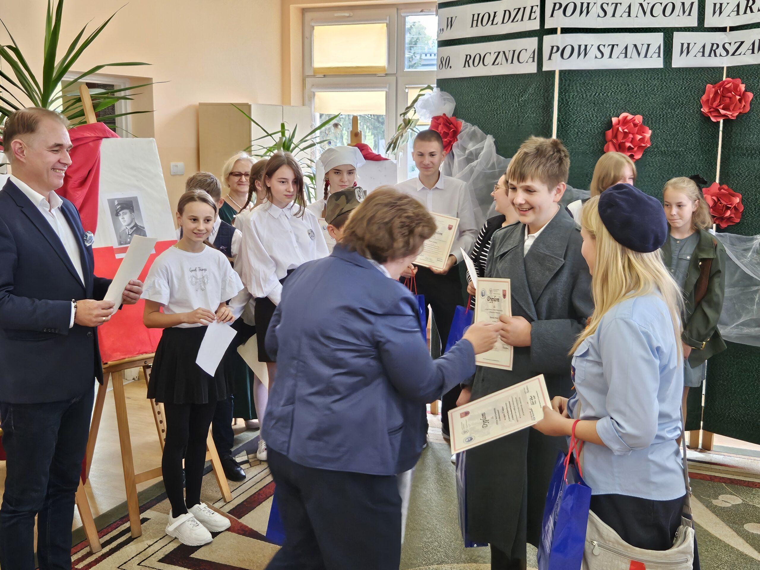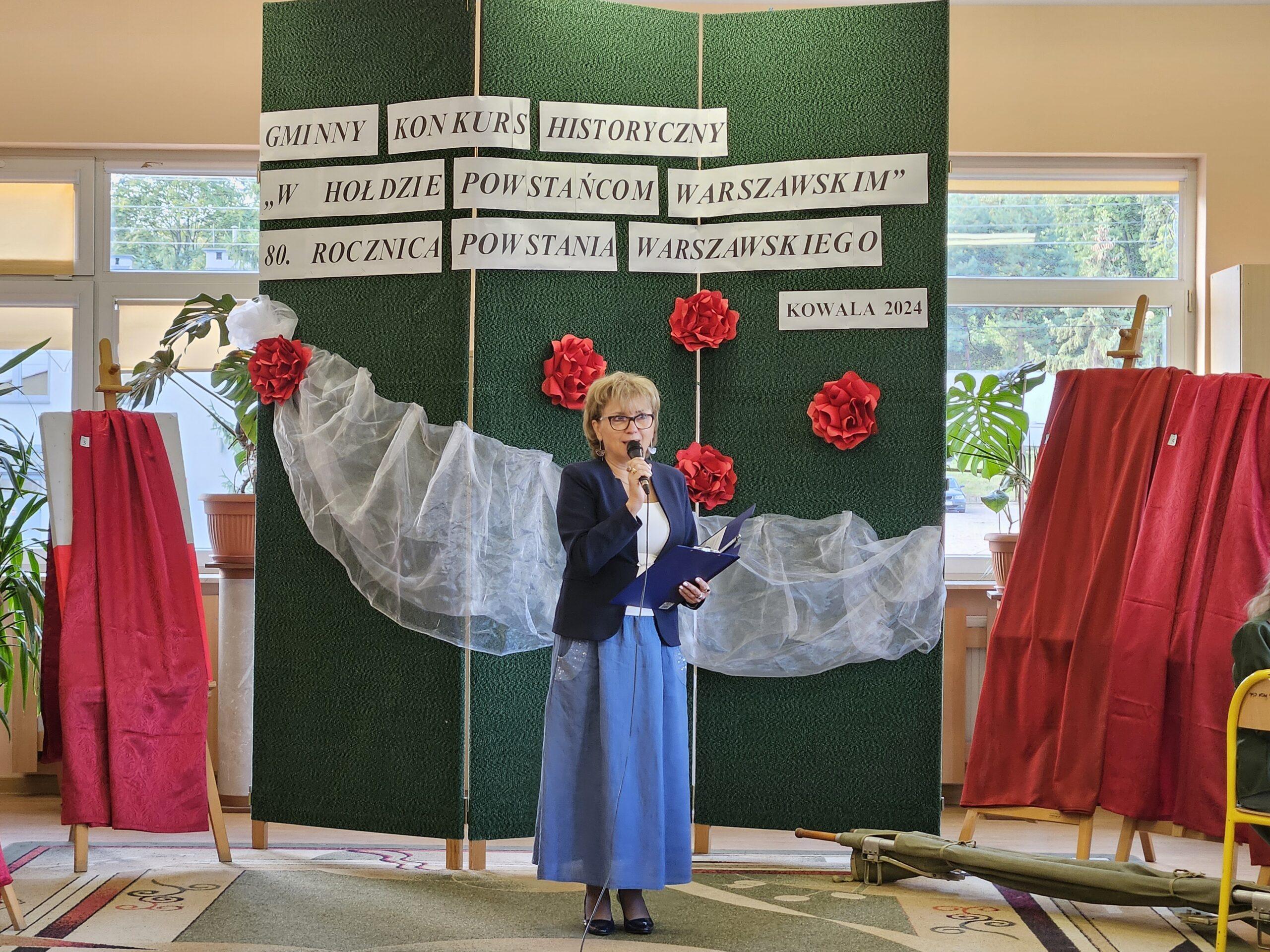 02 października w Publicznej Szkole Podstawowej w Kowali odbył się Gminny Konkurs Historyczny „W hołdzie Powstańcom Warszawskim” zorganizowany z okazji 80. rocznicy wybuchu Powstania Warszawskiego. Jego celem było, m. in. rozbudzanie zainteresowania młodego pokolenia walką Polaków o niepodległość podczas II wojny światowej.Naszą szkołę reprezentowali uczniowie z klasy 8a: Lena Jastrzębska, Adam Maciąg i Igor Szot, zajmując w zmaganiach drużynowych III miejsce. Nagrodę specjalną otrzymała Lena Jastrzębska. Jury doceniło jej umiejętności aktorskie podczas prezentacji monodramu opartego na wspomnieniach sanitariuszki Barbary Bobrownickiej – Fricze ps. Oleńka.