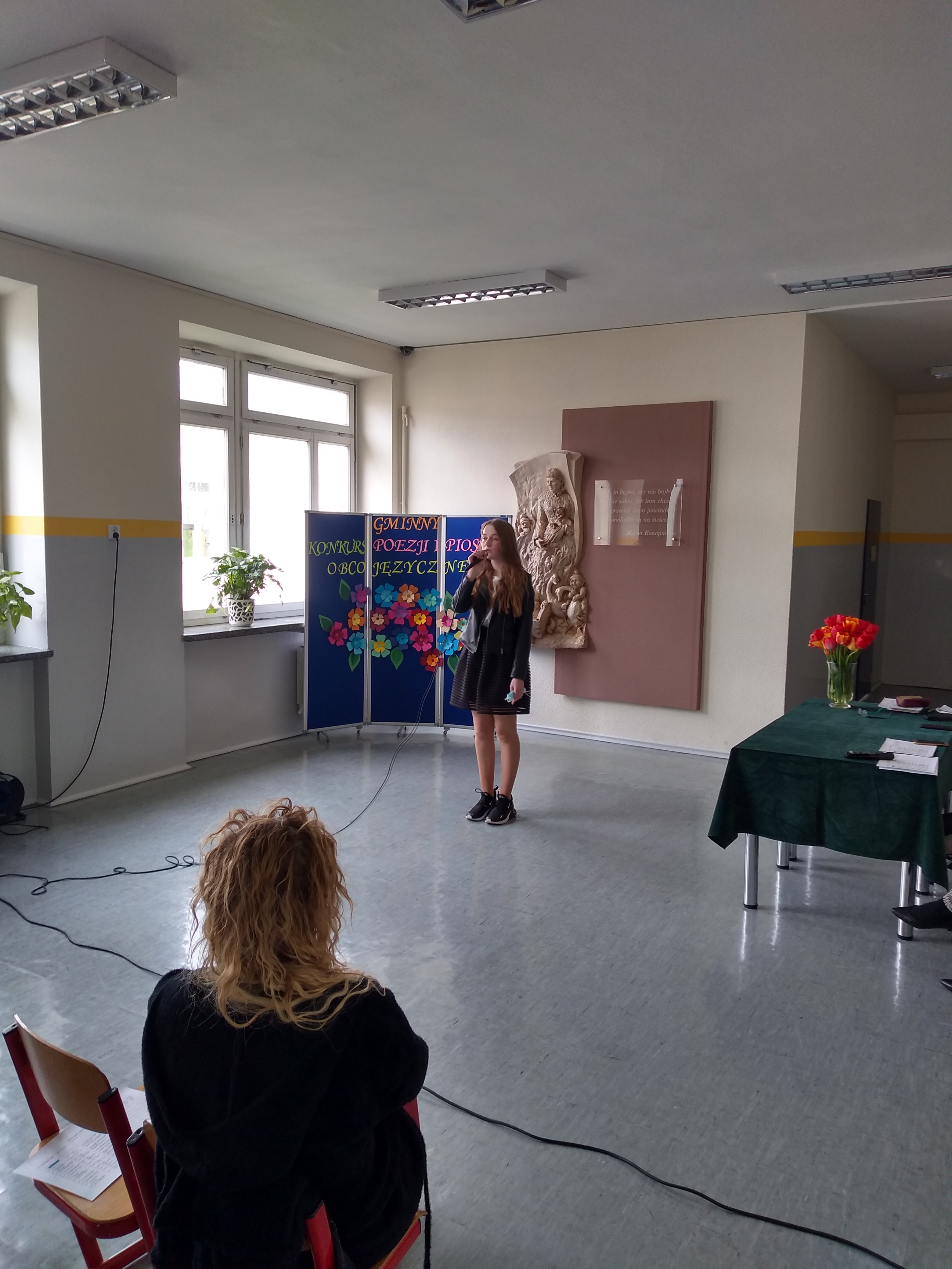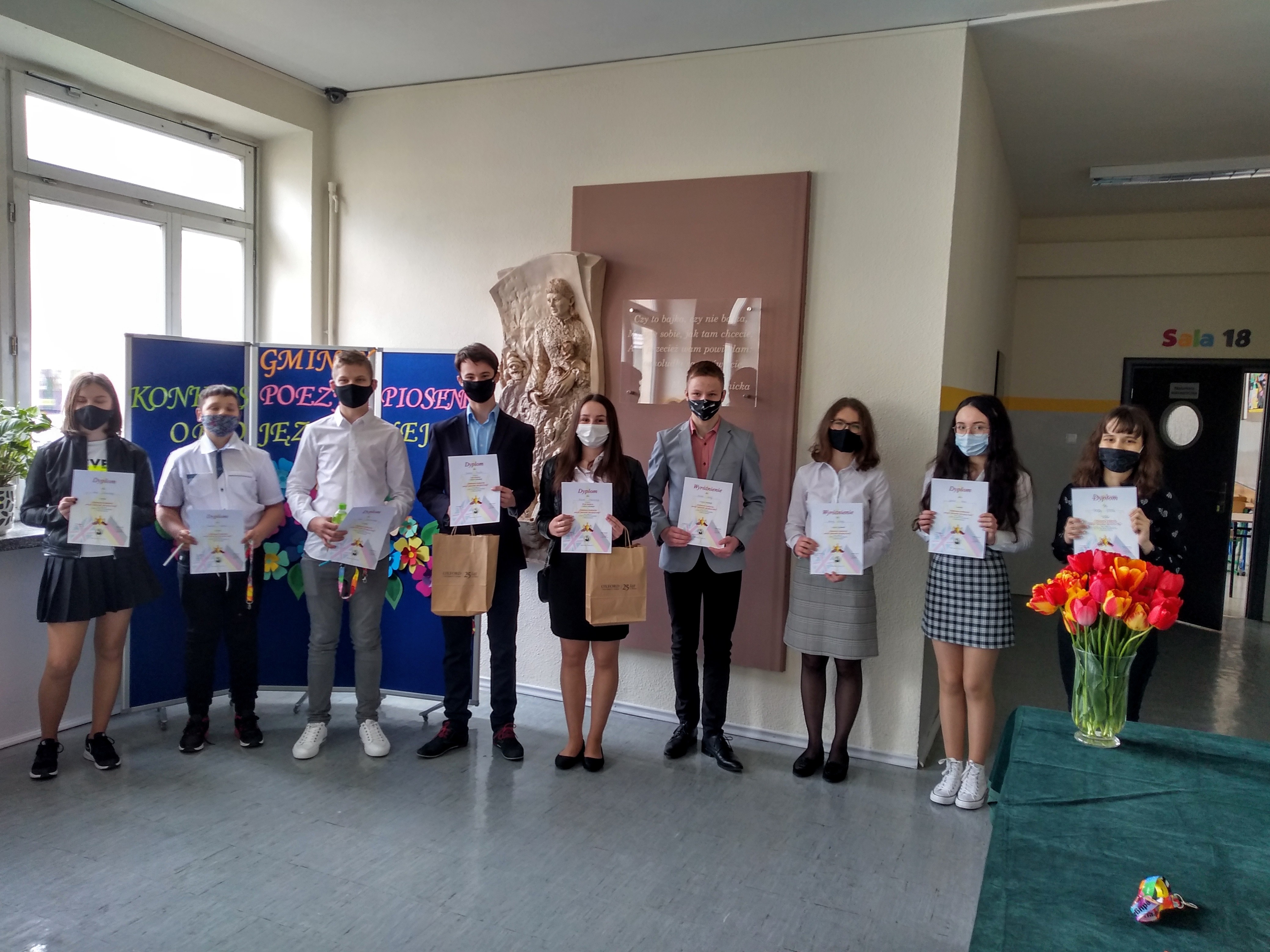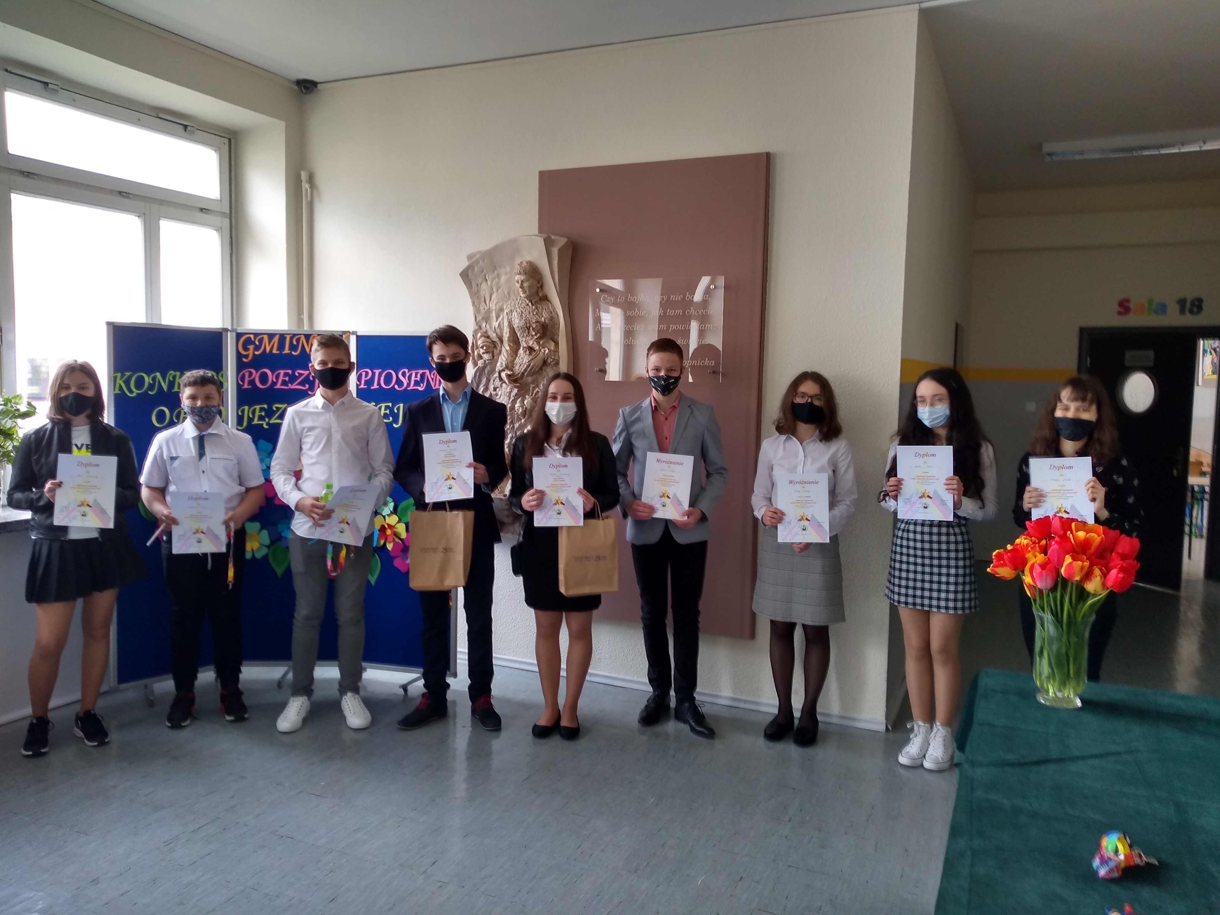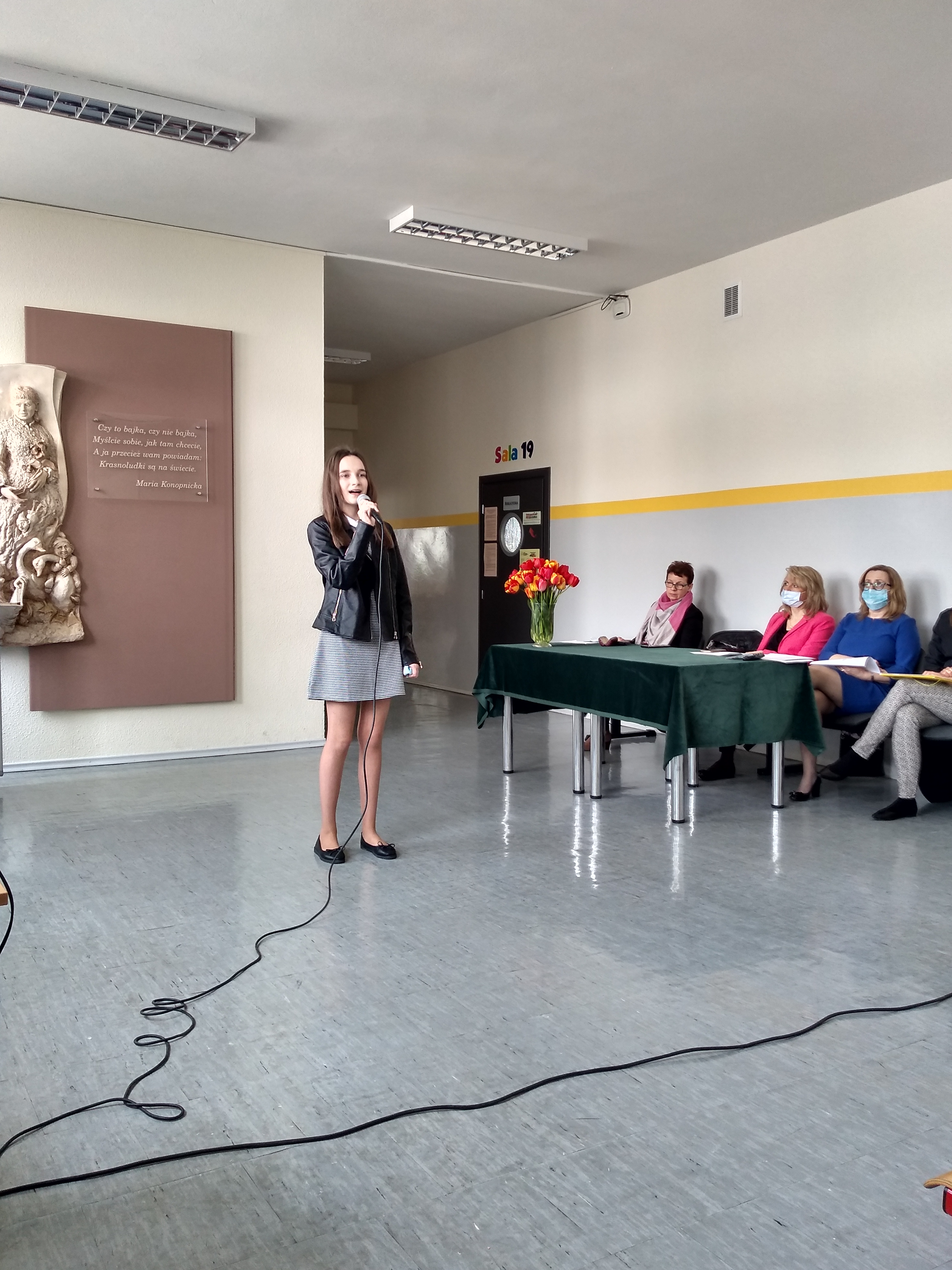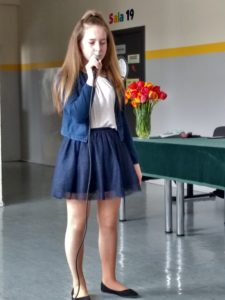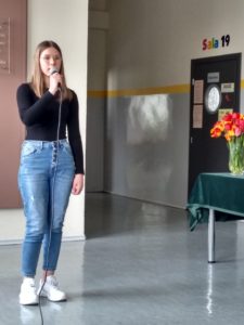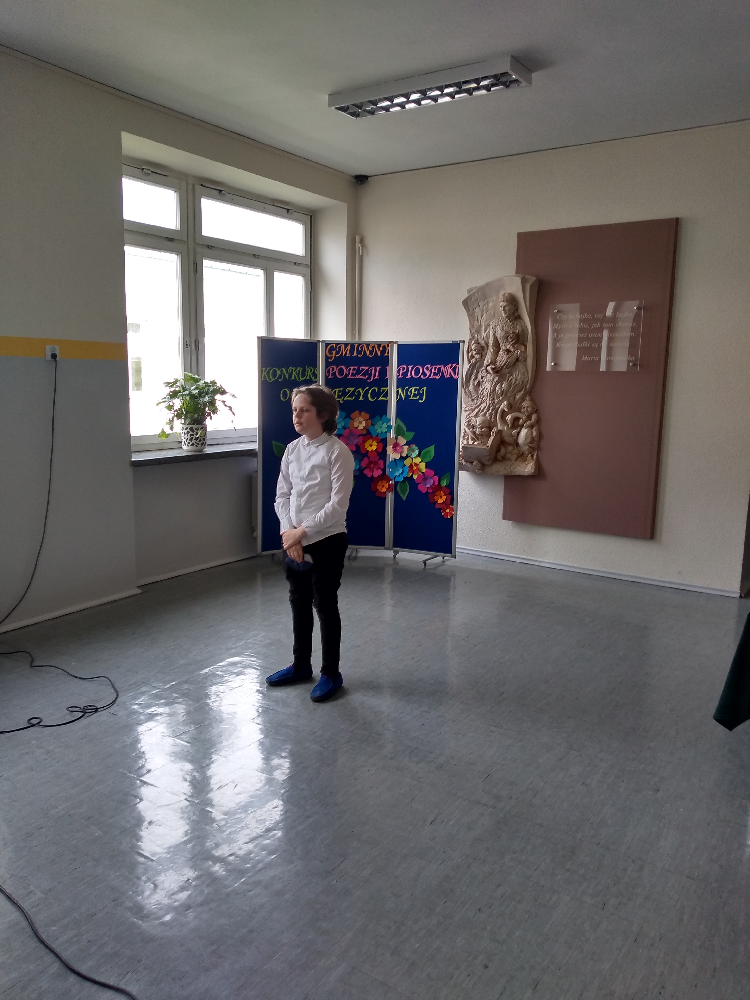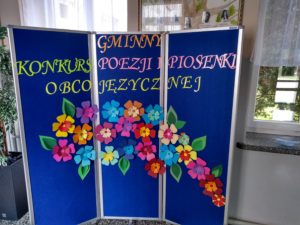 W środę 5 maja gościliśmy w naszej szkole 24 uczestników „Gminnego Konkursu poezji i piosenki obcojęzycznej”. Przyjechali do nas uczniowie ze wszystkich szkół naszej gminy i zaprezentowali swoje utwory po angielsku lub niemiecku w dwóch kategoriach: recytacja i śpiew.