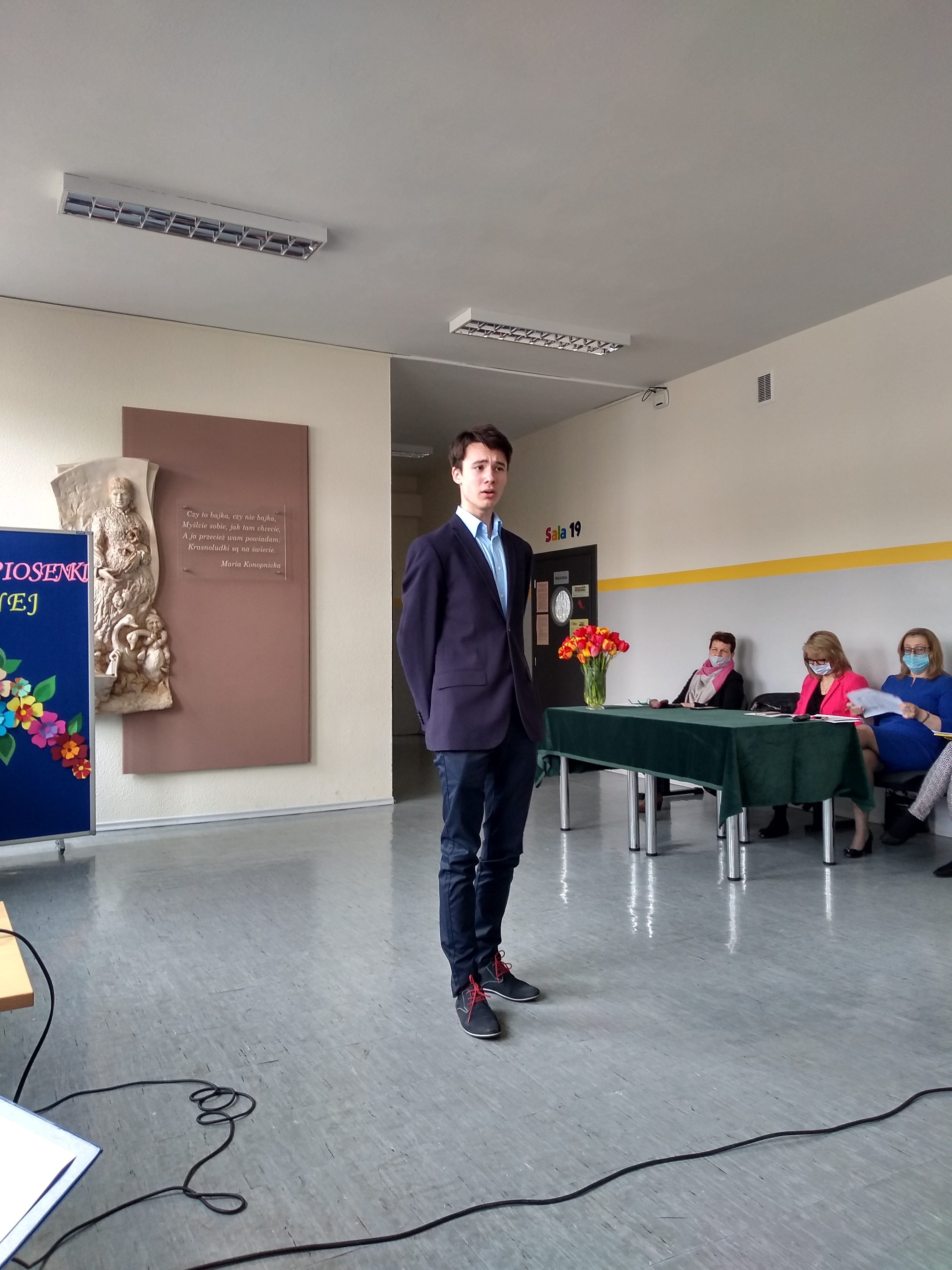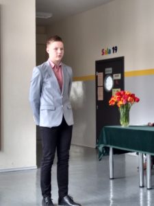 I miejsce – Bartosz Pszczółka (uczeń naszej szkoły; recytacja po angielsku)