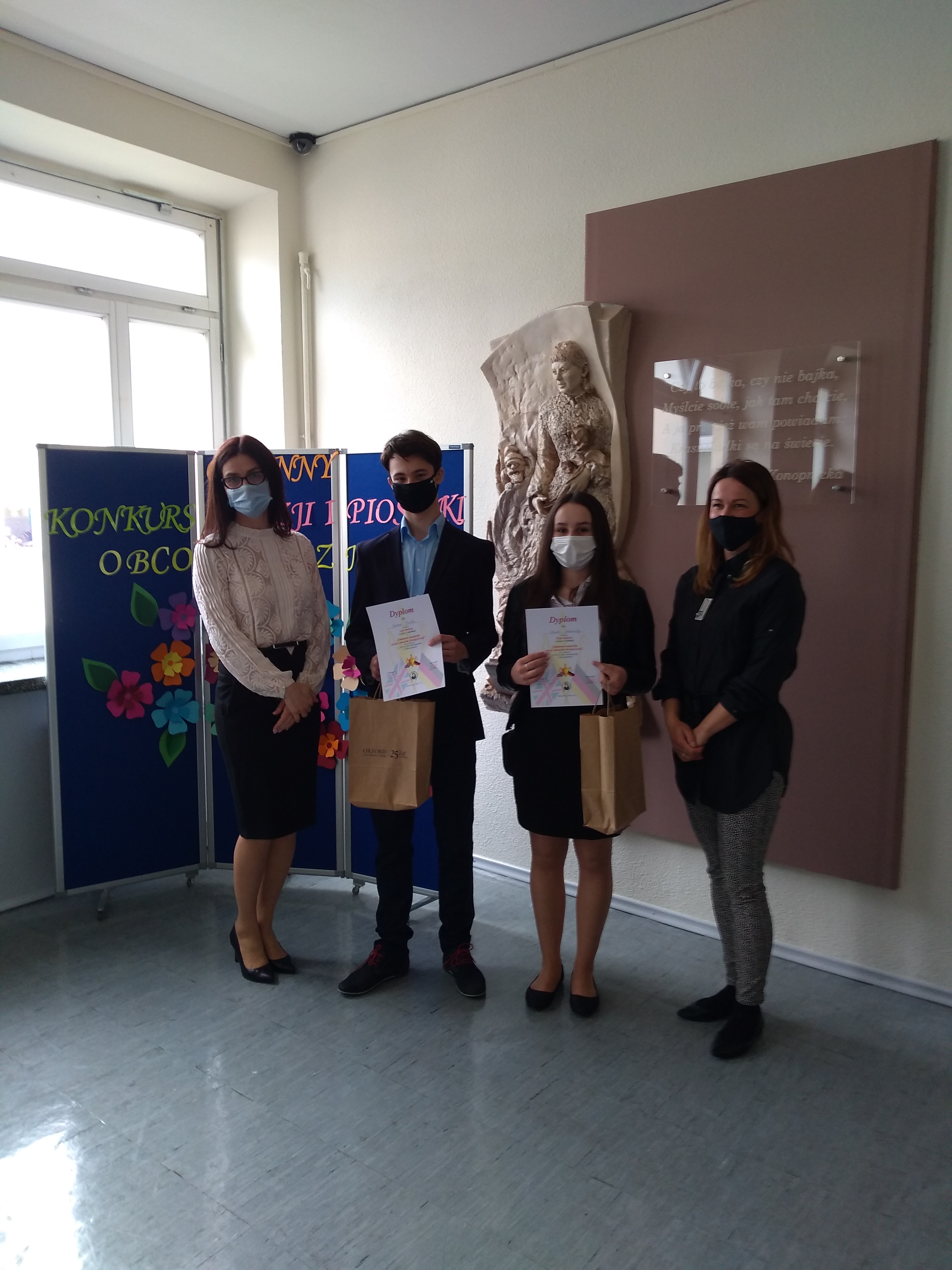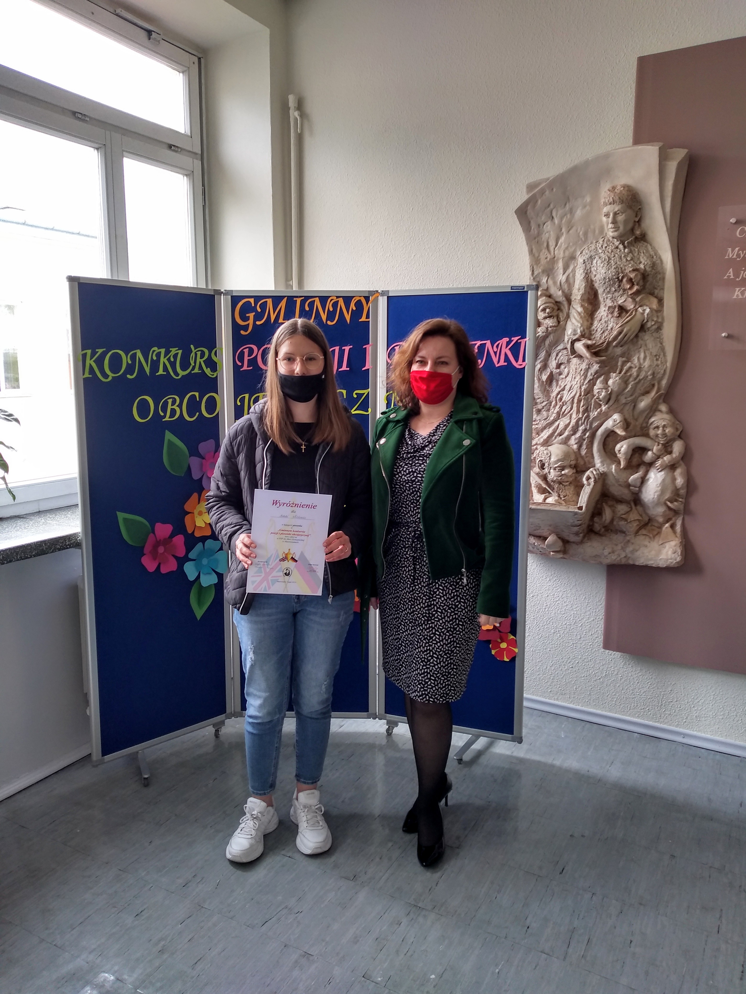 oraz dwa wyróżnienia powędrowały do uczniów również naszej szkoły za recytację po niemiecku dla Malwiny Łobody i Michała Latały