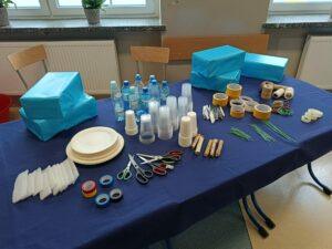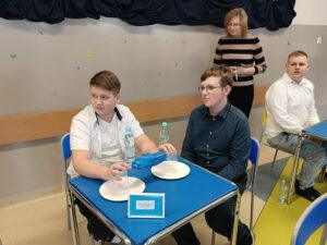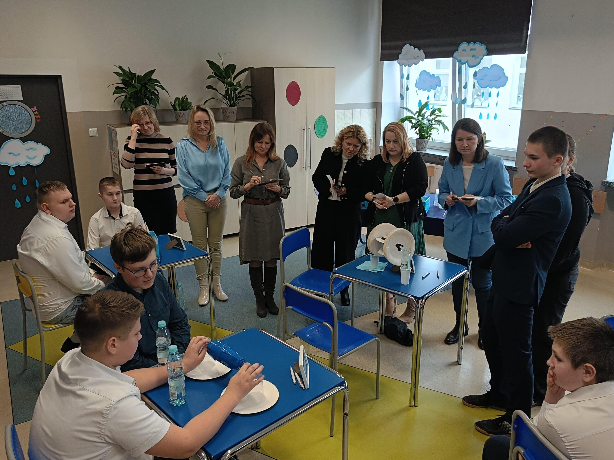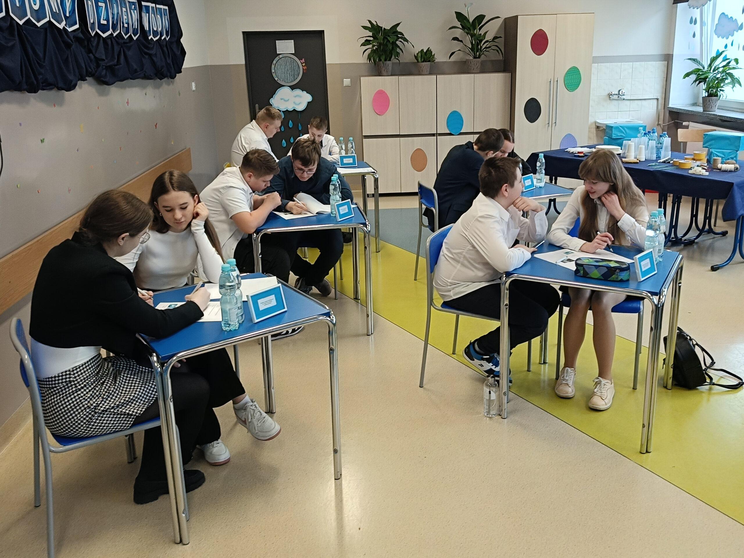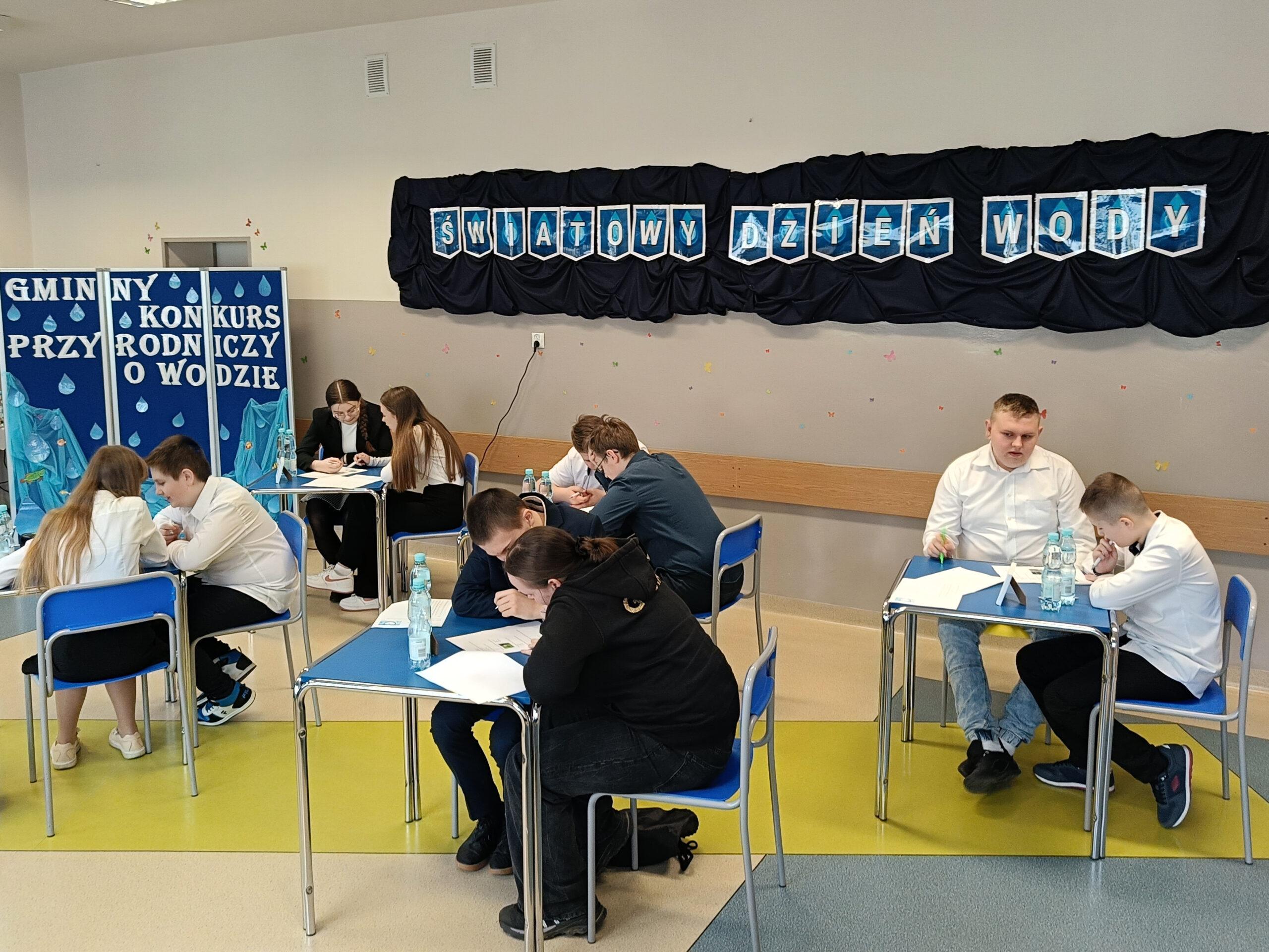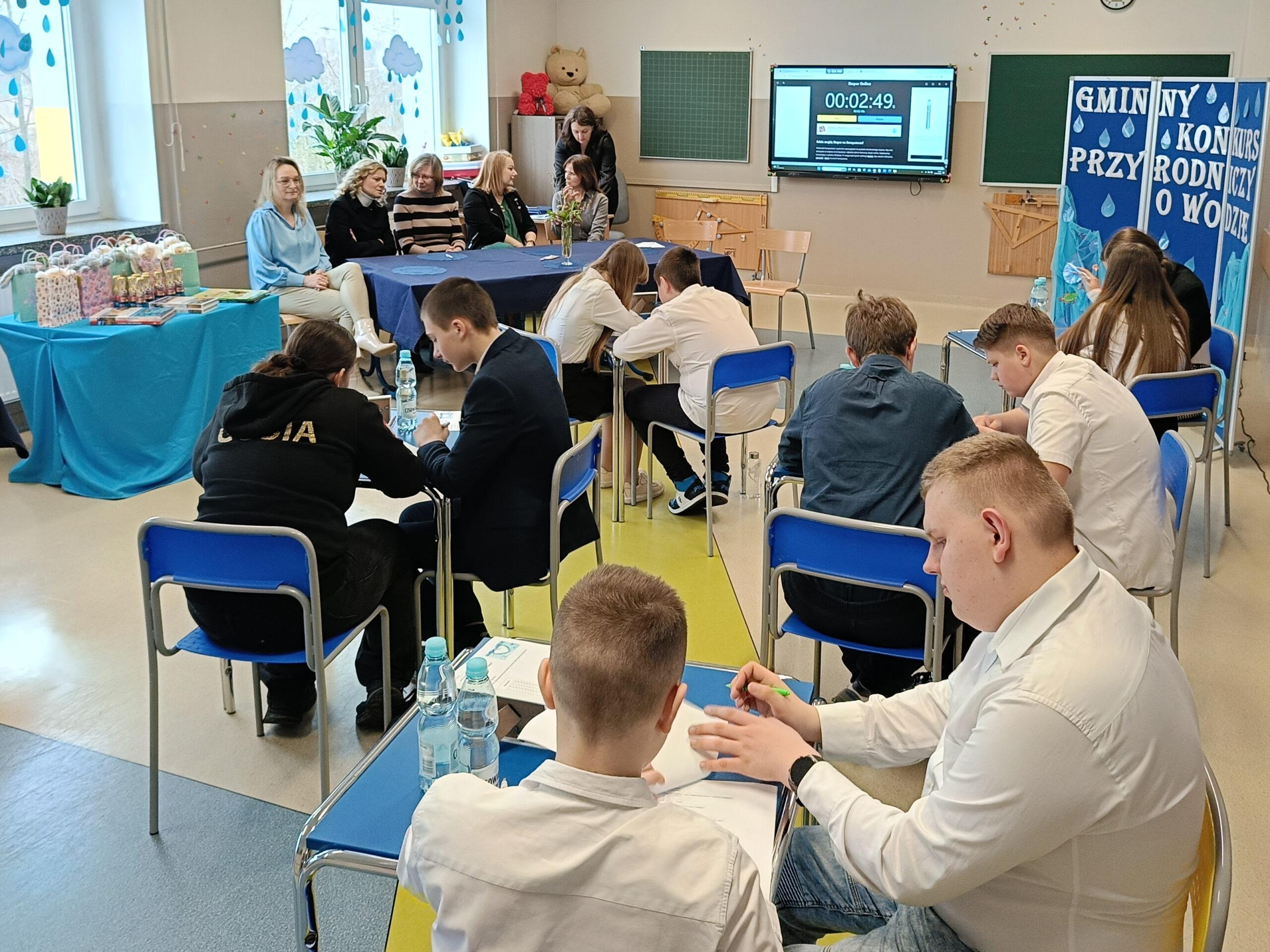 Obchodząc w naszej szkole Dzień Wody, chcemy popularyzować wiedzę o tym, jak wielką rolę odgrywa woda, że trzeba ją szanować i jak wielkie zagrożenie niesie ze sobą spadek jej zasobów. Już po raz trzeci z tej okazji zaprosiliśmy wszystkie szkoły z naszej gminy do udziału w konkursie przyrodniczym o wodzie pod hasłem Woda źródłem życia. W zmaganiach konkursowych uczestniczyło pięć szkół. Po oficjalnym otwarciu spotkania przez panią dyrektor Małgorzatę Trelkę uczniowie sprawdzali swoją wiedzę, rozwiązując w dwuosobowych zespołach Wodny Quiz. ,,Zamień Energię Wody na Pracę i Zbuduj Koło Wodne! – to tytuł kolejnego zadania, jakie postawiono przed uczestnikami tegorocznej III edycji konkursu. Przed przystąpieniem do pracy uczniowie obejrzeli film na temat odnawialnych źródeł energii, m.in. energii wody oraz prezentację o pracy koła wodnego. Następnie z dowolnie wybranych, przygotowanych przez organizatora materiałów, reprezentanci szkół mieli skonstruować model koła wodnego. Oceniane były: kreatywność i pomysłowość, skuteczność działania, estetyka, sposób wykonania i prezentacji. Zadania konstrukcyjne okazały się wyzwaniem, ale jak co roku mogliśmy podziwiać fantazję i kreatywność małych inżynierów. Praca w zespole ułatwiała działanie, szczególnie, że czasu nie było zbyt dużo, co mobilizowało do skutecznej pracy. Wyobraźnia i pomysłowość pozwoliły zbudować całkiem sprawnie działające koła wodne. Zadanie, by ujarzmić energię wody, zostało wykonane. Po umysłowych szaradach wszyscy zasłużyli na słodki poczęstunek. Konkurs przebiegał w bardzo miłej i radosnej atmosferze, wpisując się już na stałe do kalendarza uroczystości szkolnych.