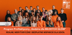 10 października 2023 roku w Światowy Dzień Zdrowia Psychicznego ruszył program profilaktyczny „Godzina dla MŁODYCH GŁÓW” Fundacji UNAWEZA, do którego przystąpiła nasza szkoła.Program ten ma na celu wsparcie dzieci i młodzieży, a także nauczycieli i rodziców w działaniach z obszaru profilaktyki zdrowia psychicznego. Zajęcia będą wzmacniać u młodych ludzi takie kompetencje jak: rozpoznawanie emocji, nazywanie potrzeb, stawianie granic, komunikowanie potrzeby wsparcia, a także będą dotyczyły higieny cyfrowej oraz bezpieczeństwa w sieci.
