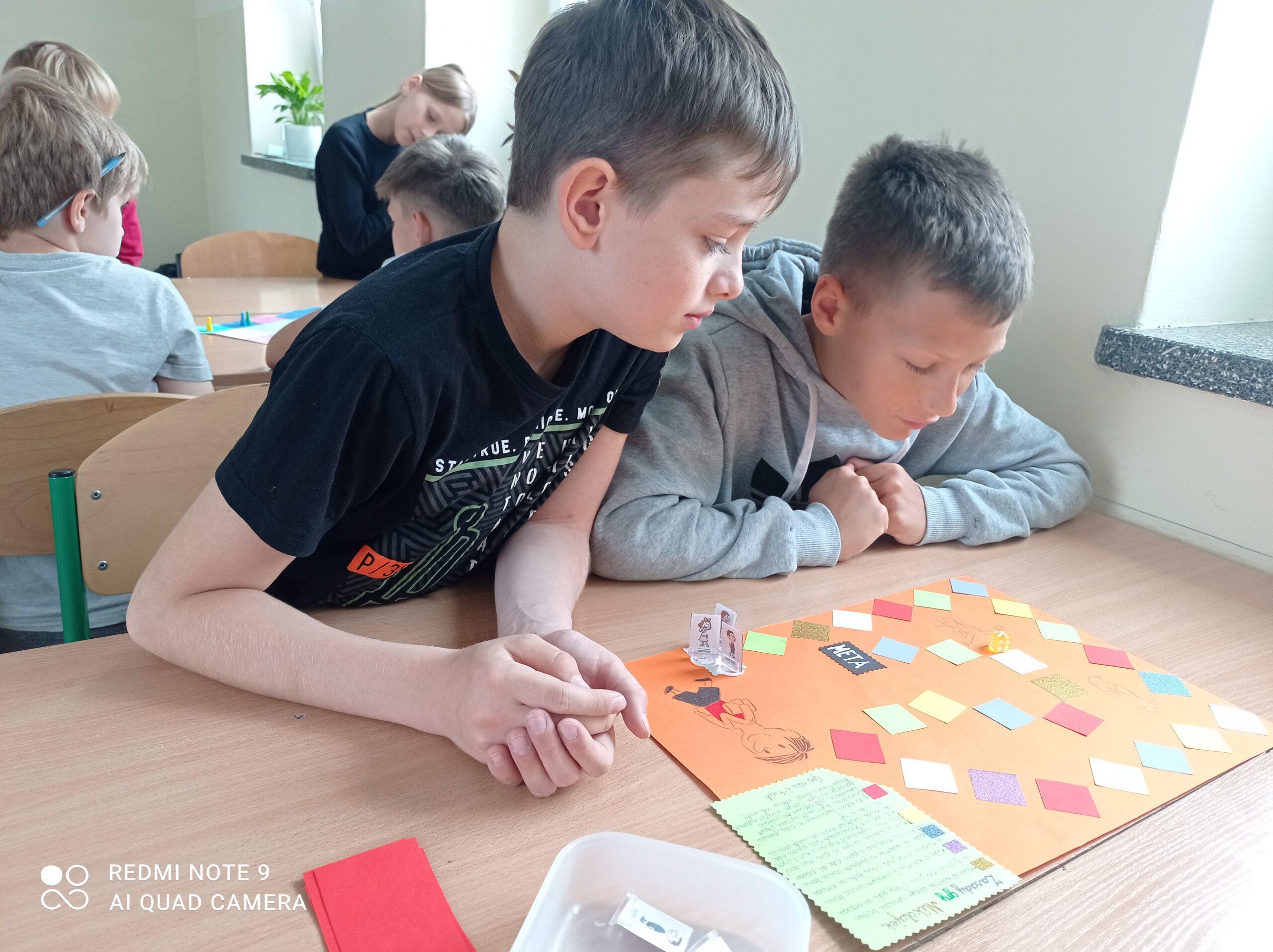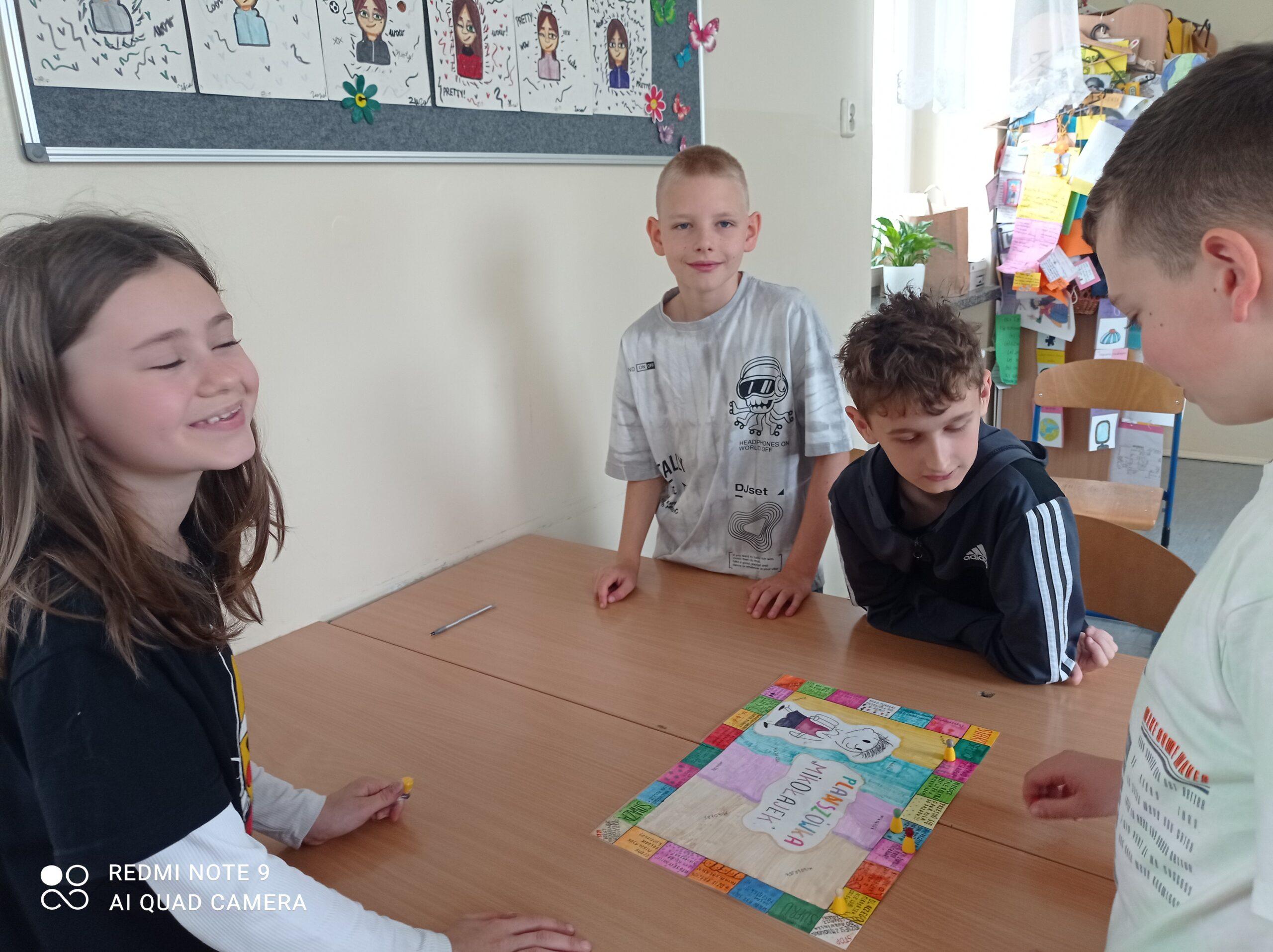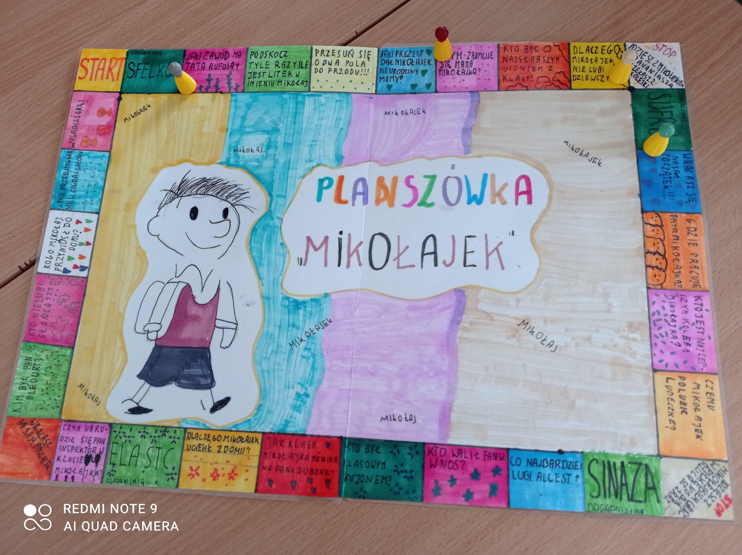 Uczniowie klas czwartych, w ramach innowacji pedagogicznej „Lektury nie muszą być nudne – twórcze spotkania z lekturami”, w niezwykły i kreatywny sposób odkrywali tajemnice opowiadań R. Gościnnego i J.J. Sempe pt. „Mikołajek”.Czwartoklasiści tworzyli własne gry planszowe zainspirowane przygodami bohatera książki. Wymyślali nie tylko fascynujące plansze do gry, ale także samodzielnie wykonali pionki, a nawet kostki do gry, dodając do swoich projektów osobisty i kreatywny wydźwięk. Stworzyli także instrukcje, dzięki którym każdy mógł wcielić się w rolę gracza. Celem tego zadania było nie tylko powtórzenie i utrwalenie wiadomości o lekturze, ale również kształcenie samodzielności i wyobraźni uczniów. Przede wszystkim jednak miało ono służyć dobrej zabawie z książką. Ostatnim etapem realizacji projektu była część najważniejsza, czyli testowanie gier zrobionych przez koleżanki i kolegów. Praca nad planszówkami, a następnie ich wykorzystanie w praktyce, wzbudziły w dzieciach ogromny entuzjazm!