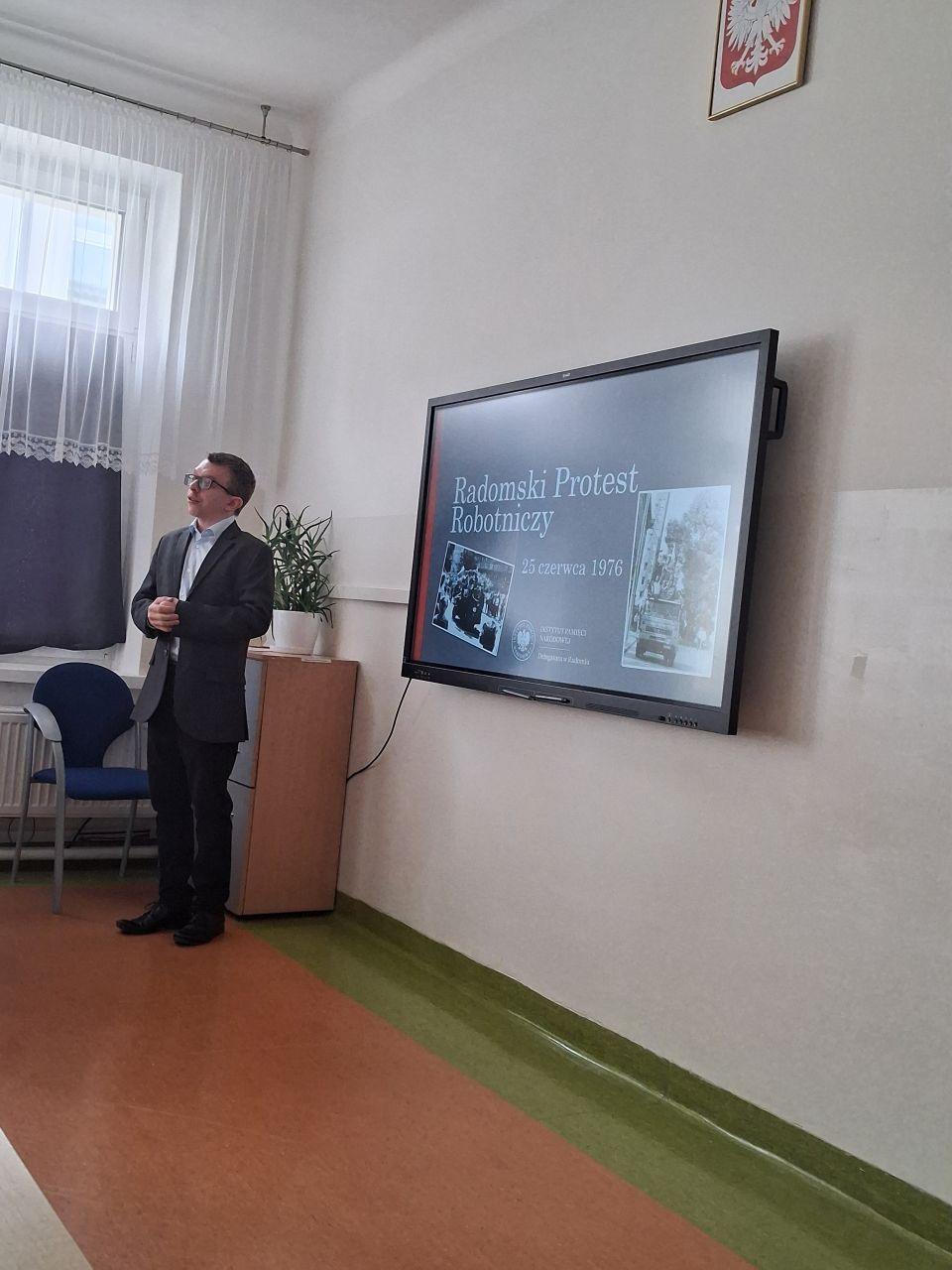 24 kwietnia w naszej szkole odbyły się inspirujące prelekcje i warsztaty prowadzone przez edukatorów Instytutu Pamięci Narodowej Delegatury w Radomiu- panią Annę Antoniak i pana Jana Kwietnia.