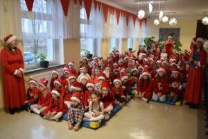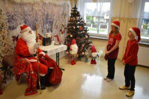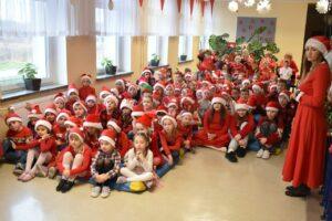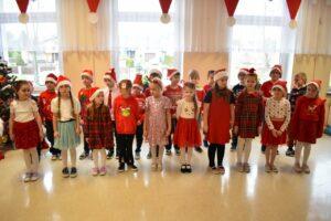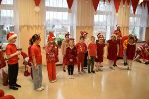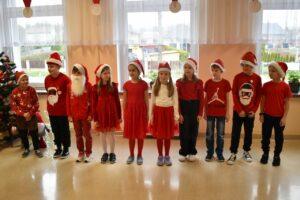 Spotkanie zostało podzielone na dwie tury: poranną i popołudniową, żeby każdy mógł spokojnie zaprezentować Mikołajowi to, co przygotował. A było co oglądać! Dzieci recytowały specjalnie ułożone wierszyki, śpiewały świąteczne piosenki, a niektóre klasy pokazały nawet wesołe tańce, które od razu wprawiły wszystkich w mikołajkowy nastrój.
