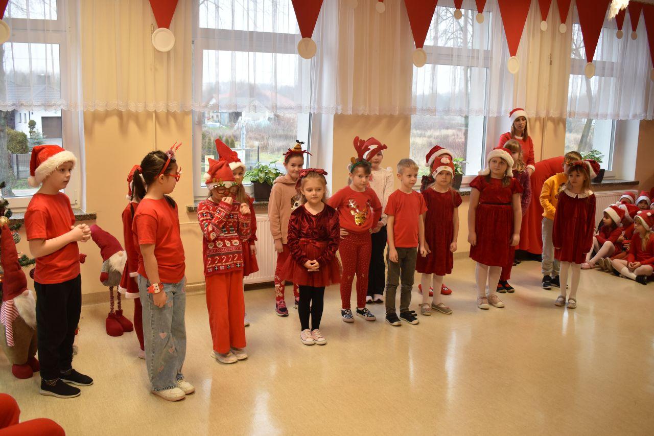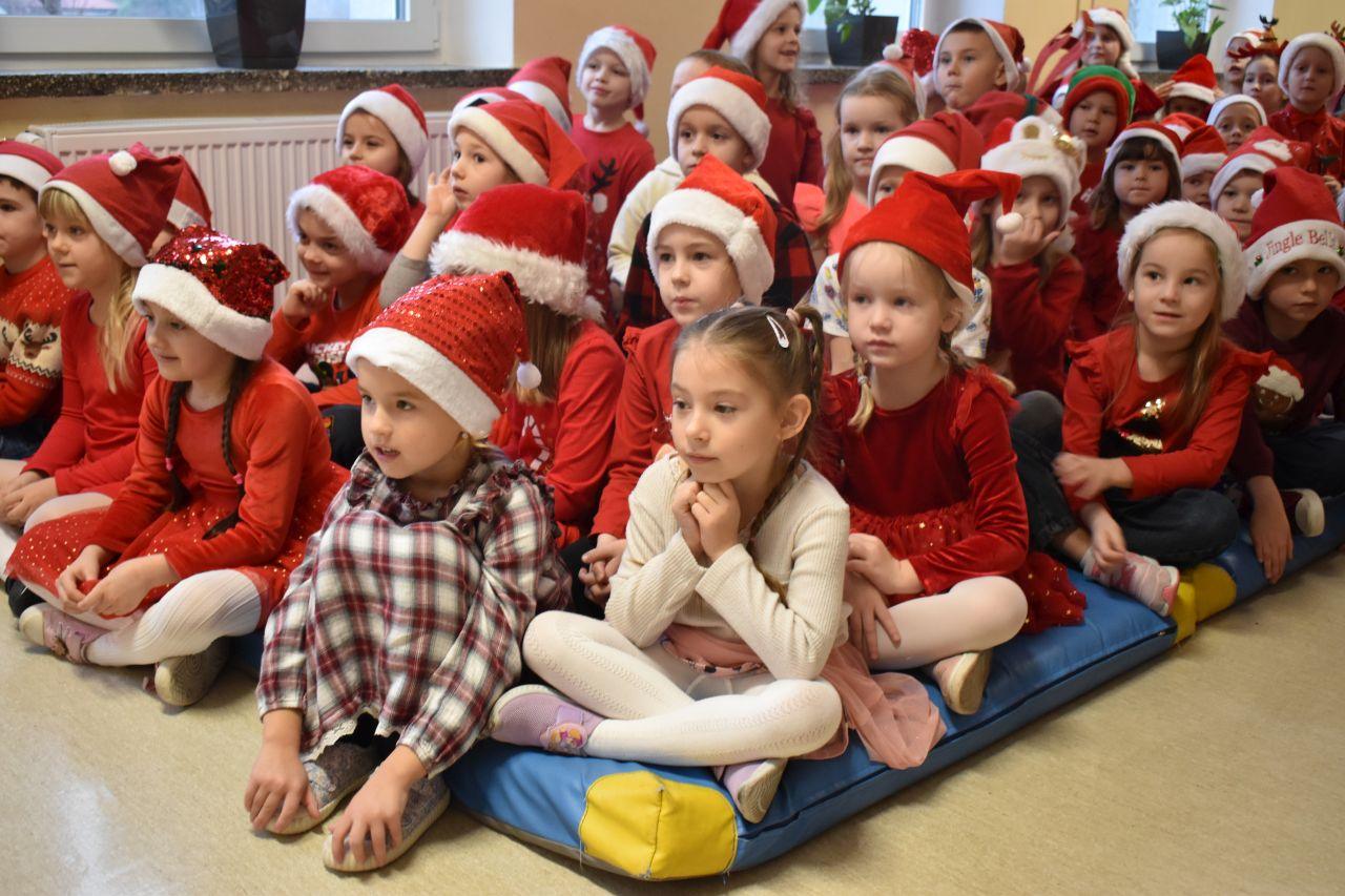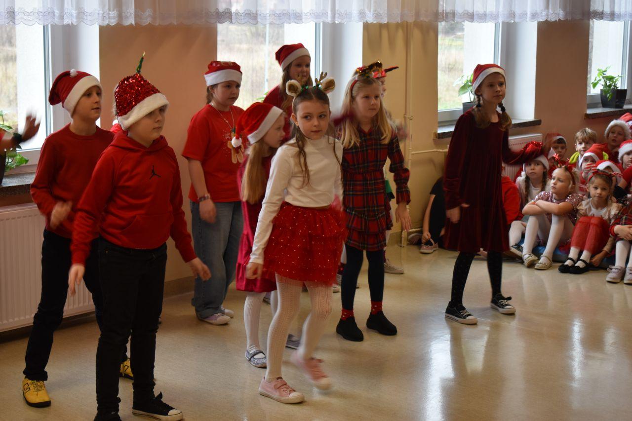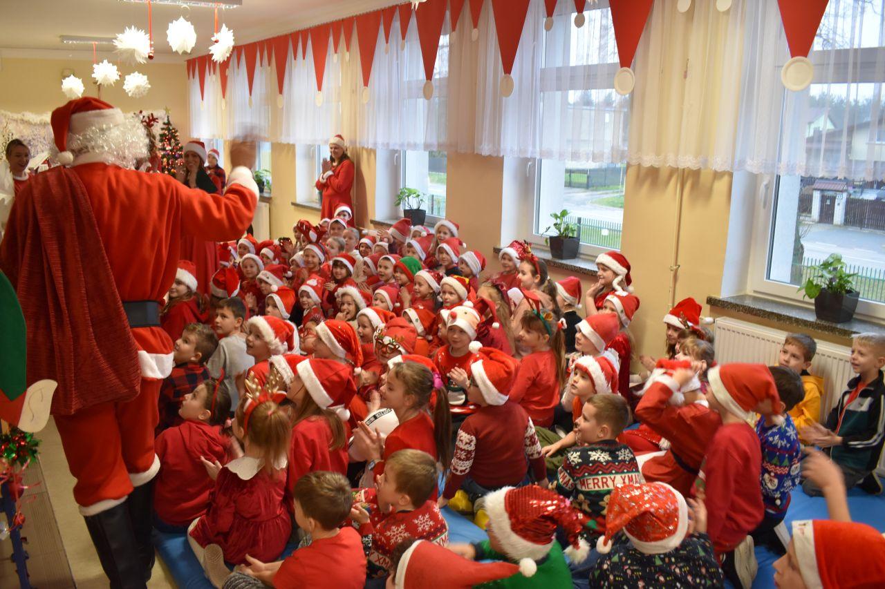 Spotkanie zostało podzielone na dwie tury: poranną i popołudniową, żeby każdy mógł spokojnie zaprezentować Mikołajowi to, co przygotował. A było co oglądać! Dzieci recytowały specjalnie ułożone wierszyki, śpiewały świąteczne piosenki, a niektóre klasy pokazały nawet wesołe tańce, które od razu wprawiły wszystkich w mikołajkowy nastrój.