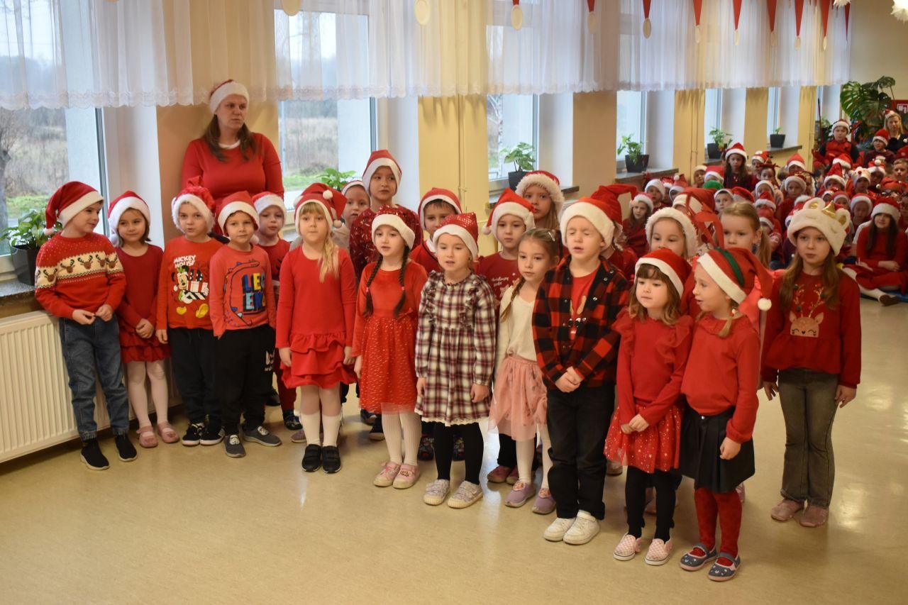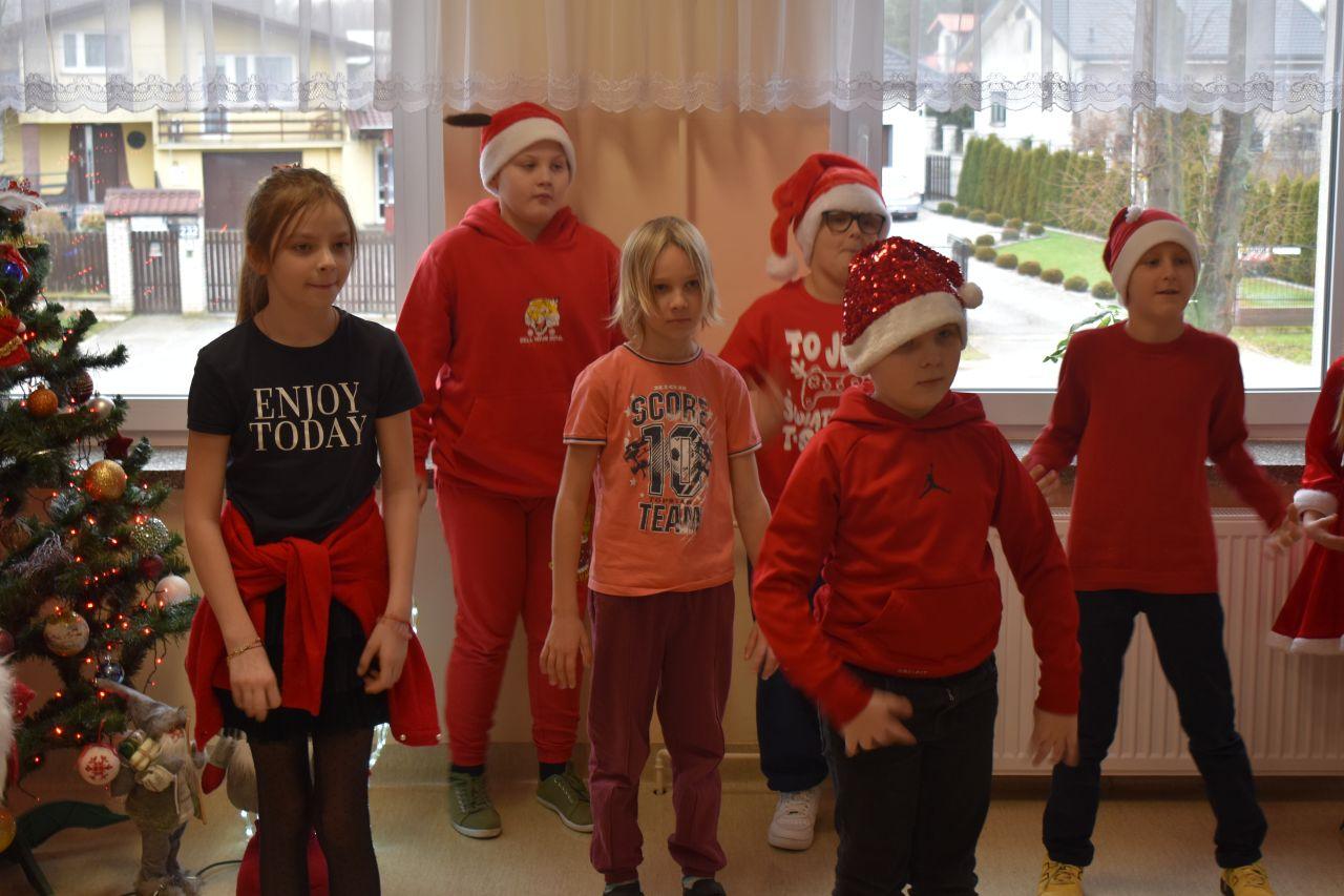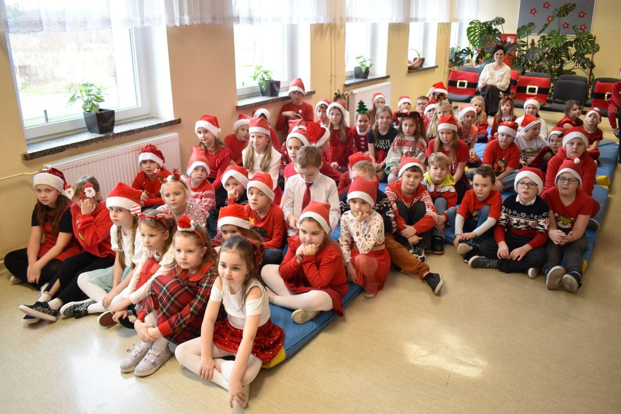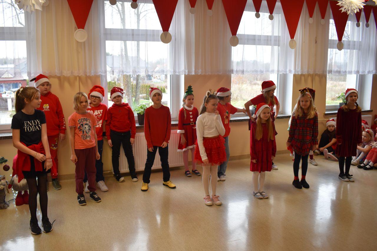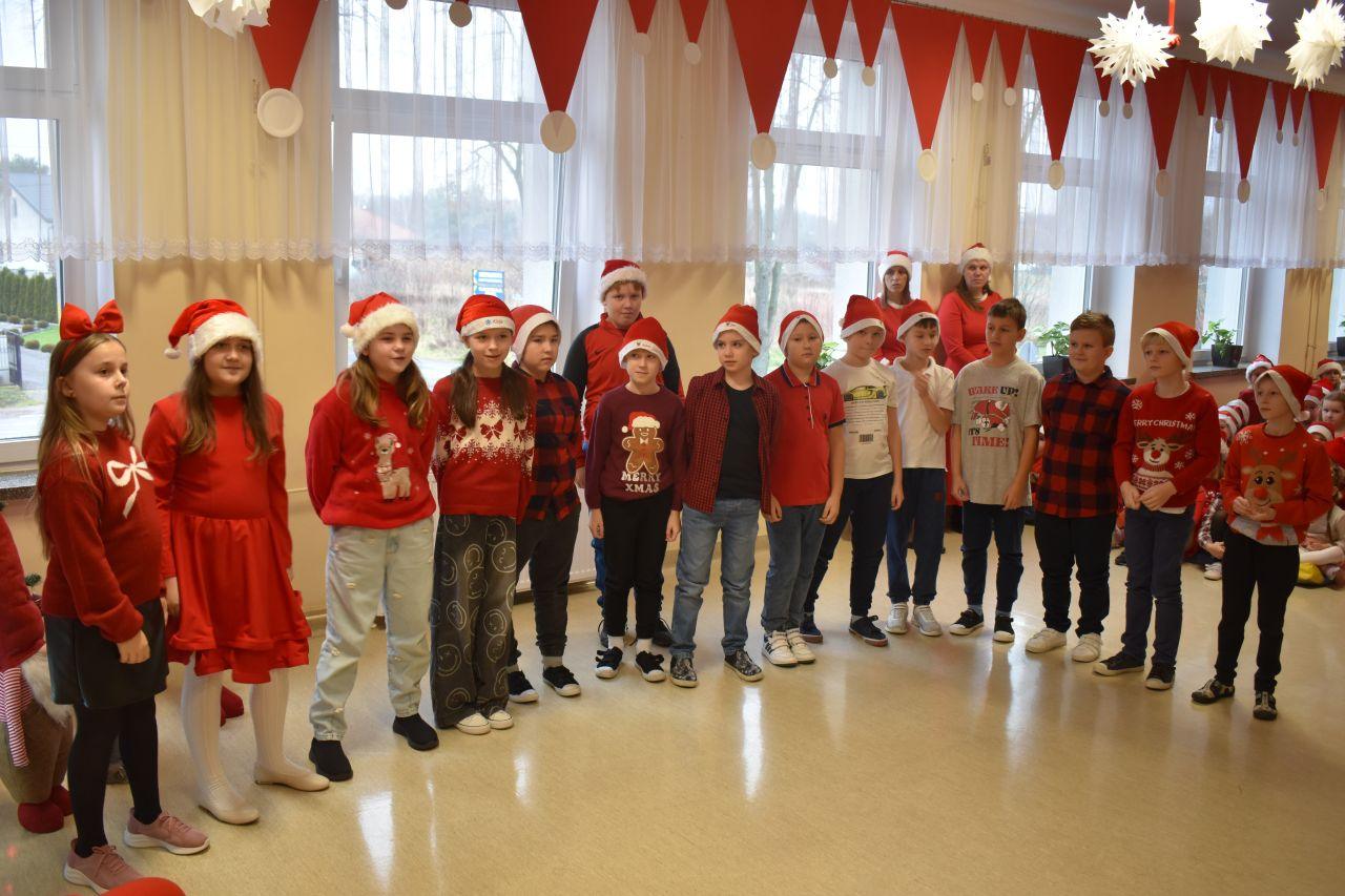 Spotkanie zostało podzielone na dwie tury: poranną i popołudniową, żeby każdy mógł spokojnie zaprezentować Mikołajowi to, co przygotował. A było co oglądać! Dzieci recytowały specjalnie ułożone wierszyki, śpiewały świąteczne piosenki, a niektóre klasy pokazały nawet wesołe tańce, które od razu wprawiły wszystkich w mikołajkowy nastrój.
