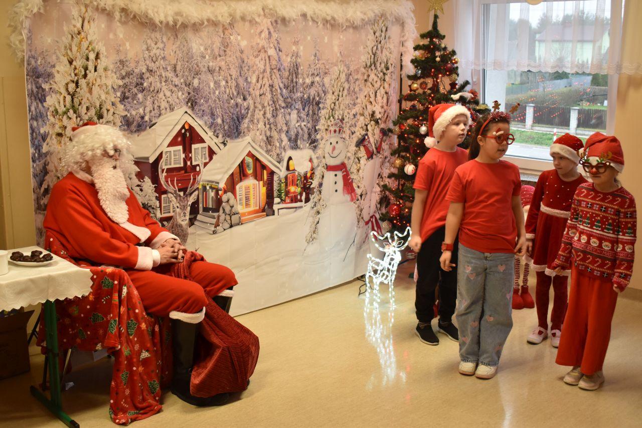 Kiedy wreszcie na korytarzu rozległo się dzwonienie dzwoneczków, dzieci zamarły z emocji. Mikołaj wszedł uśmiechnięty, z dużym czerwonym workiem i od razu obdarował wszystkich ciepłym spojrzeniem. Oglądał występy z ogromnym zaciekawieniem, a potem rozmawiał z uczniami, chwaląc ich za odwagę i piękne przygotowania.