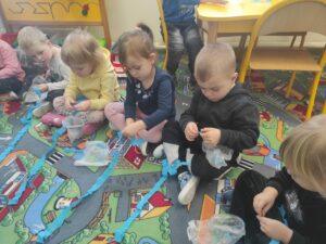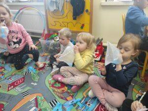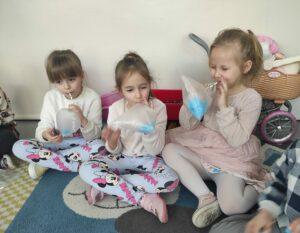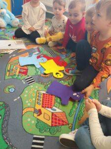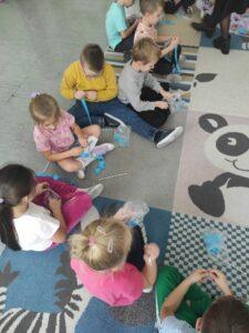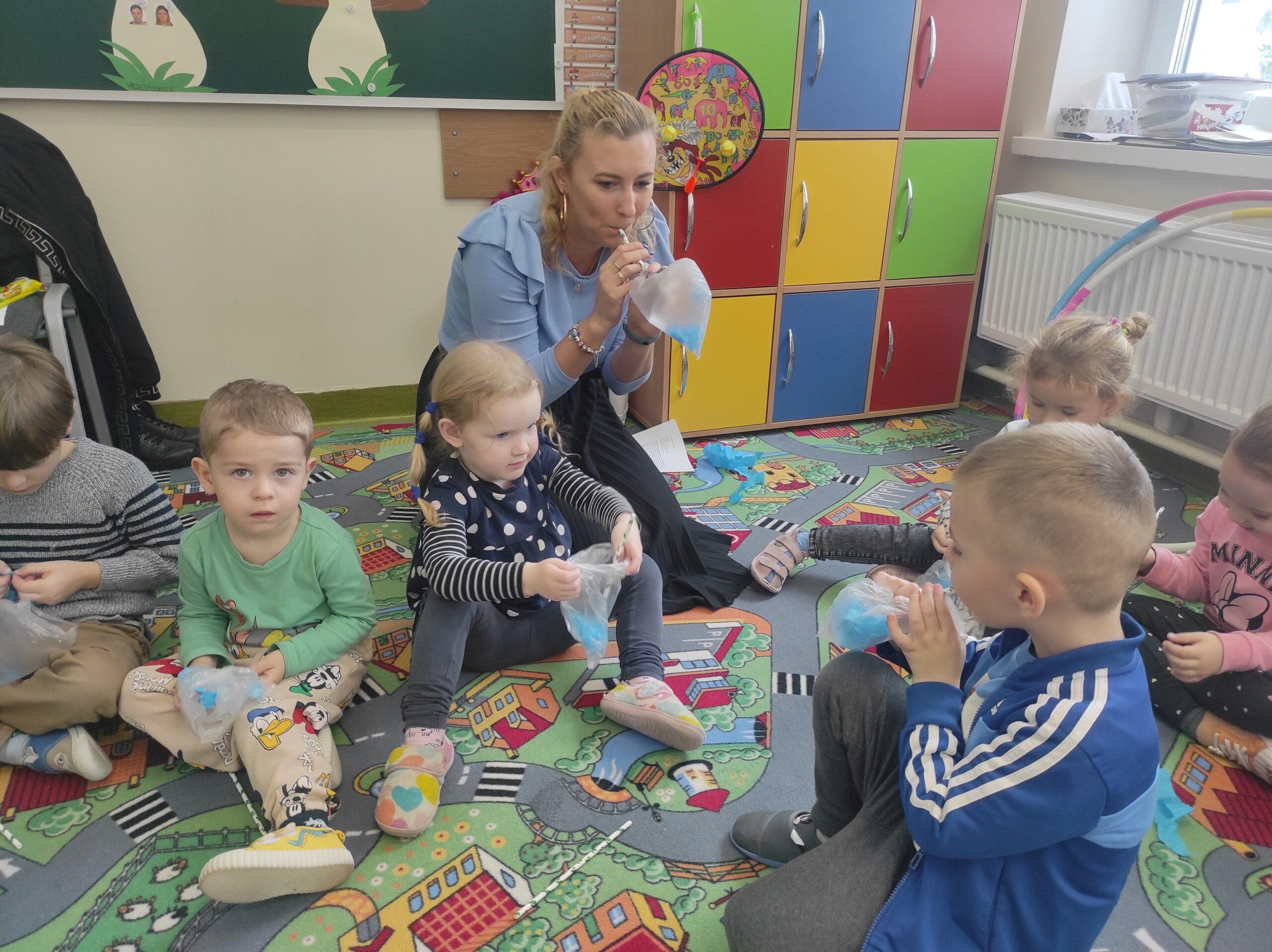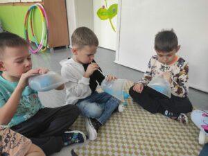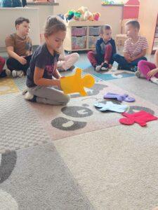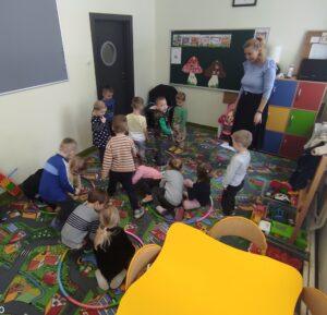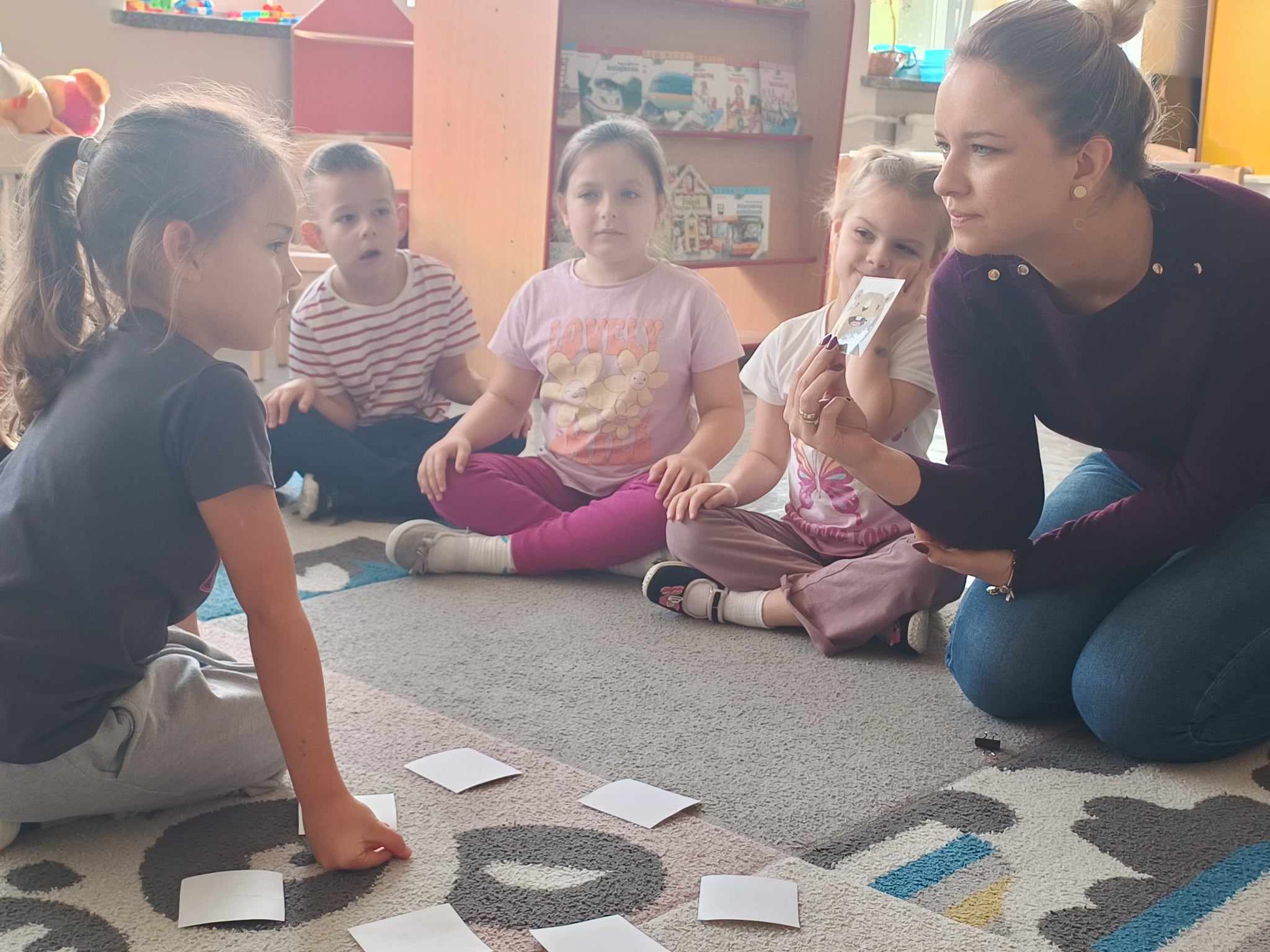 Od października 2023r. dzieci z oddziałów przedszkolnych 0a, 0b oraz z Krasnoludków uczestniczyły w zajęciach, prowadzonych przez pedagoga, psychologa i logopedę szkolnego, w ramach innowacji pedagogicznej “Emocjonalny LogoRytm: słyszę, mówię, czuję”.