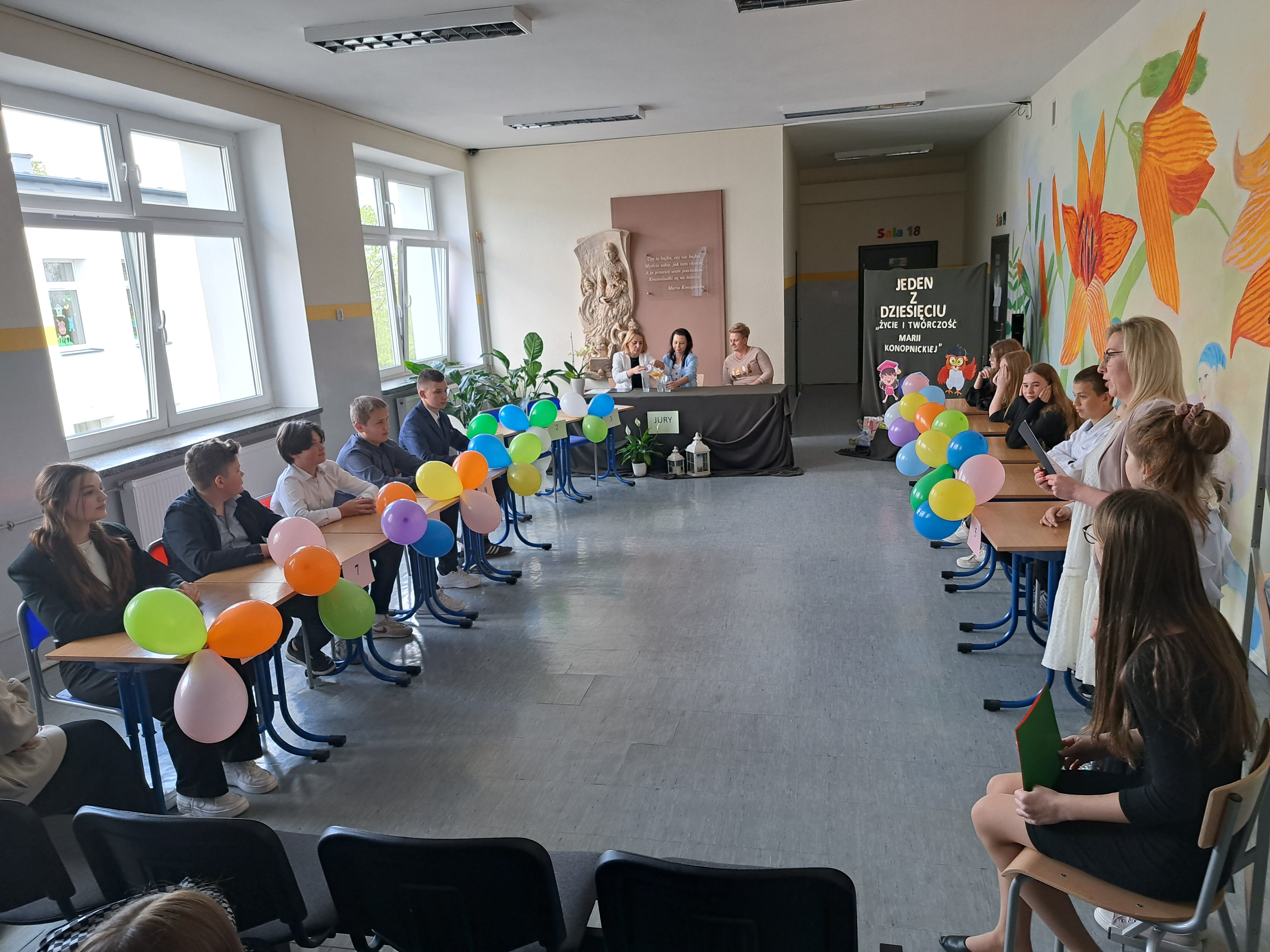 W roku szkolnym 2022/2023 zrealizowana została innowacja pedagogiczna pt. „Moje spotkania z Marią Konopnicką”. Projektem zostały objęte dzieci z klas 3a oraz 3b Publicznej Szkoły Podstawowej im. Marii Konopnickiej w Mazowszanach. Nie bez powodu w klasach trzecich został wybrany i zrealizowany ten temat innowacji. Maria Konopnicka jest patronką naszej szkoły. Dokładnie 23 maja 2022 roku przypadała 180 rocznica jej urodzin, a rok 2022 ogłoszono jej rokiem. Podstawowym założeniem projektu było poznanie życia i twórczości Patronki naszej szkoły, rozwijanie wśród uczniów wrażliwości na poezję i prozę M. Konopnickiej, a także kształtowanie wyobraźni dzieci poprzez kontakt z książką, w taki sposób, by był on dla nich przygodą i stanowił radość dzieciństwa. Swoją kreatywność dzieci odnajdywały w tworzonych pracach plastycznych, które powstawały na bazie przeczytanej literatury naszej Patronki. Dodatkowo odbyły się konkursy dla starszych uczniów z okazji obchodów 60-lecia powstania naszej placówki. Uczniowie klas IV -VI przystąpili do szkolnego konkursu wiedzy „Życie i twórczość Marii Konopnickiej”, a uczniowie klas VII-VIII „1 z 10 – Życie i twórczość Marii Konopnickiej”. Podczas trwania innowacji uczniowie głośno czytali literaturę M. Konopnickiej zbiorowo oraz indywidualnie. Stworzyli piękne galerie prac plastycznych. Prezentowali książki naszej patronki w kącikach tematycznych. Brali udział w konkursie plastycznym pt. „Twórczość Marii Konopnickiej oczami dzieci”. Tworzyli gazetki promujące czytelnictwo. Korzystali z biblioteki szkolnej jako źródło wiedzy na temat twórczości Marii Konopnickiej. Wypowiadali się na temat ilustracji, tekstów, fragmentów utworów. Dzieci bardzo angażowały się w działania projektowe, czego dowodem są powstałe prace.