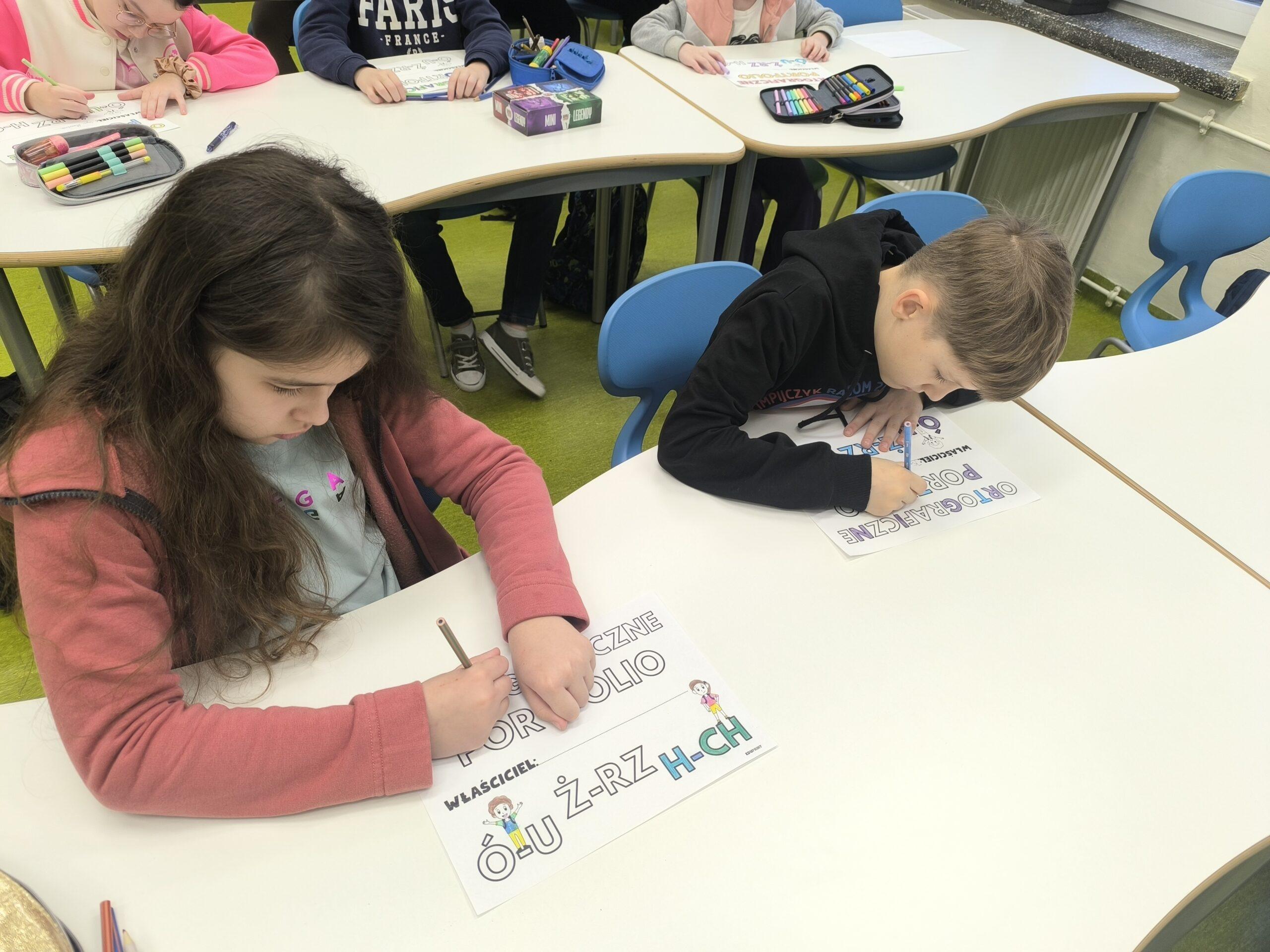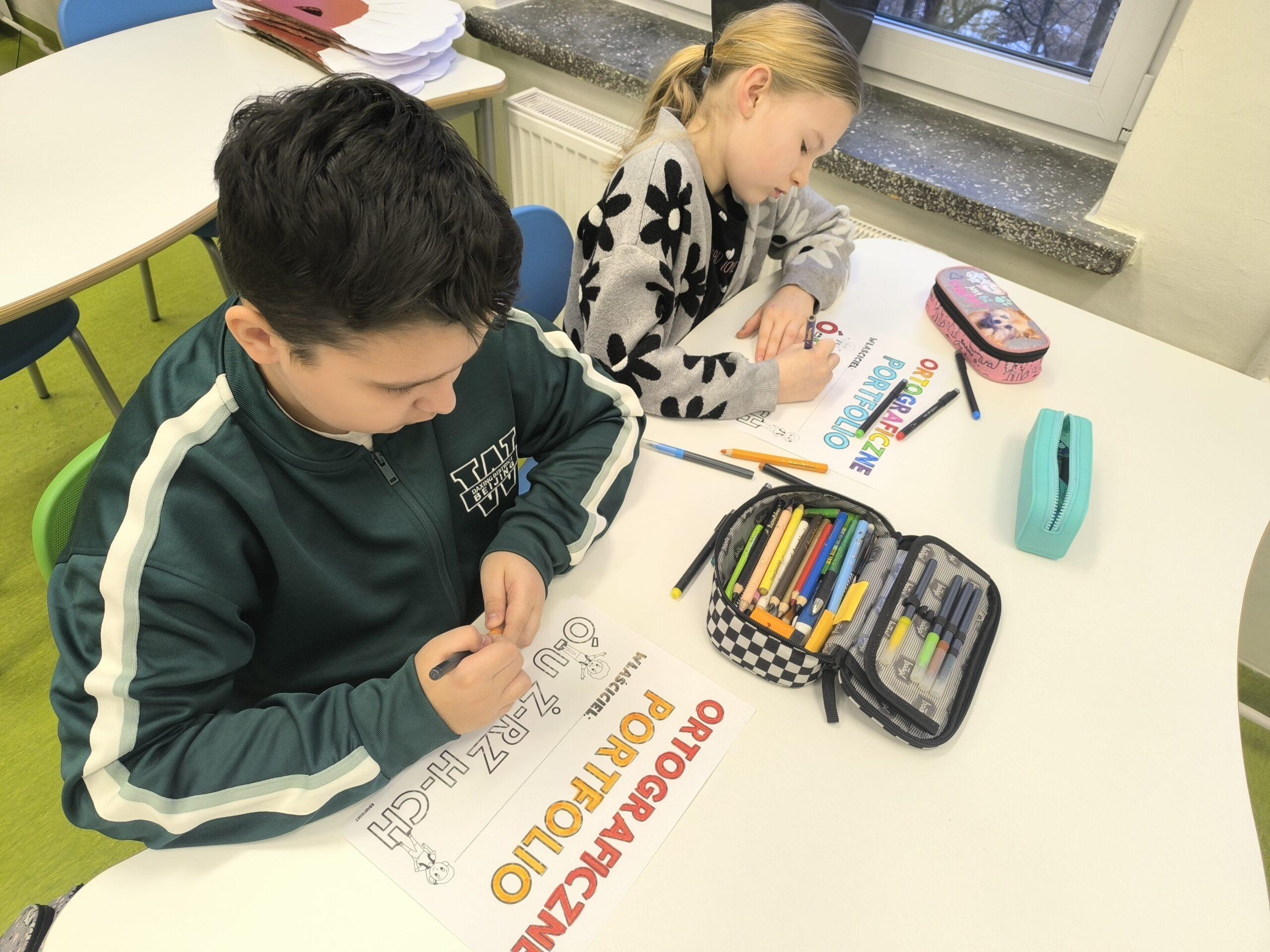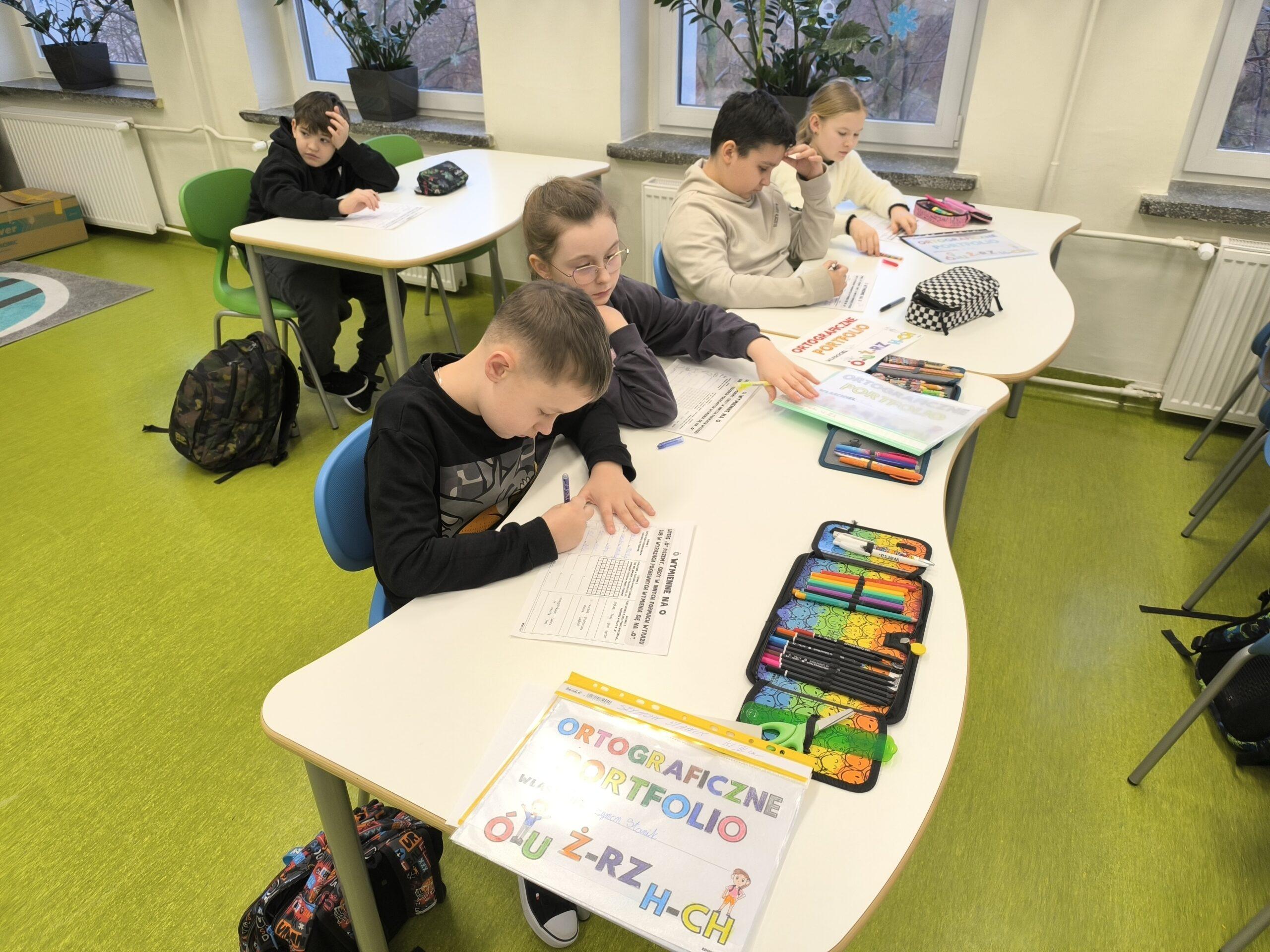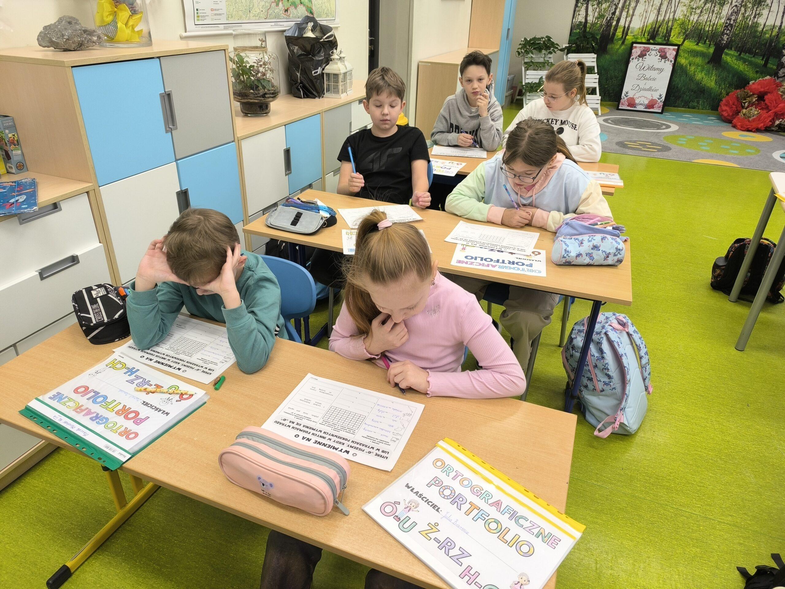„Ortografia na wesoło” to innowacja skierowana do uczniów edukacji wczesnoszkolnej, która realizowana jest w klasach trzecich. Celem działań jest doskonalenie umiejętności praktycznego zastosowania poznanych zasad pisowni poprzez zabawę oraz stosowanie atrakcyjnych, aktywizujących metod nauczania. W ramach tej innowacji dzieci wykonują różnorodne ćwiczenia ortograficzne, zawarte w dodatkowych kartach pracy i tworzą z nich tzw. osobiste teczki ucznia. Karty pracy tworzące „Ortograficzne portfolio” są uporządkowanym materiałem do utrwalania zasad ortograficznych. Zajęcia są bardzo atrakcyjne, a uczniowie z dużym zaangażowaniem w nich uczestniczą.