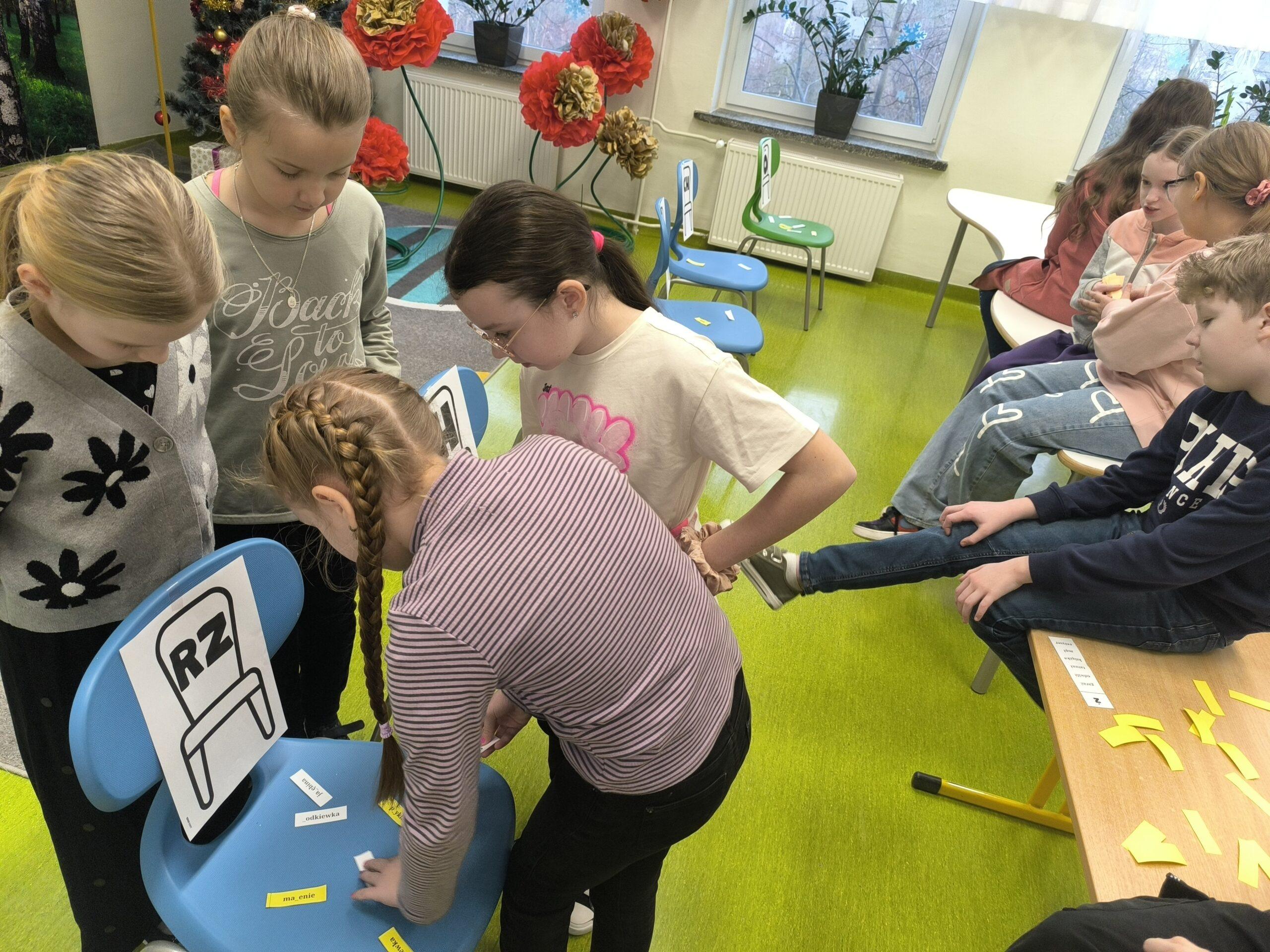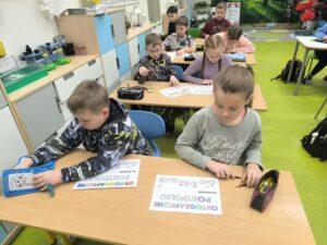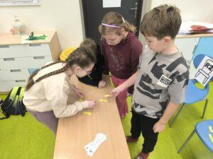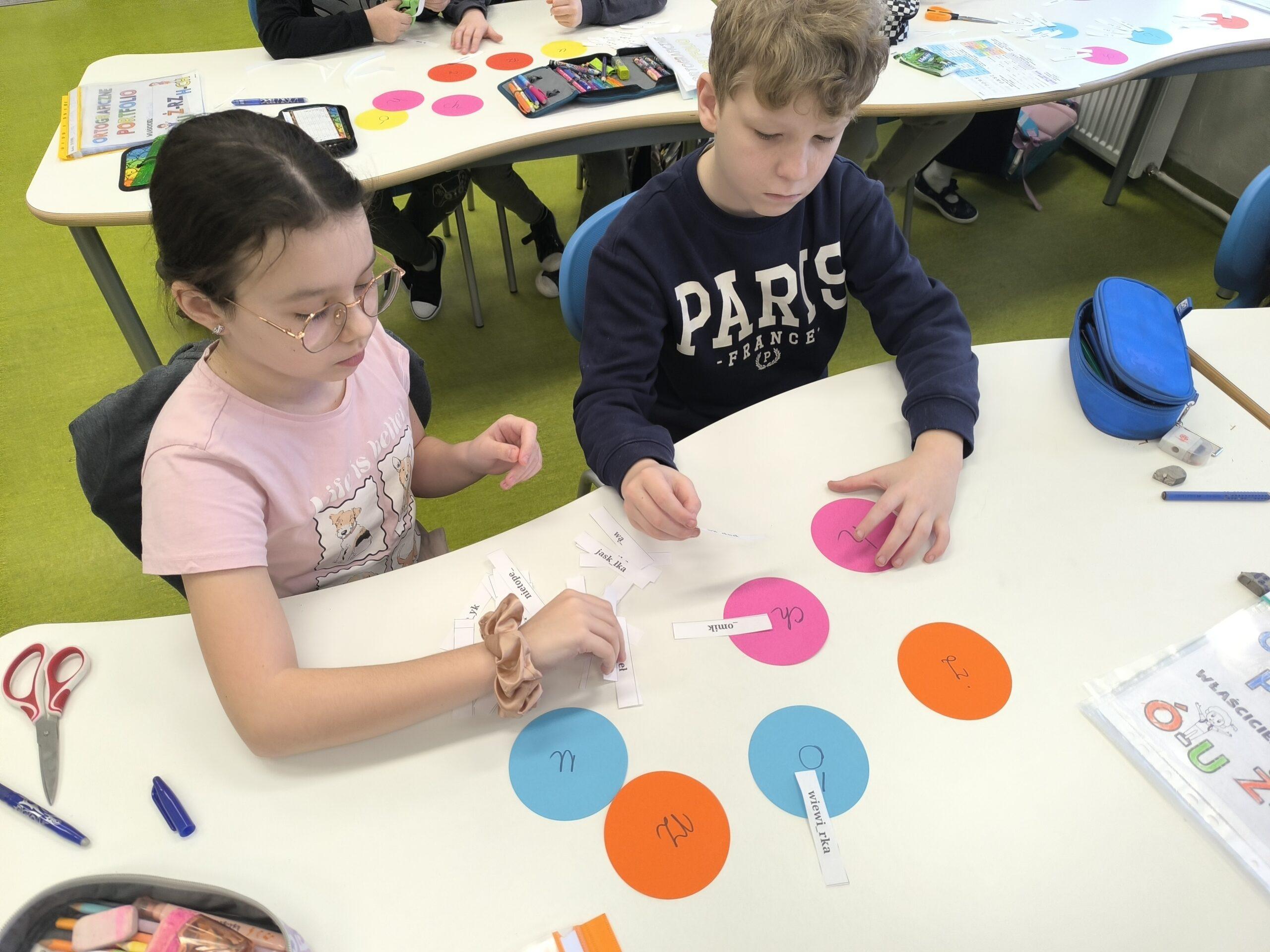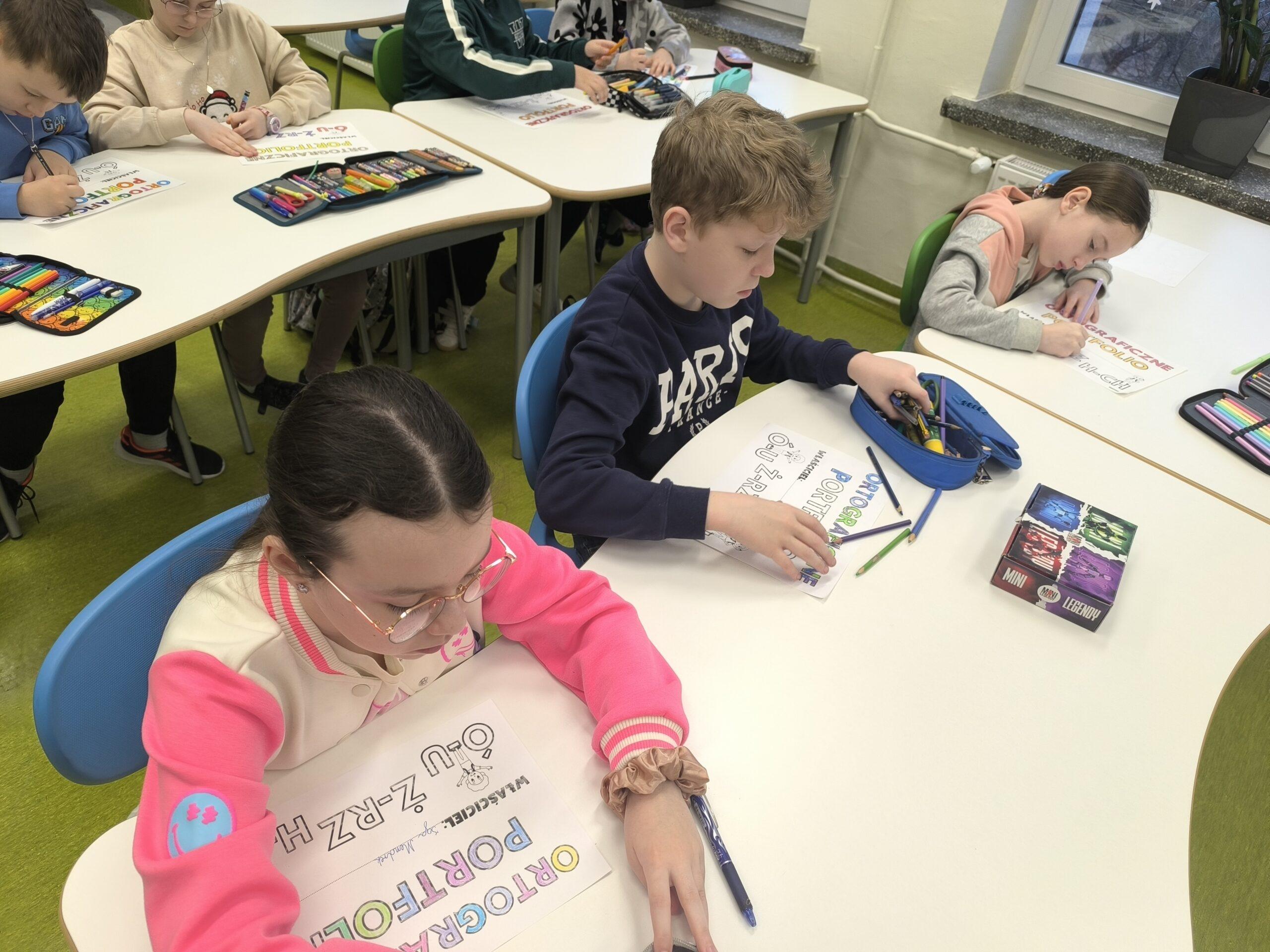 „Ortografia na wesoło” to innowacja skierowana do uczniów edukacji wczesnoszkolnej, która realizowana jest w klasach trzecich. Celem działań jest doskonalenie umiejętności praktycznego zastosowania poznanych zasad pisowni poprzez zabawę oraz stosowanie atrakcyjnych, aktywizujących metod nauczania. W ramach tej innowacji dzieci wykonują różnorodne ćwiczenia ortograficzne, zawarte w dodatkowych kartach pracy i tworzą z nich tzw. osobiste teczki ucznia. Karty pracy tworzące „Ortograficzne portfolio” są uporządkowanym materiałem do utrwalania zasad ortograficznych. Zajęcia są bardzo atrakcyjne, a uczniowie z dużym zaangażowaniem w nich uczestniczą.