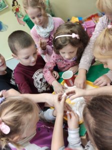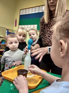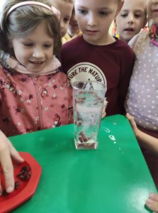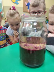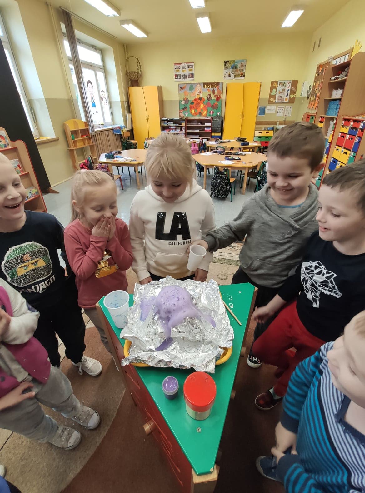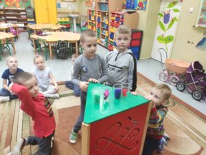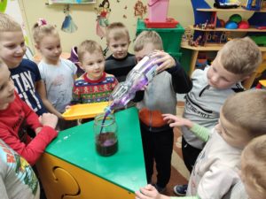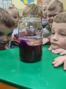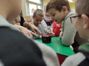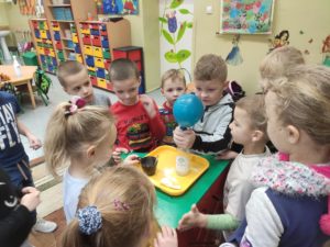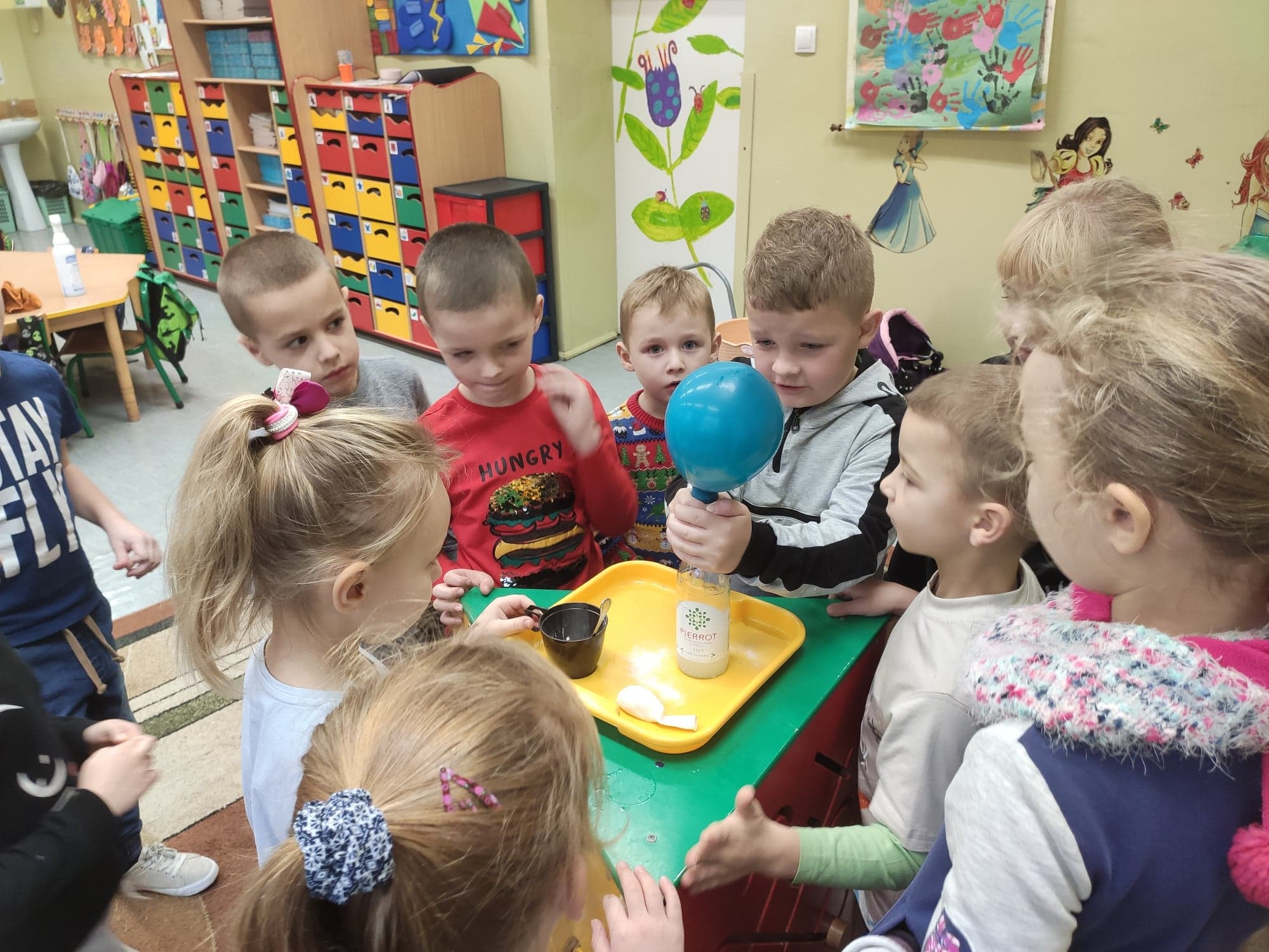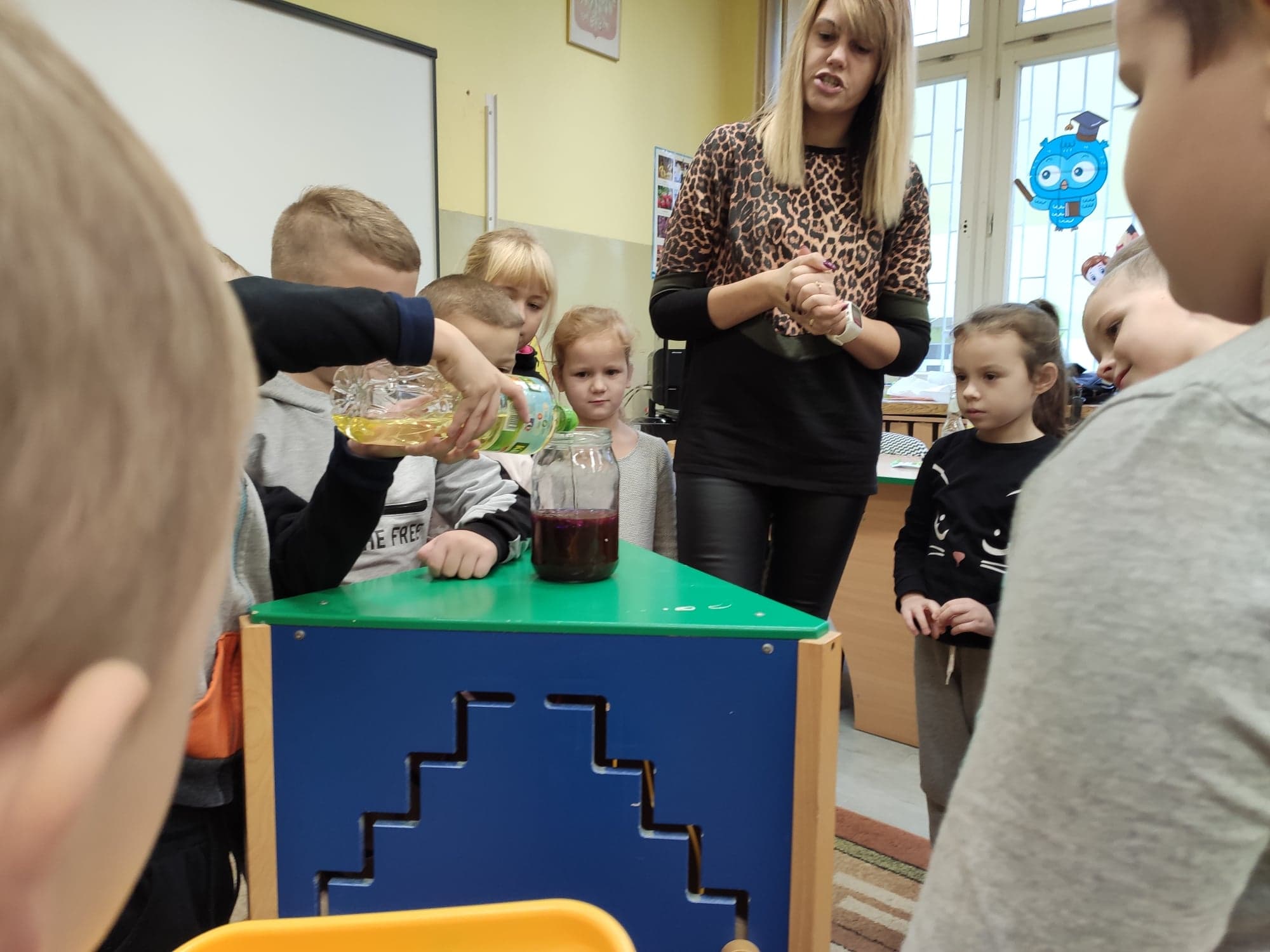 Od września w grupie OA rozpoczęto realizację innowacji pedagogicznej „Przedszkolni badacze”. Podczas zajęć dominuje „zabawa w odkrywcę”, która pozwala dzieciom stać się małymi naukowcami, badaczami samodzielnie odkrywającymi tajemnice otaczającego świata. Dzieci w wieku przedszkolnym są otwarte i ciekawe świata. Jest to zatem najlepszy okres, aby ich naturalną ciekawość skierować na właściwe tory. Uczestnictwo w proponowanych zajęciach, odbywających się w atmosferze zabawy, współdziałania i radosnego tworzenia sprzyjać będzie ich harmonijnemu rozwojowi. Wszystkie wykonywane doświadczenia wywołały wiele emocji oraz radości na twarzach przedszkolaków.