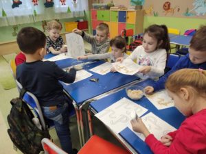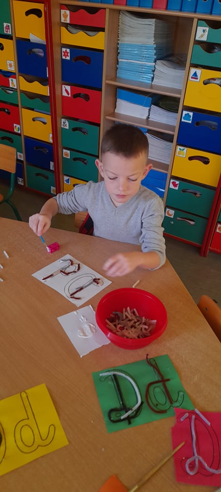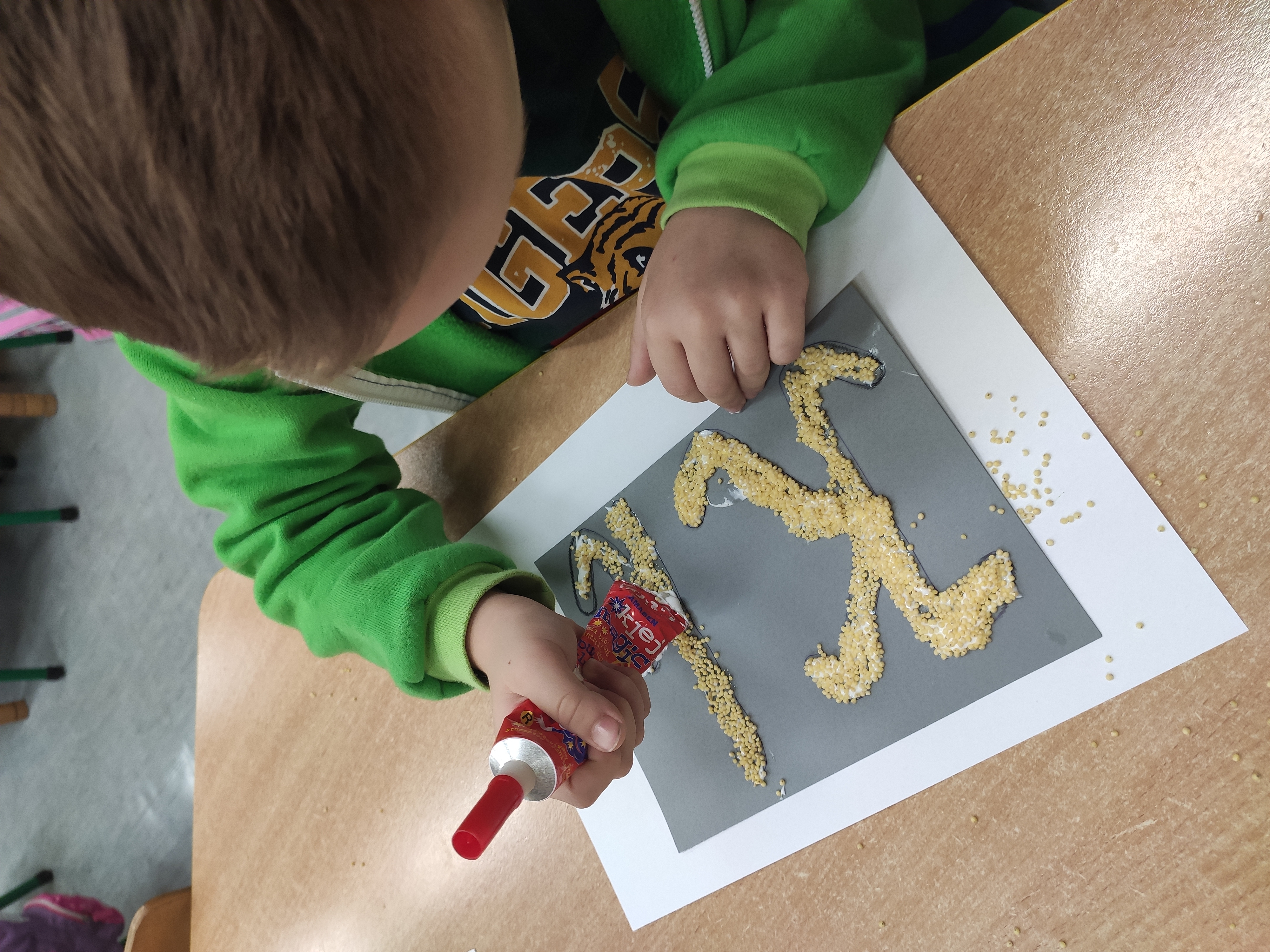 Od października 2021 r. dzieci z oddziałów przedszkolnych realizują innowację pedagogiczną „W świecie sensorycznych literek”.