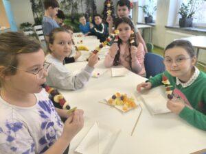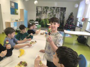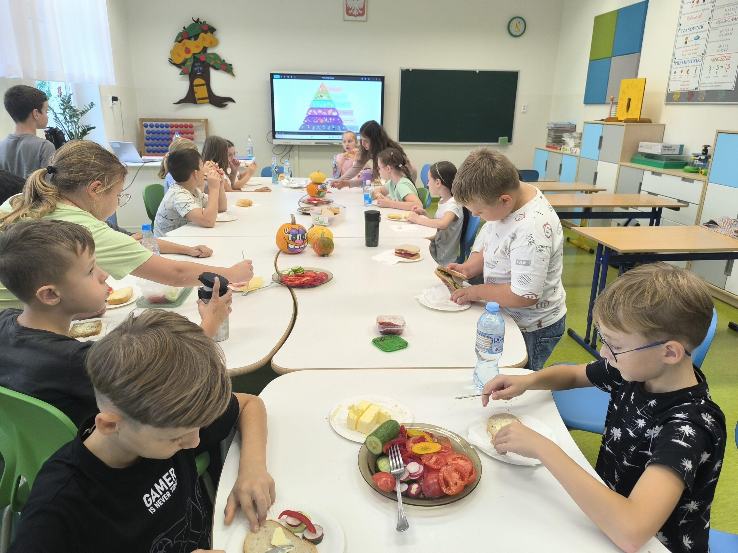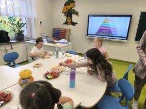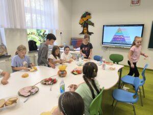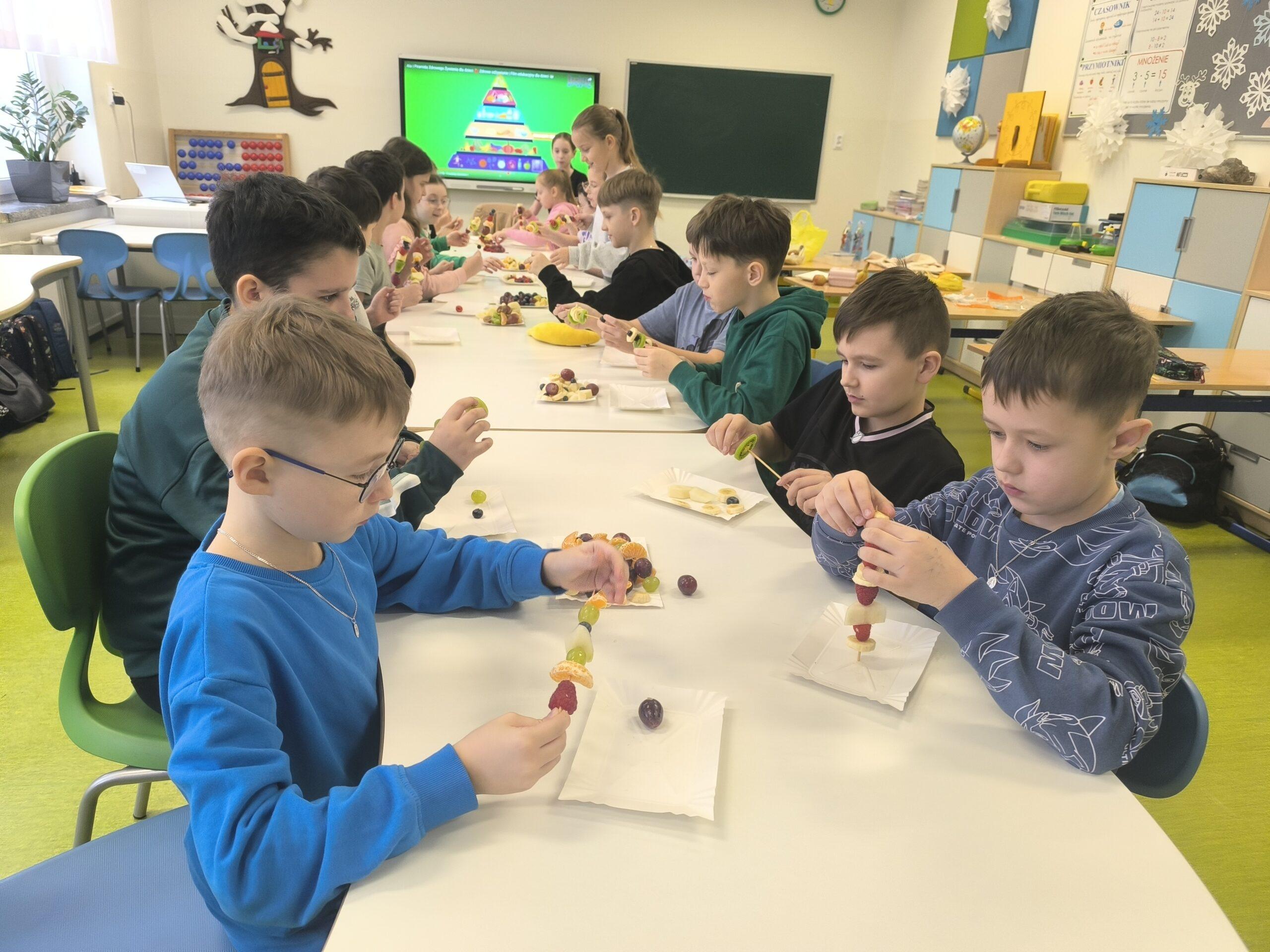 W klasach I-III realizowana jest innowacja pedagogiczna pt. „W zdrowym ciele – zdrowy duch”. Celem projektu jest promowanie zdrowego stylu życia oraz kształtowanie prawidłowych nawyków. Uświadomienie znaczenia produktów bogatych w witaminy dla zdrowia człowieka. Rozwijanie umiejętności współpracy oraz zainteresowań kulinarnych. W ramach innowacji stosowane są różnorodne metody i formy pracy. Podczas zajęć uczniowie poznali piramidę zdrowego żywienia, uczyli się o wartościach odżywczych produktów i wspólnie przygotowywali zdrowe przekąski: szaszłyki owocowe oraz zdrowe kanapki. Zajęcia o zdrowym odżywianiu były bardzo udane. Uczniowie wykazali duże zainteresowanie i chętnie angażowali się w proponowane aktywności.
