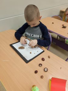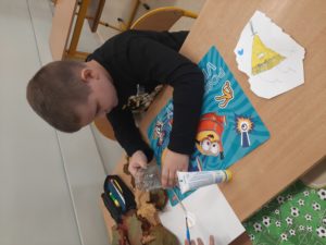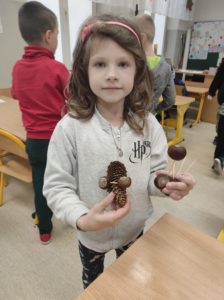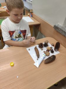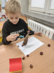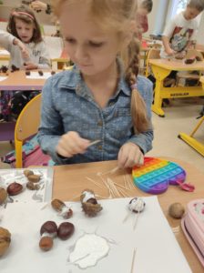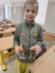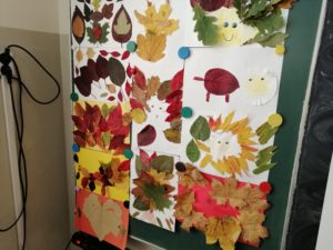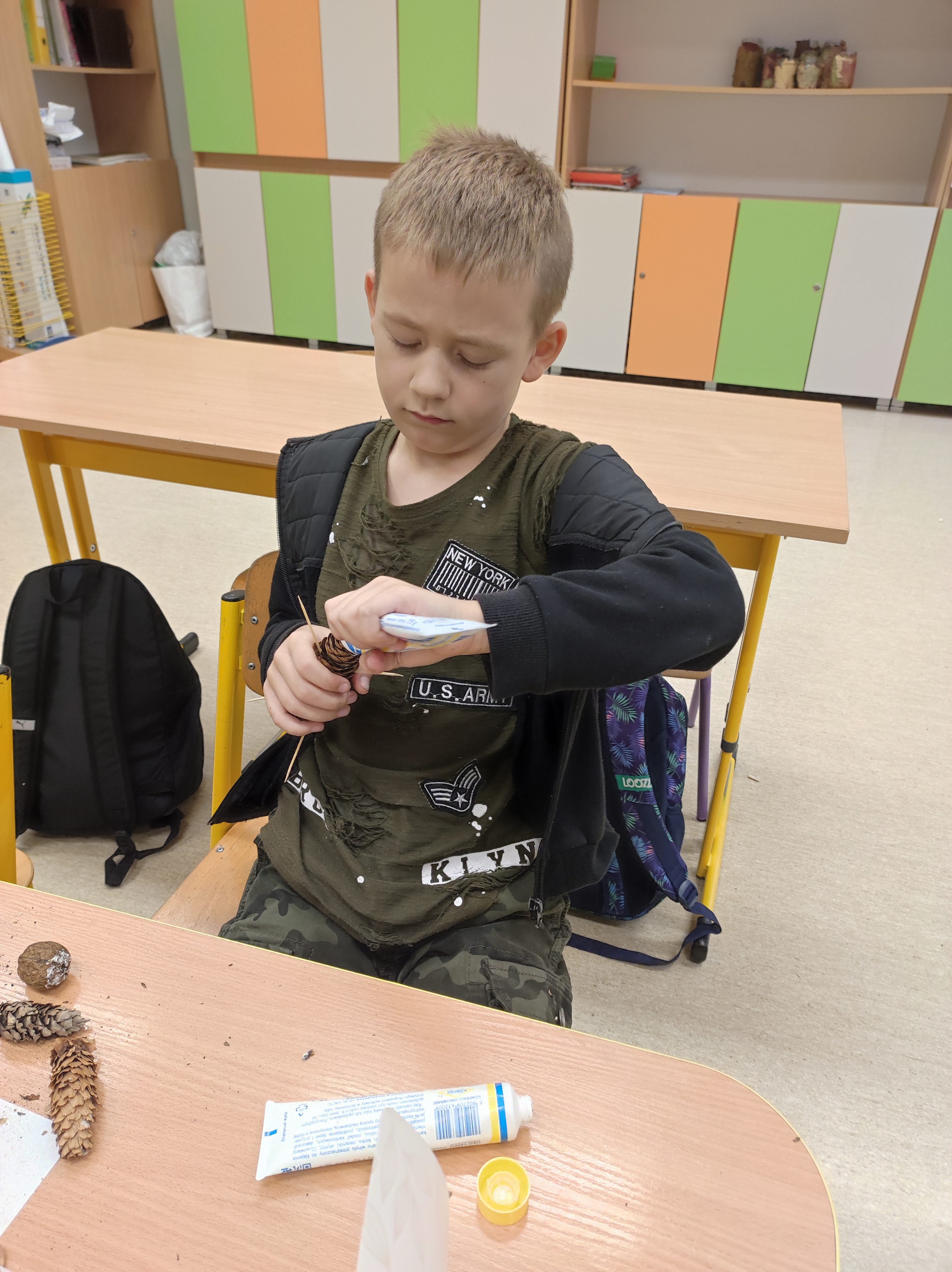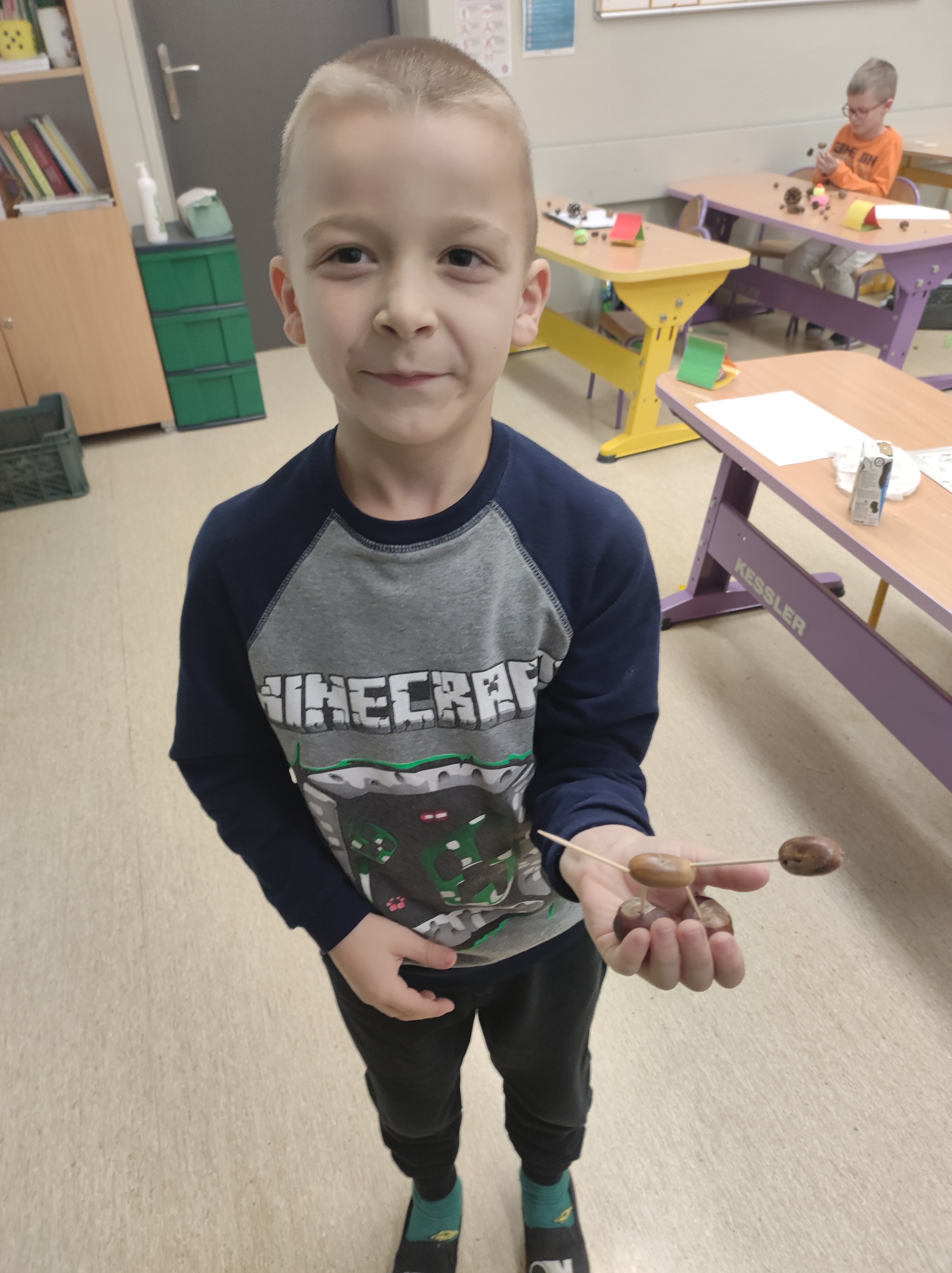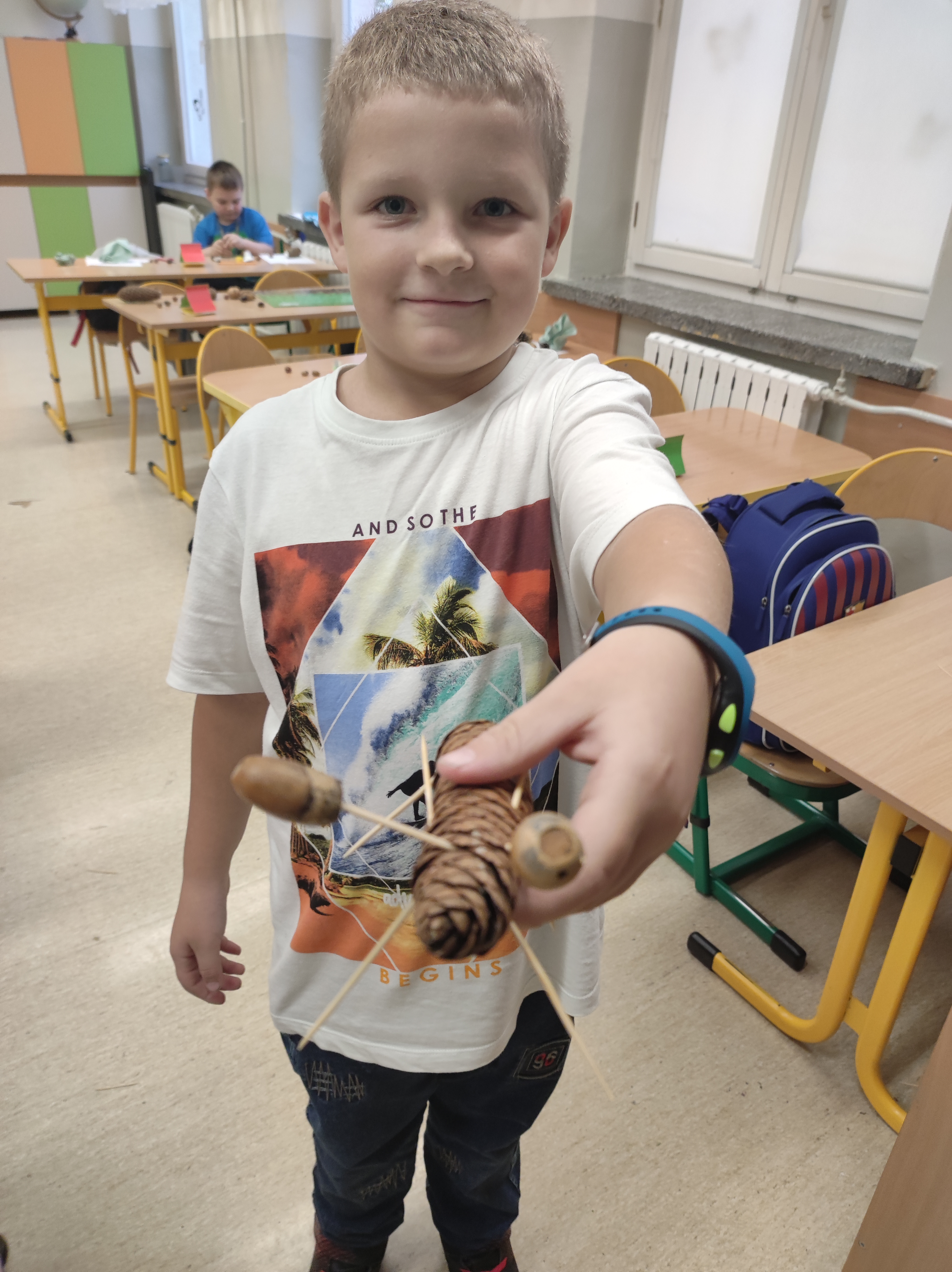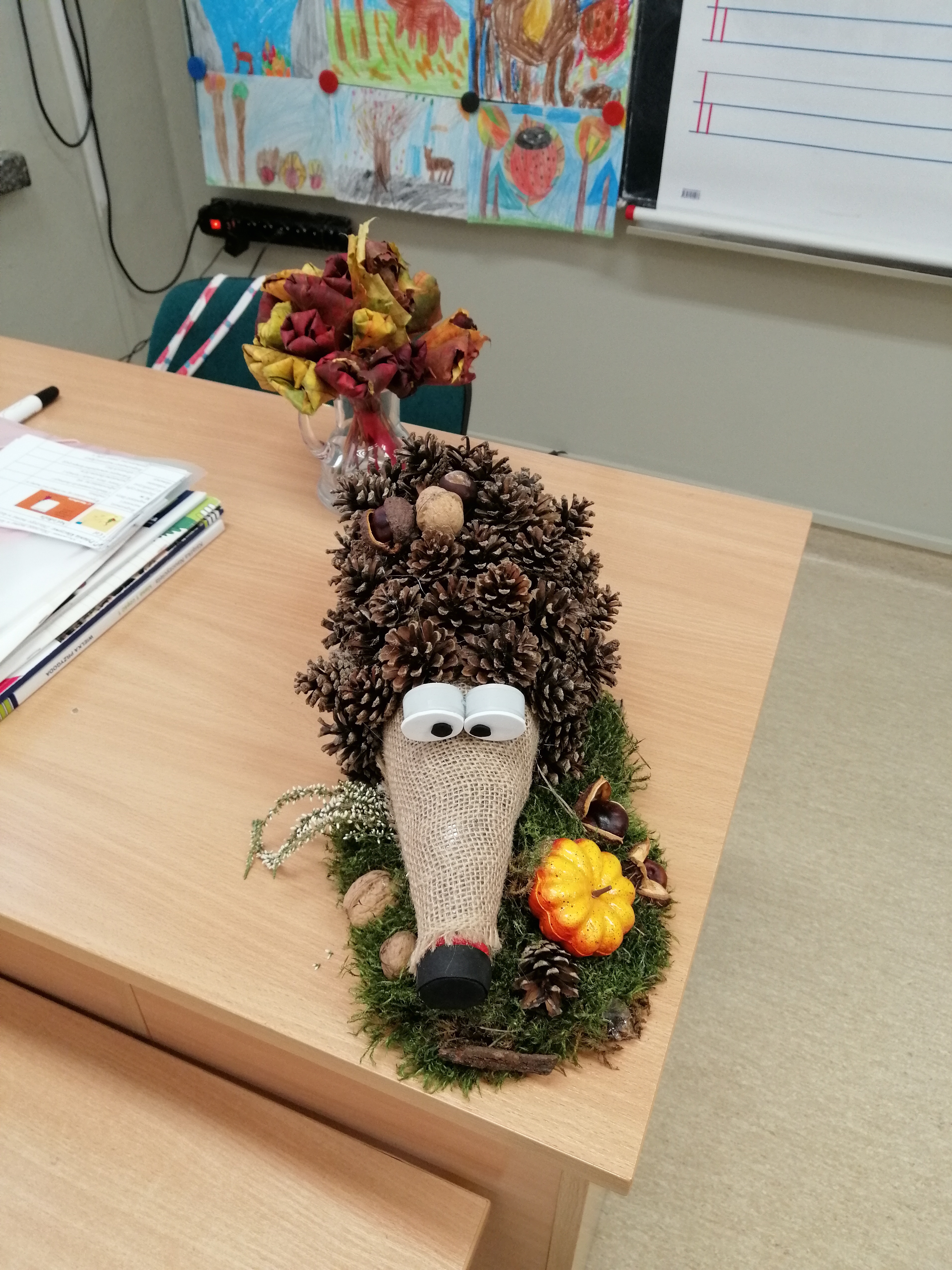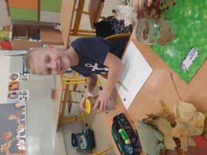 Jesień to pora roku, podczas której słoneczko coraz rzadziej zagląda do okien naszej sali i w związku z tym uczniowie klasy Ib wykonali bardzo efektowne lampiony z liści. Musieli się przy tym wykazać pomysłowością i kreatywnością. Dzieci zauważyły, że wieczory są coraz krótsze, coraz wcześniej robi się ciemno… miło jest usiąść razem, z gorącą herbatką i patrzeć na ciepłe światełko naszych lampionów. Kolejnym zadaniem naszych Pierwszaków były radosna twórczość na kartce papieru. Dzieci tworzyły kompozycje, mozaiki z liści, a nawet próbowały stworzyć „liściowe zwierzątka”. Nieodzownym elementem aktualnej pory roku są także ludziki z kasztanów, żołędzi i innych darów jesieni. Takie „jesienne stworki” także wykonywaliśmy w klasie. Mamy jeszcze mnóstwo planów na działania w ramach innowacji, które systematycznie będziemy umieszczać na stronie internetowej naszej szkoły. Należy podkreślić, że wszystkie działania uczą nasze Pierwszaki współpracy w grupie, twórczego myślenia i kreatywności oraz zrozumienia potrzeby dbania o przyrodę i najbliższe środowisko.
