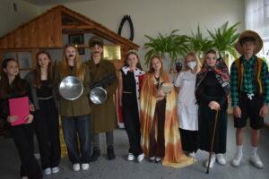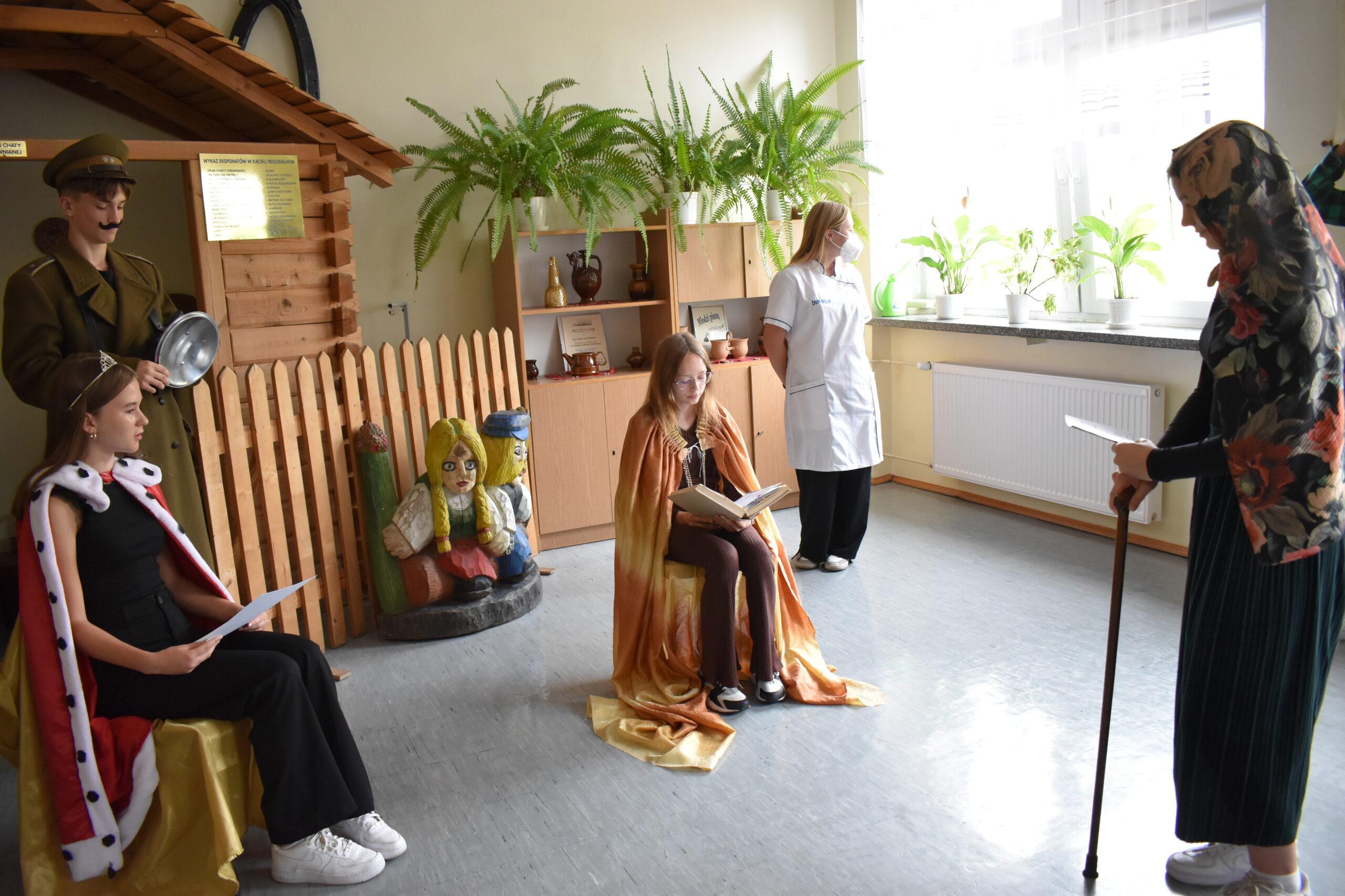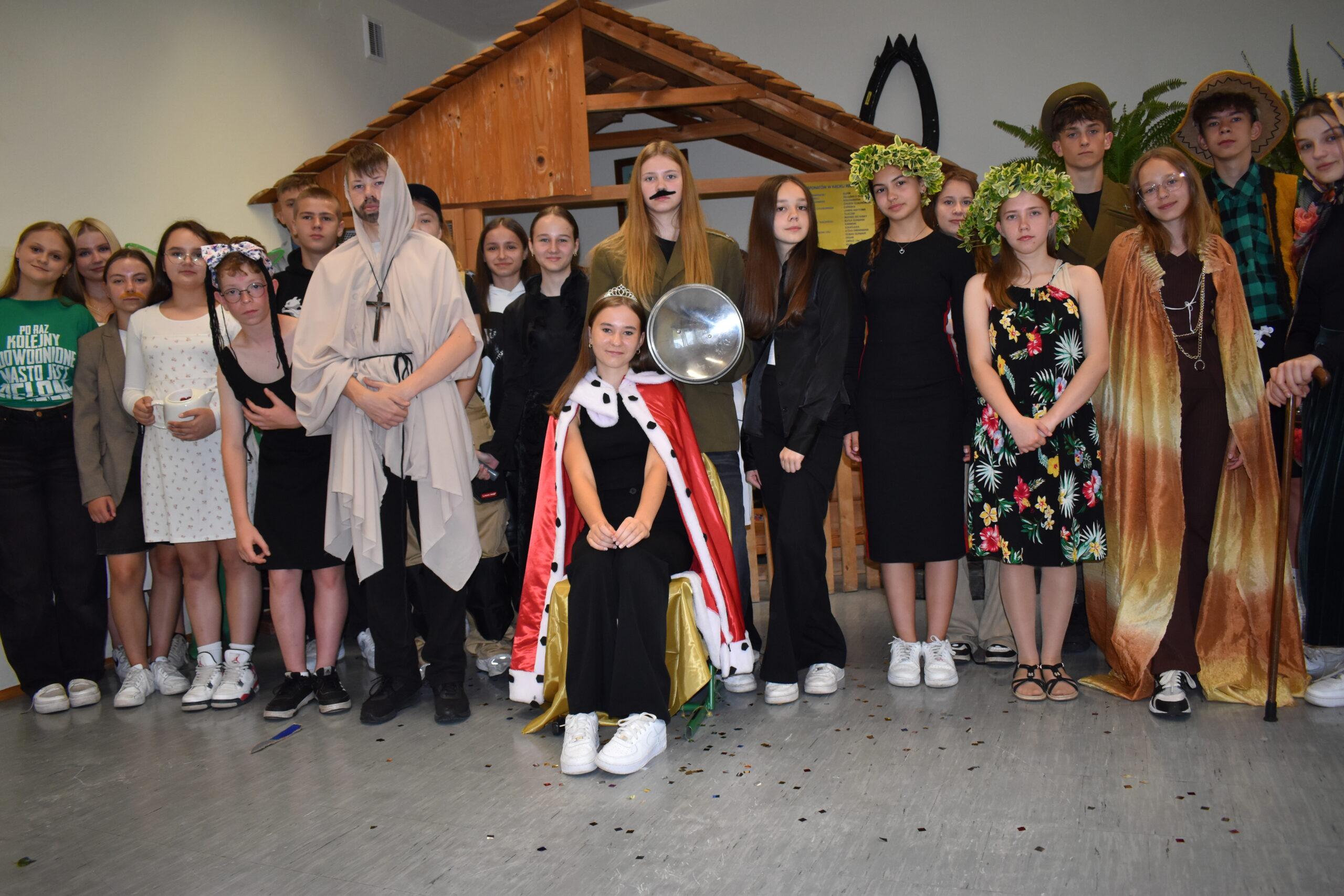 Młodzi aktorzy doskonale wcielili się w role i przekazali to, co w dramacie jest najważniejsze, czyli niszczącą siłę władzy, nieszczęśliwą miłość, ale przede wszystkim fakt, iż sprawiedliwość zawsze wygrywa. Uczniowie w grupach wspólnie planowali i tworzyli scenografię, a także zadbali o odpowiednie kostiumy. Wykazali się przy tym pomysłowością, starannością oraz talentem organizacyjnym i aktorskim. Zapraszam do obejrzenia fotorelacji.