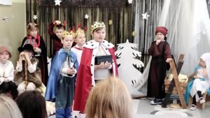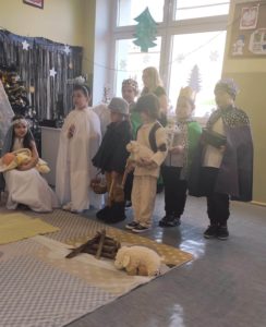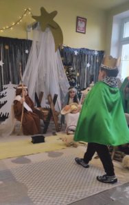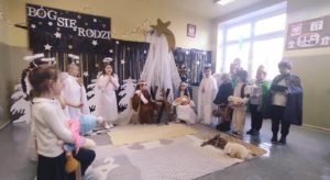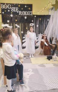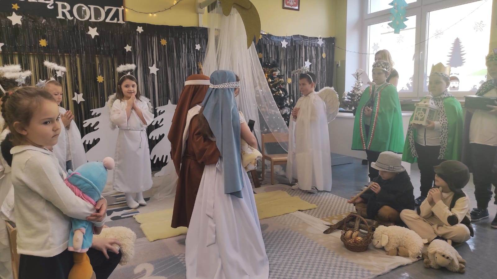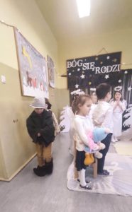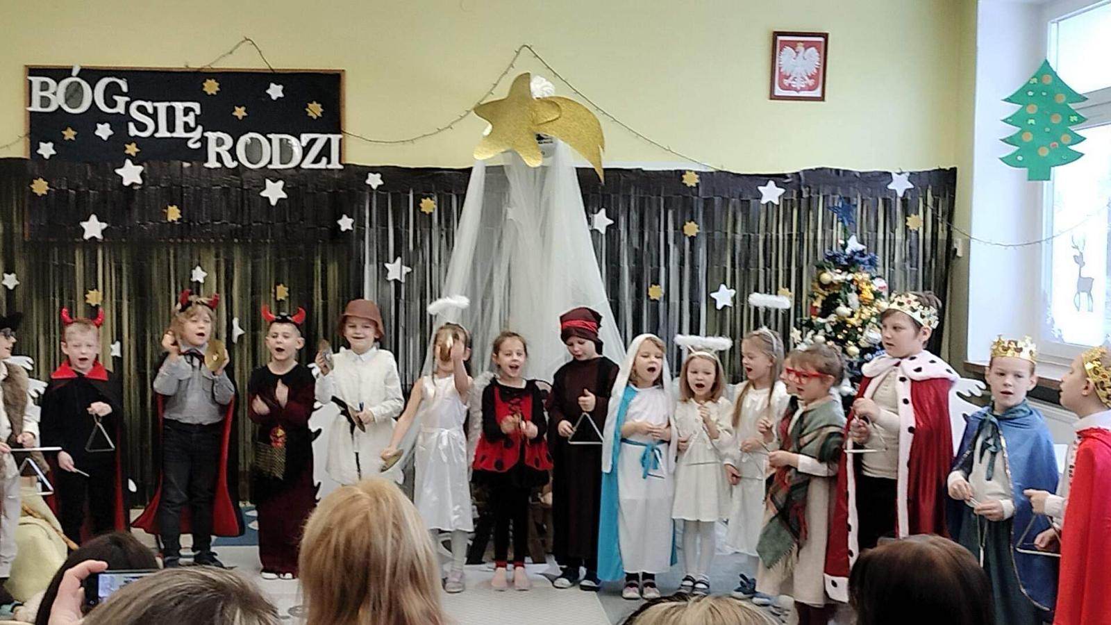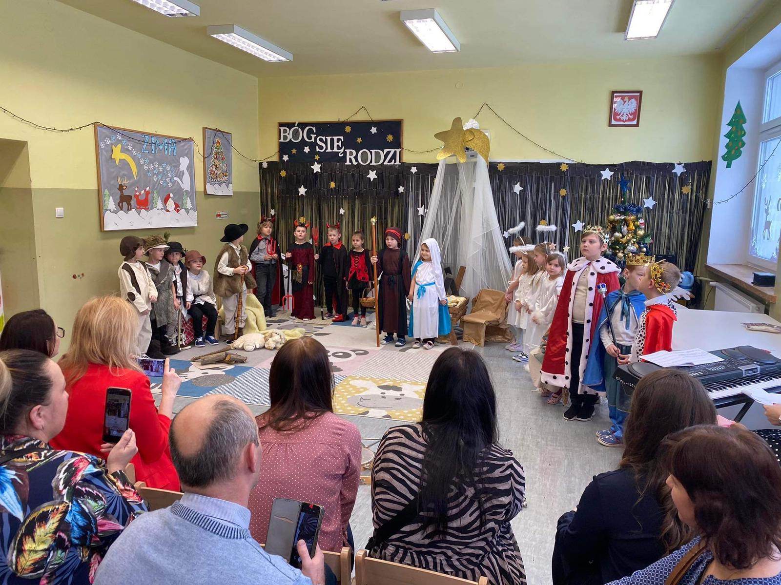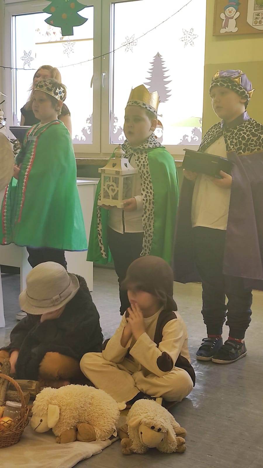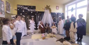 W tym roku również dzieci z oddziałów przedszkolnych pod kierunkiem swoich pań przygotowały Jasełka. Mali artyści z dużym przejęciem i zaangażowaniem odtwarzali swoje role, prezentowali umiejętności recytatorskie i wokalne. Przedszkolaki zasłużyły na ogromne pochwały za zaangażowanie, recytowane wierszyki, grę na instrumentach, piękny śpiew kolęd i pastorałek, dzięki którym stworzyły wspaniałą atmosferę i podbiły serca widowni.