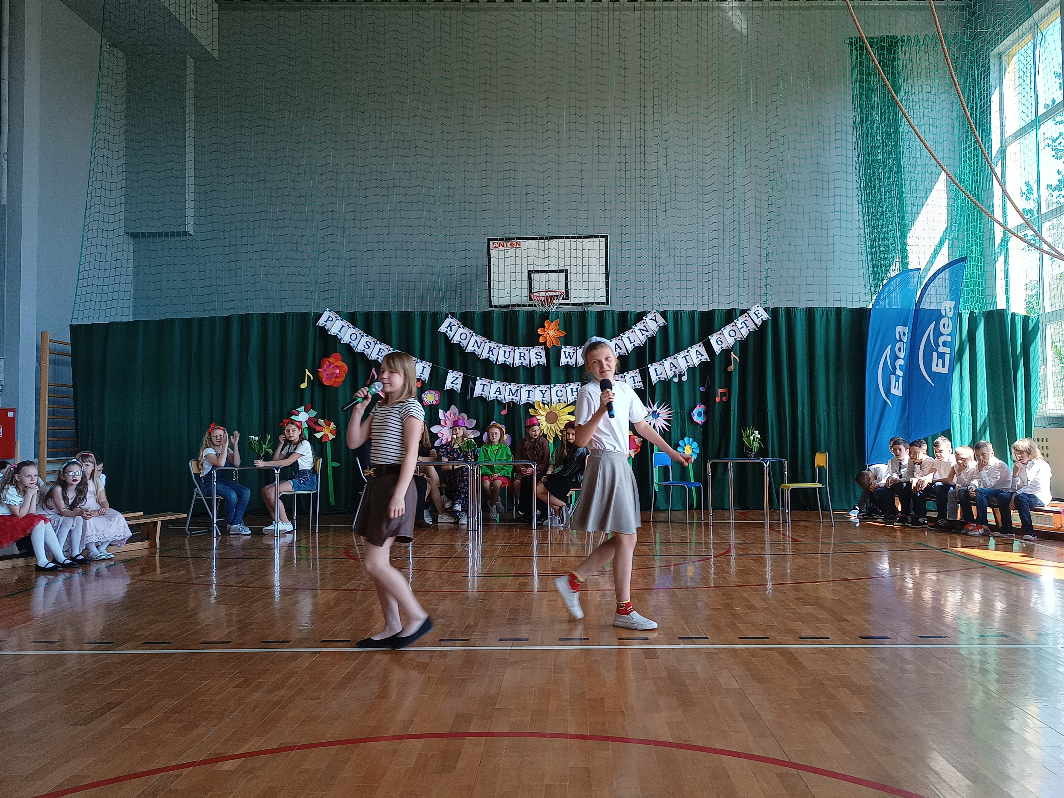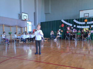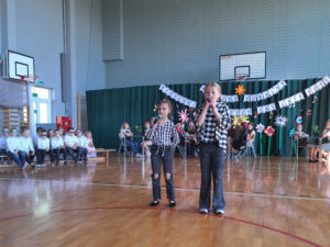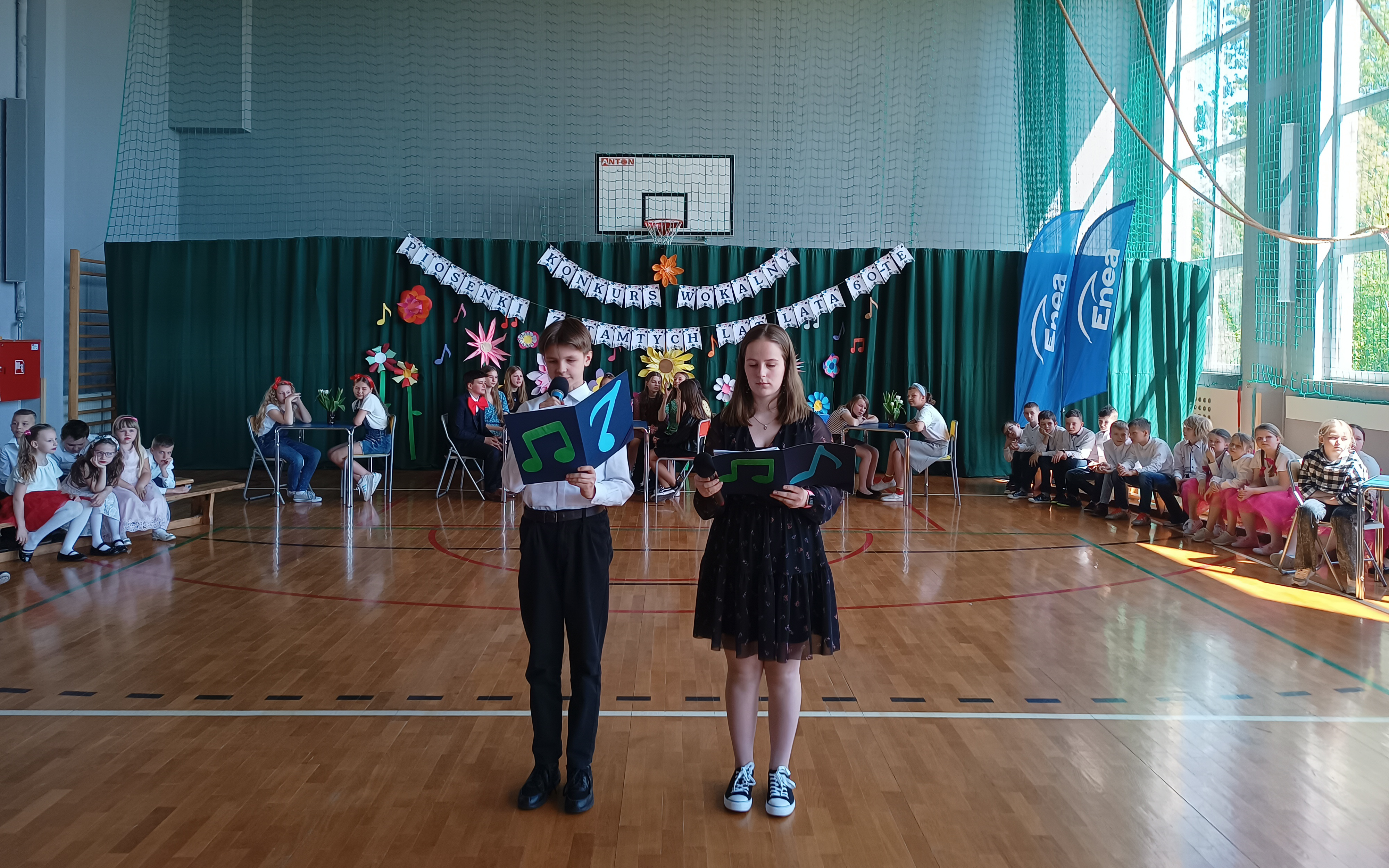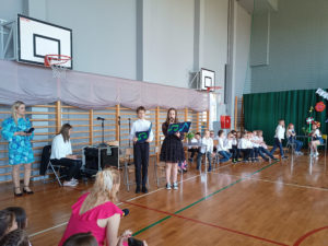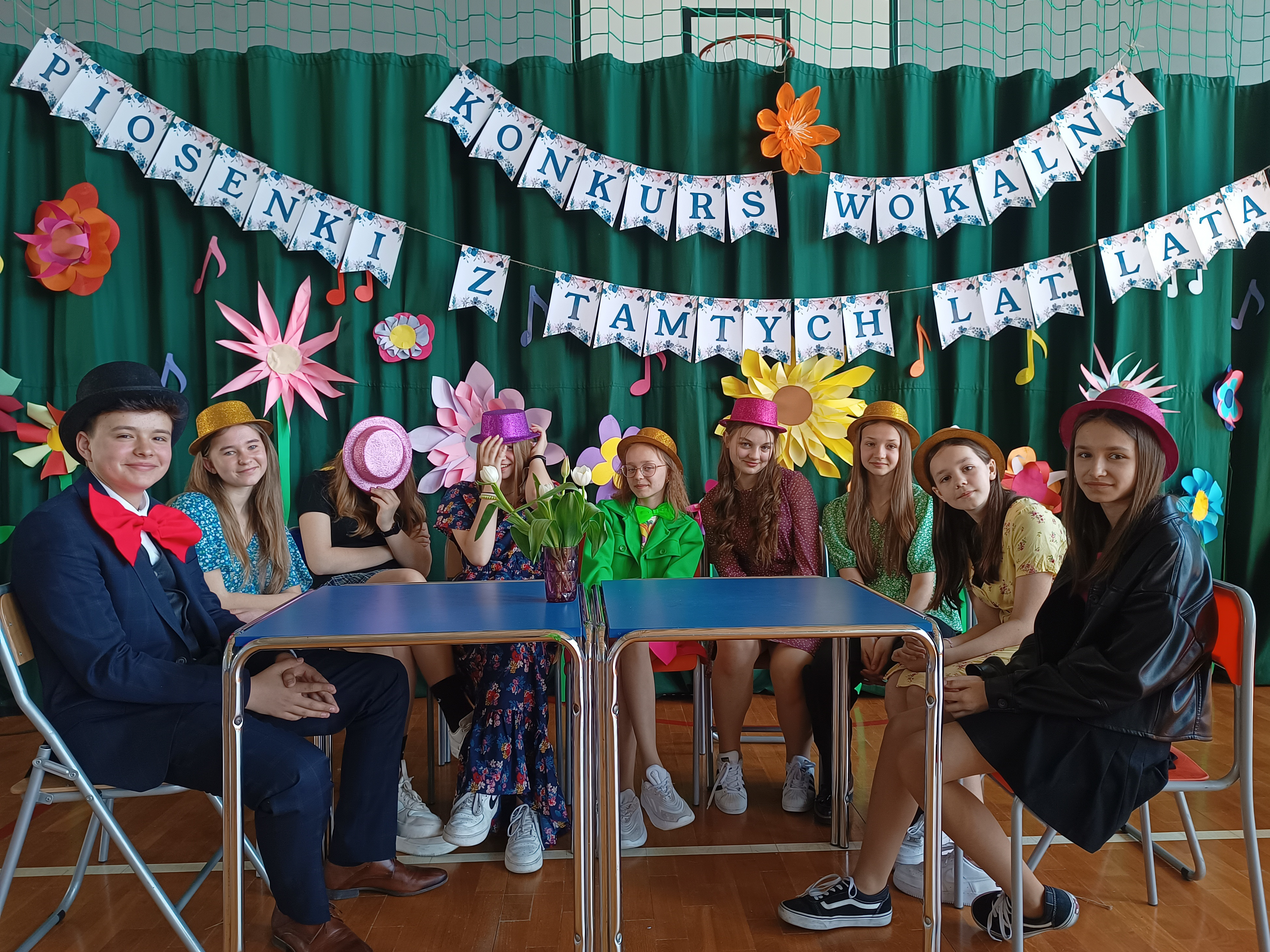 Tą poetycką strofą, pytaniem poety: czym jest muzyka, pytaniem chyba retorycznym rozpoczął się koncert muzyczny zorganizowany z okazji jubileuszu 60- lecia naszej szkoły. A skoro 60 lat ma nasza szkoła, to podczas występów usłyszeliśmy największe przeboje z lat 60- tych. Nie zabrakło zatem utworów takich legendarnych zespołów jak: Czerwony Gitary czy Skaldowie. Publiczność świetnie bawiła się przy dźwiękach utworów „Wszystko mi mówi, że mnie ktoś pokochał”, „Nie zadzieraj nosa”, „Cała sala śpiewa z nami” czy „No bo ty się boisz myszy”. Wszyscy uczestnicy byli doskonale przygotowani. Oprócz znajomości tekstów oraz umiejętności wokalnych ocenie podlegały także charakteryzacja występujących oraz ogólny wyraz artystyczny. Jurorzy mieli niezwykle trudne zadanie.