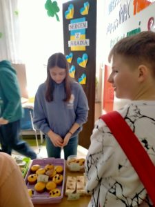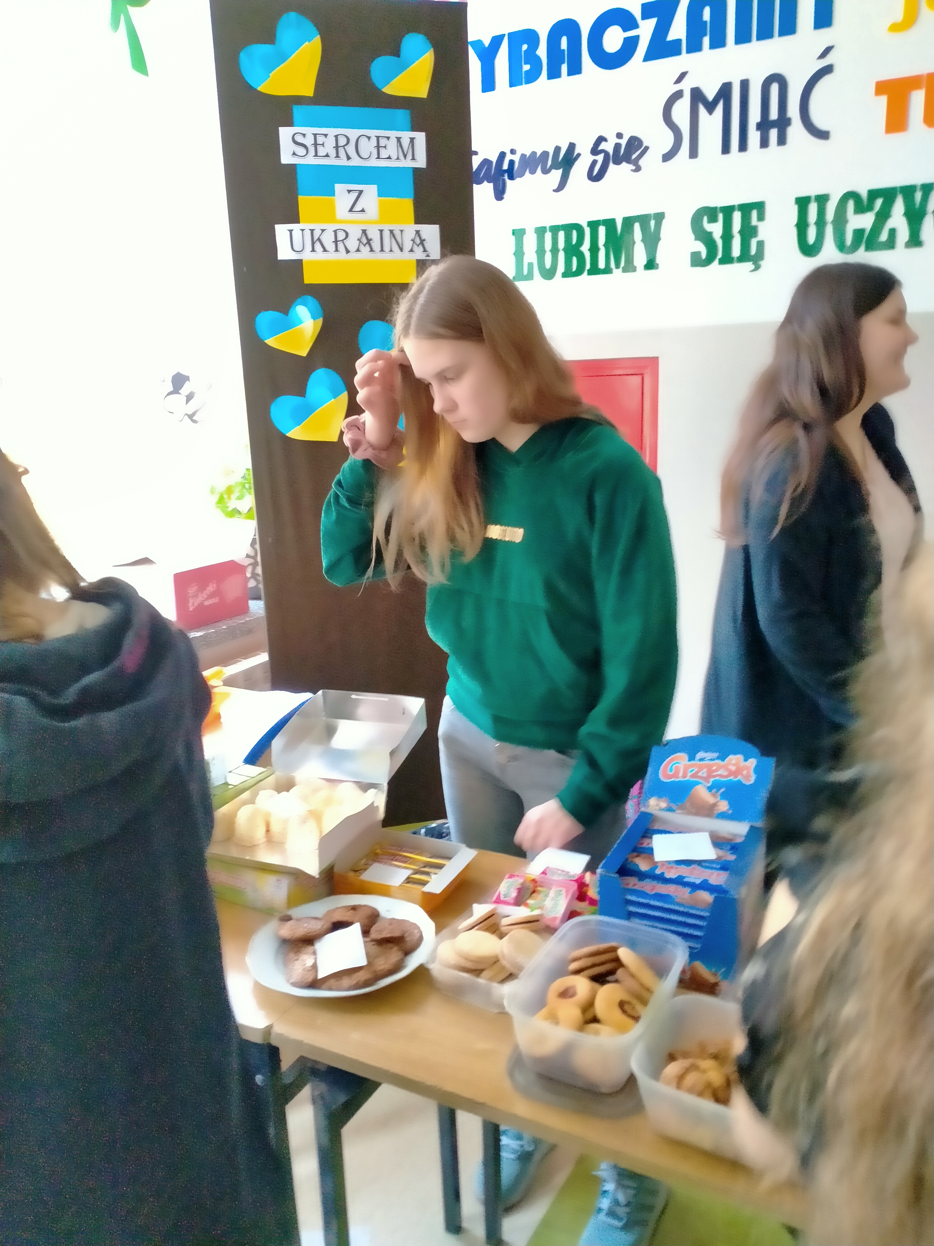 W dniach od 16 do 18 marca w naszej szkole odbył się kiermasz charytatywny pt. „Sercem z Ukrainą”. Organizatorami tej akcji byli uczniowie Samorządu Uczniowskiego. Podczas kiermaszu wszyscy mogli spróbować pysznych ciast, babeczek i innych słodkości. Cała społeczność naszej szkoły wykazała się ofiarnością i empatią wobec obywateli Ukrainy. Wiele razy pokazaliśmy już, że potrafimy pomagać i dzielić się tym, co posiadamy. Tragedia drugiego człowieka leży nam wszystkim głęboko na sercu.