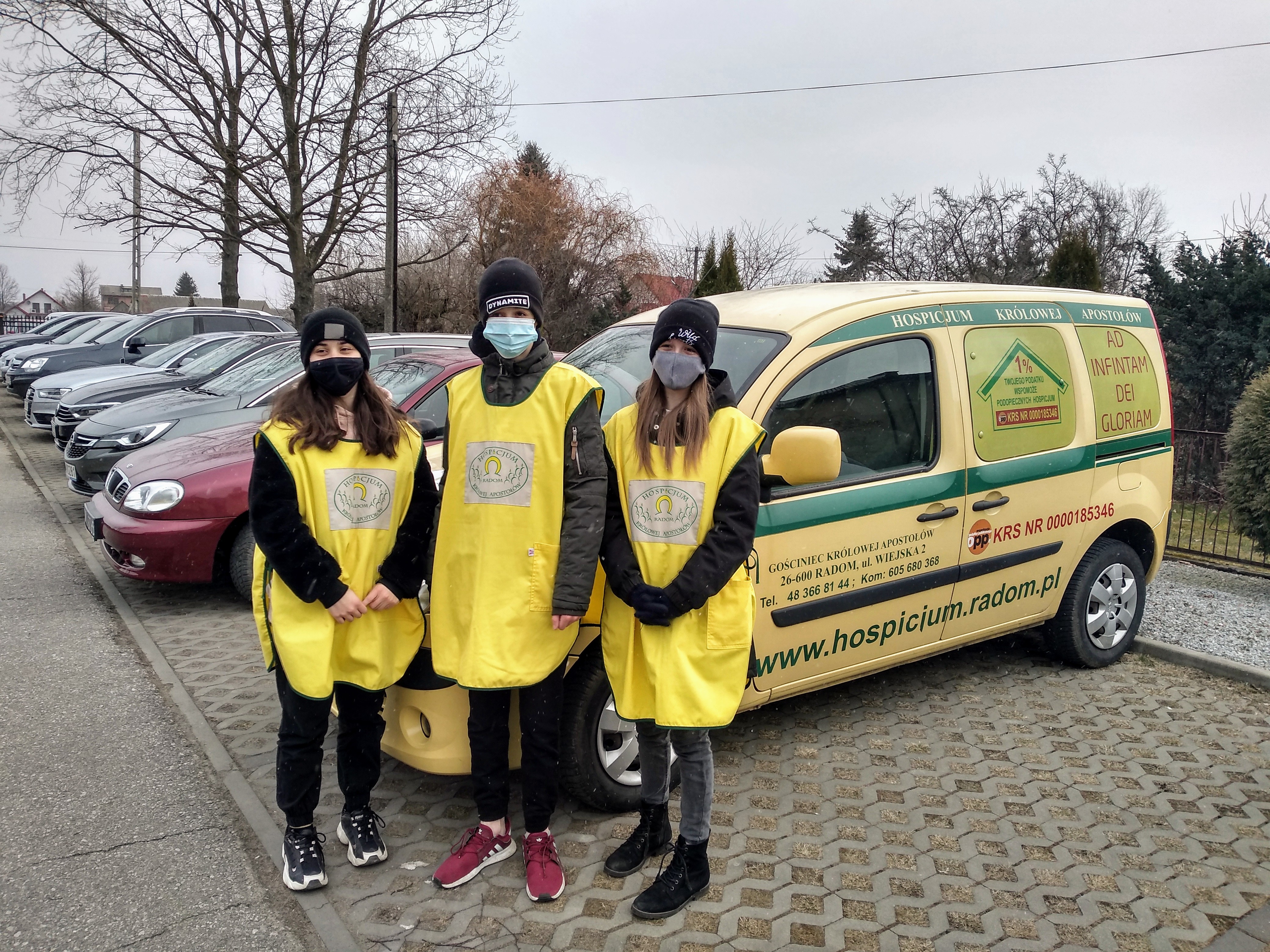 Nasi dzielni pomocnicy w osobach: Karoliny Bukalskiej, Emilii Kaczor, Bartosza Pszczółki, Kacpra Bukalskiego, Alberta Stankowskiego z kl. 8b oraz Malwiny Łobody z kl. 8a zamienili się w wolontariuszy Hospicjum Królowej Apostołów i ofiarując swój czas w niedzielne przedpołudnie przyczynili się do zebrania środków na budowę stacjonarnego ośrodka hospicyjnego na Sołtykowie.