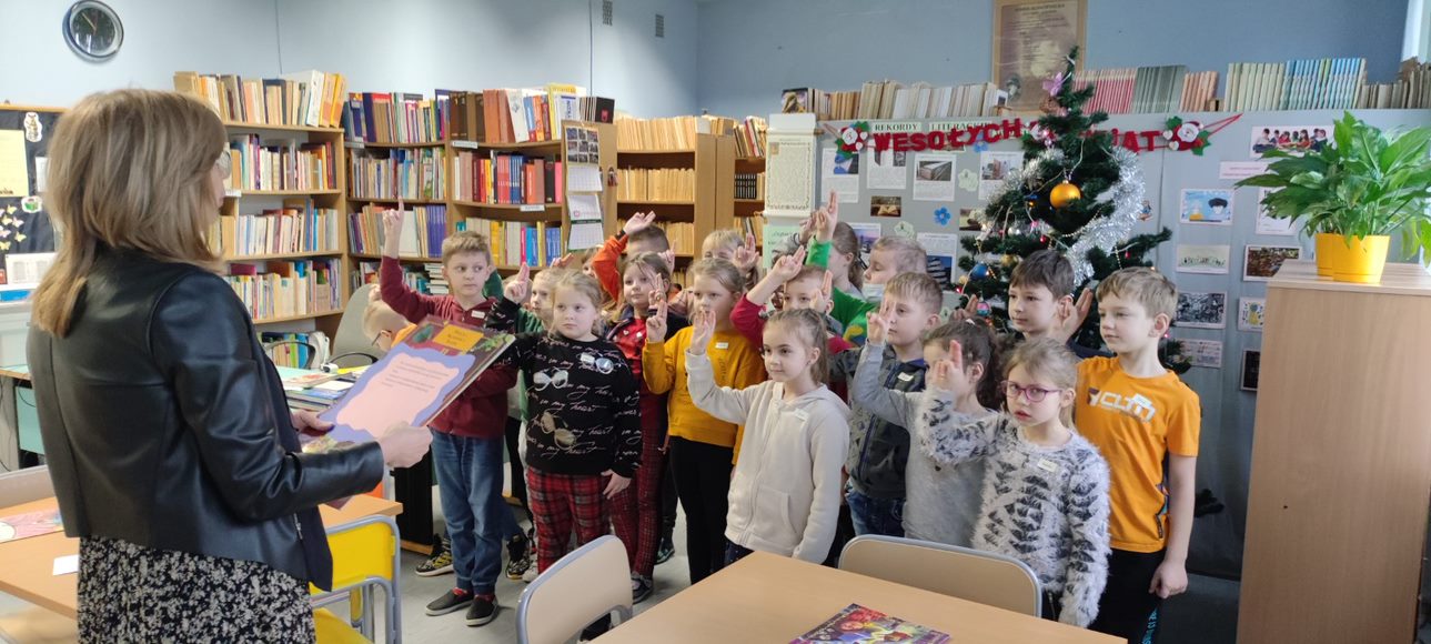 Pierwsze spotkanie z biblioteką szkolną to wyjątkowa uroczystość a pierwsze wypożyczenie książki powinno na długo pozostać w pamięci dziecka. Mamy nadzieję, że takie przeżycie było udziałem uczniów klas I naszej szkoły, którzy 17.01.2022 r. wzięli udział w uroczystym pasowaniu na czytelnika.
