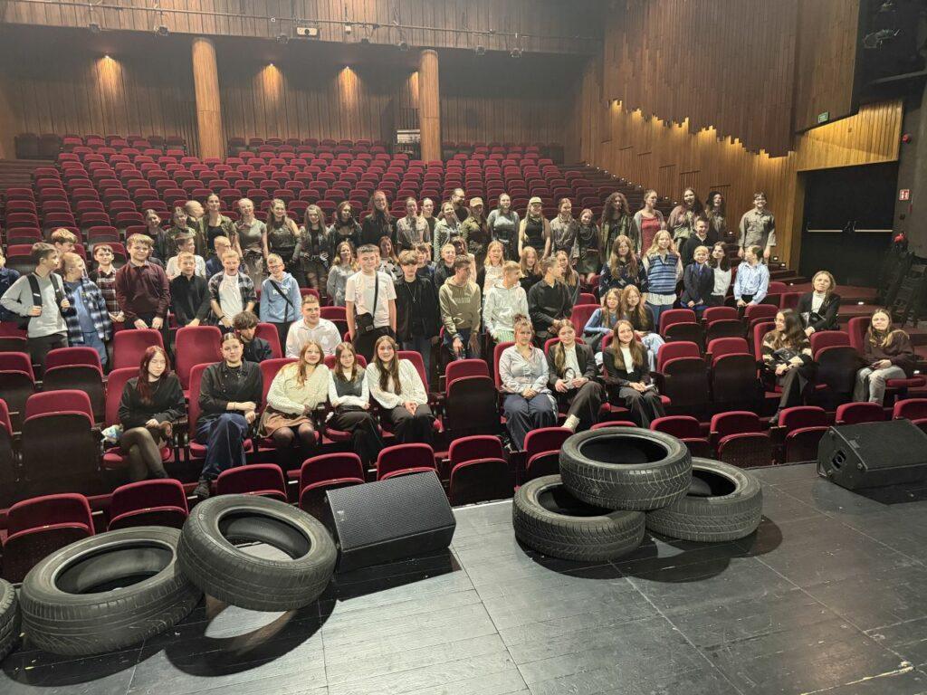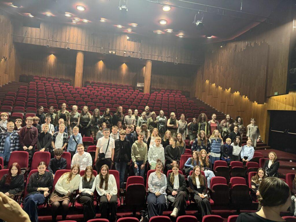 Uczniowie z zainteresowaniem śledzili losy bohaterów, a po zakończeniu przedstawienia chętnie dzielili się swoimi wrażeniami. Mieli również okazję do krótkiego spotkania z artystami i reżyserką musicalu panią Agą Grębosz oraz wspólnego zdjęcia.