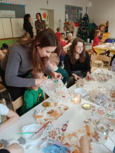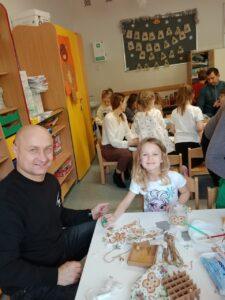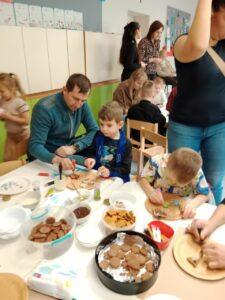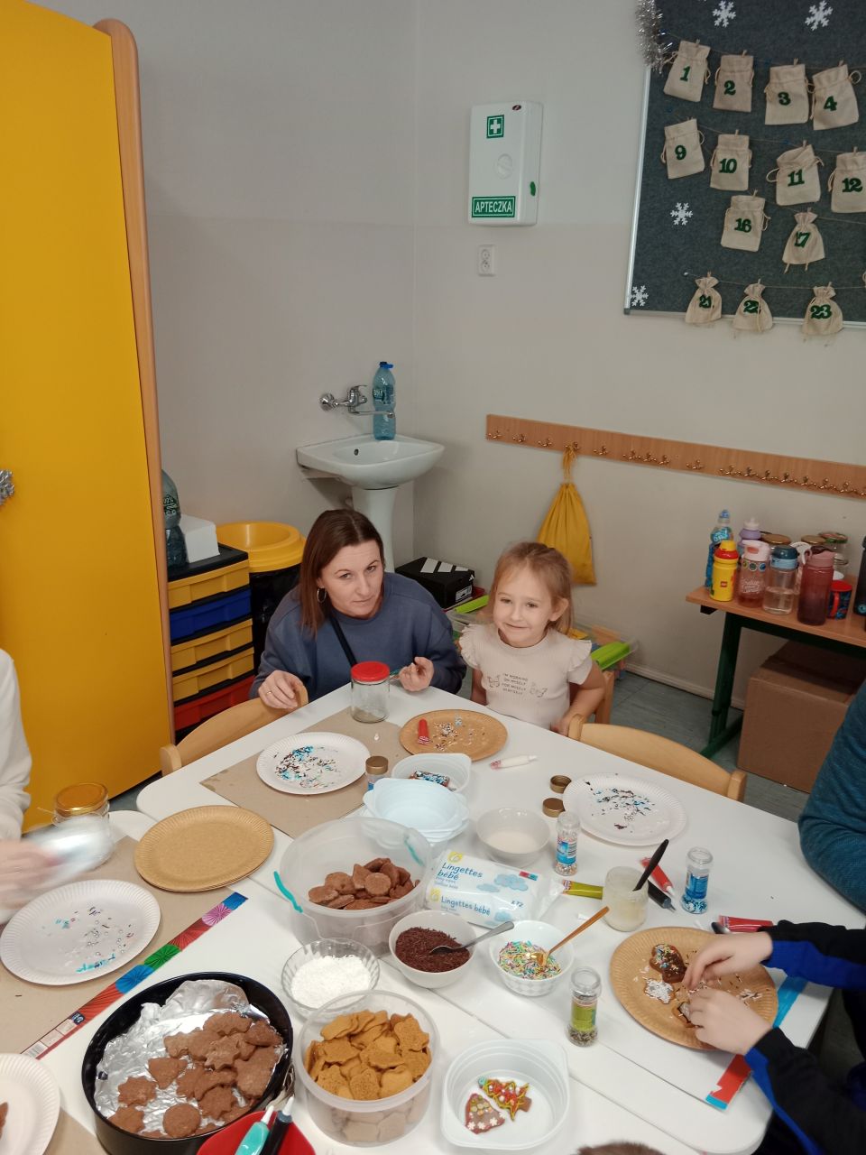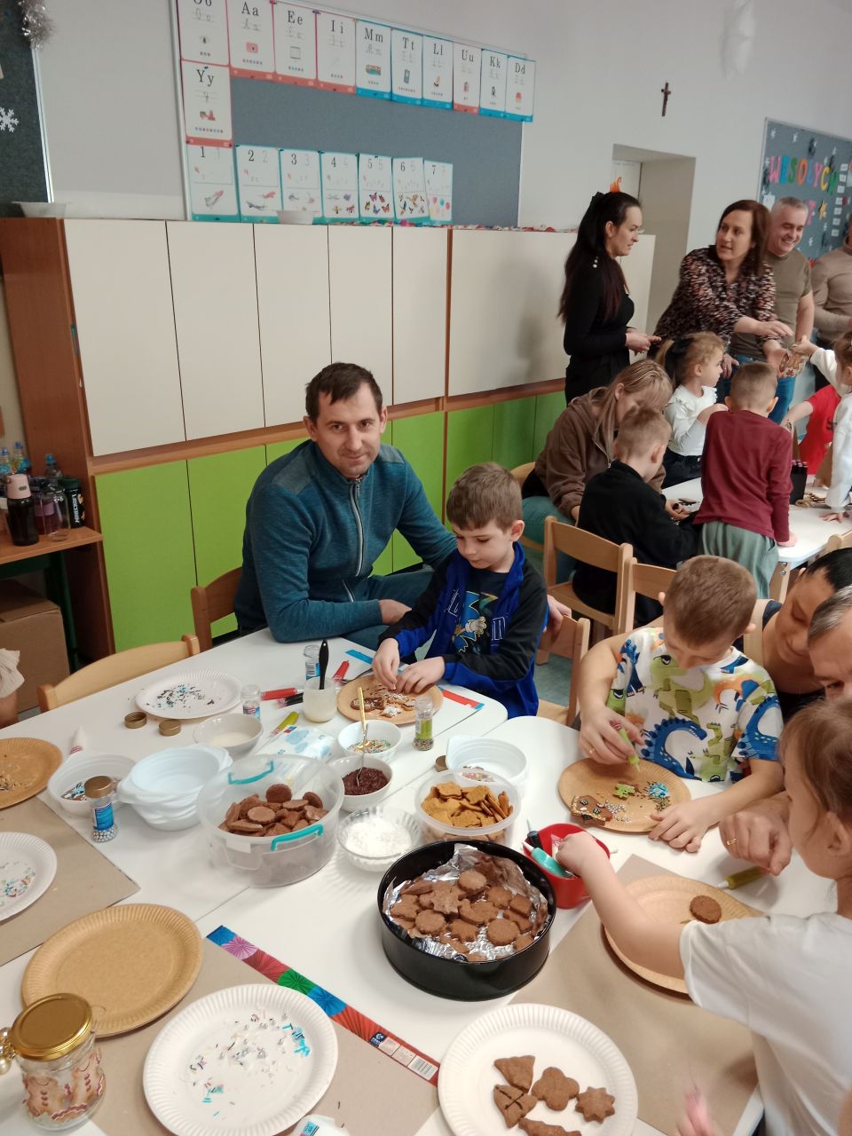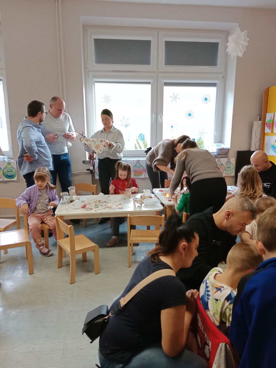 W grupie 0a odbyły się wyjątkowe warsztaty świąteczne z udziałem rodziców. Było bardzo wesoło, a w sali można było poczuć prawdziwą magię świąt Bożego Narodzenia. Dzieci wspólnie z rodzicami wykonywały piękne dekoracje świąteczne, tworzyły lampiony, a co najważniejsze- z ogromnym zaangażowaniem ozdabiały pierniki.