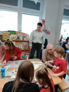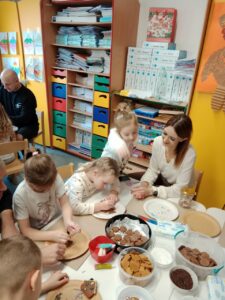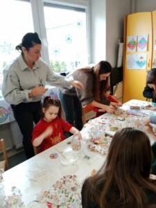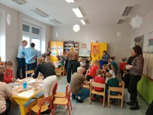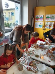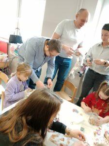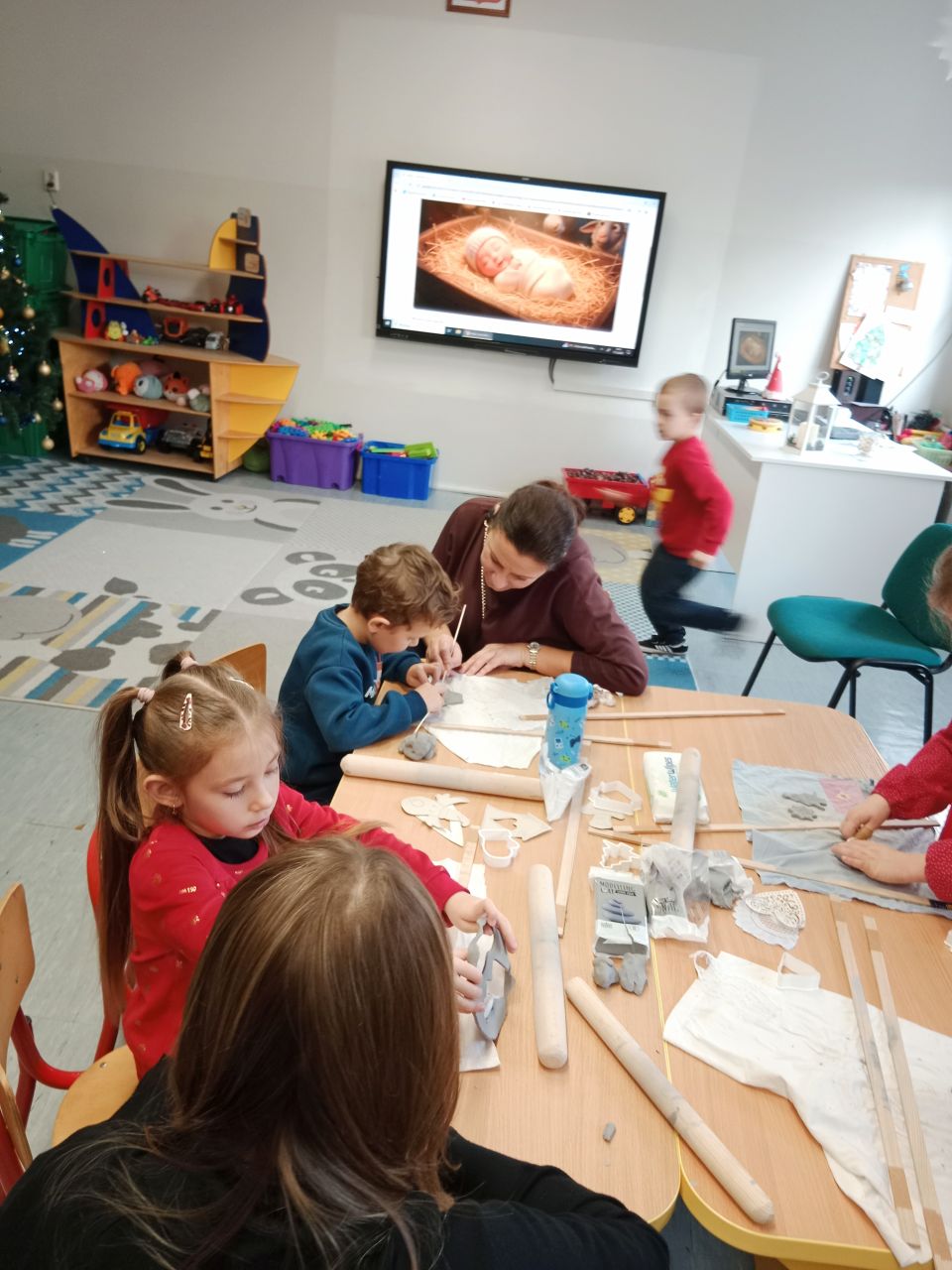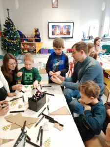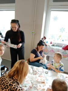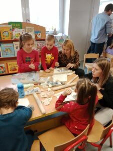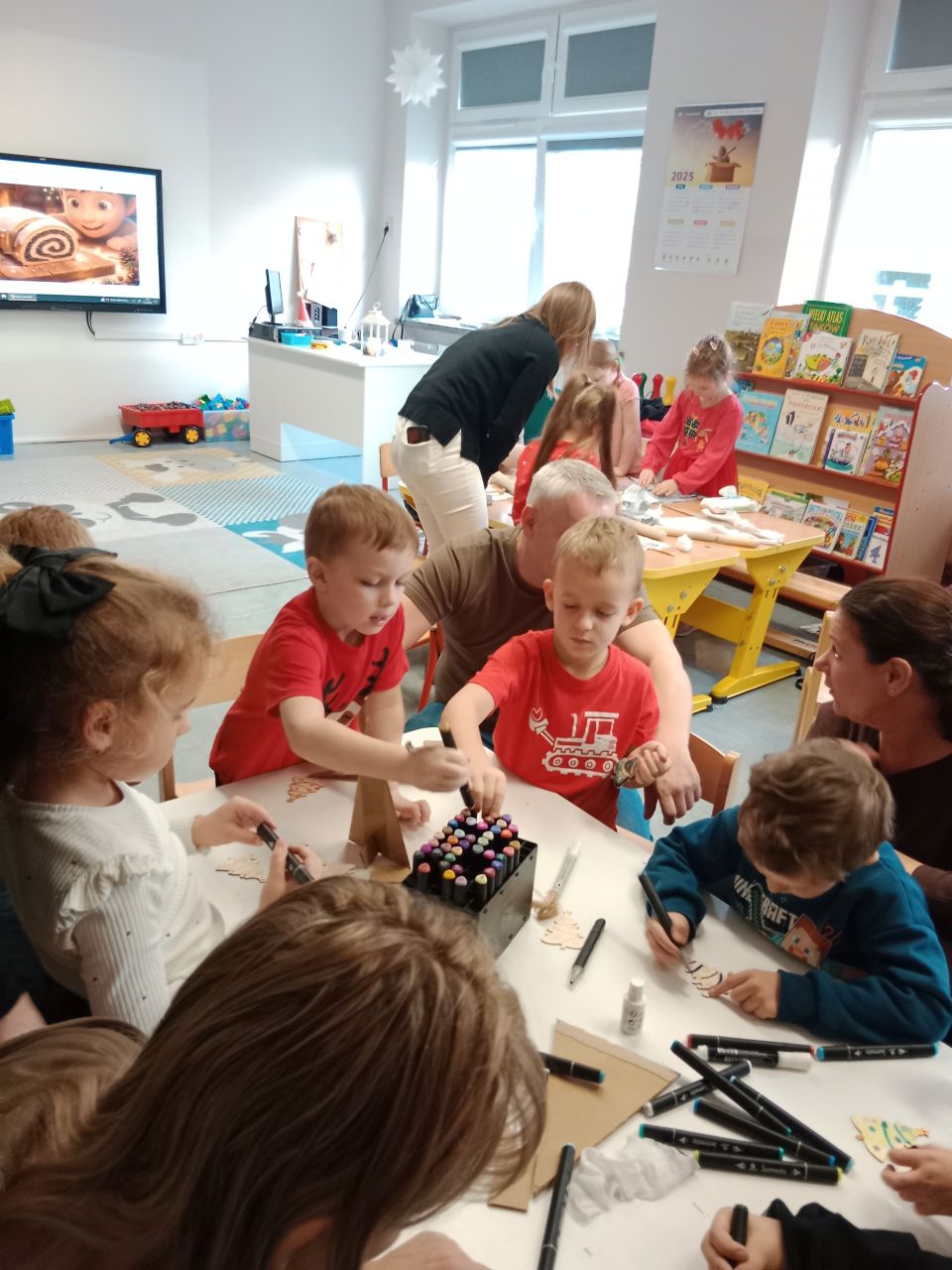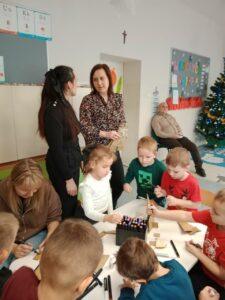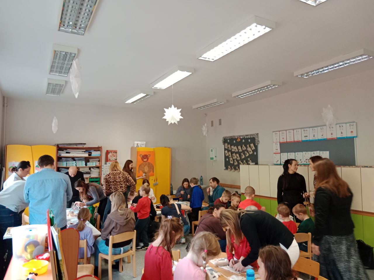 W grupie 0a odbyły się wyjątkowe warsztaty świąteczne z udziałem rodziców. Było bardzo wesoło, a w sali można było poczuć prawdziwą magię świąt Bożego Narodzenia. Dzieci wspólnie z rodzicami wykonywały piękne dekoracje świąteczne, tworzyły lampiony, a co najważniejsze- z ogromnym zaangażowaniem ozdabiały pierniki.