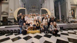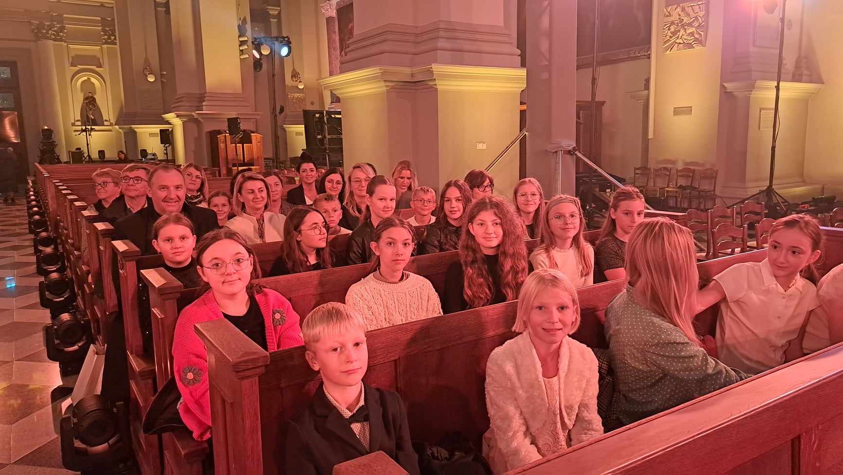 9 października 2024r. grupa uczniów, nauczycieli i rodziców naszej szkoły wzięła udział w nagraniu koncertu galowego XXIV Dnia Papieskiego „Psalm dni naszych”, które odbyło się w Kościele pw. Wszystkich Świętych w Warszawie. PSP w Mazowszanach otrzymała zaproszenie od Ks. Dariusza Kowalczyka- Prezesa Fundacji Dzieło Nowego Tysiąclecia, a także absolwenta naszej szkoły. „Święty Jan Paweł II. Ewangelia starości i cierpienia” – to hasło pod jakim obchodzony jest w tym roku 24. Dzień Papieski. Głównym organizatorem jest Fundacja Dzieło Nowego Tysiąclecia, z której wsparcia korzysta rocznie ponad 2 tys. młodych uzdolnionych osób. Podczas koncertu wystąpili znani artyści, m. in. Krzysztof Antkowiak, Maciej Balcar, Aleksandra Maciejewska, Siostry Melosik, Lidia Pospieszalska, Anna Szarmach, Olga Szomańska, Tomasz Szczepanik, Mateusz Ziółko, Chór absolwentów Fundacji Dzieło Nowego Tysiąclecia „Tylko Ty” oraz orkiestra pod dyrekcją Grzegorza Urbana. Bardzo dziękujemy Ks. Dariuszowi Kowalczykowi, że znaleźliśmy się w gronie wyróżnionych placówek biorących udział w tym pięknym, niezwykle wartościowym i przybliżającym nam postać oraz świętość Jana Pawła II wydarzeniu. To był naprawdę cudowny, październikowy dzień, który spędziliśmy wspólnie, spacerując uliczkami Warszawy, zachwycając się urokiem jesieni i pięknymi głosami artystów koncertu. Warto nadmienić, że powyższy koncert zostanie wyemitowany w TVP w najbliższą niedzielę o godz. 17.30. Może nas dostrzeżecie na widowni 😉