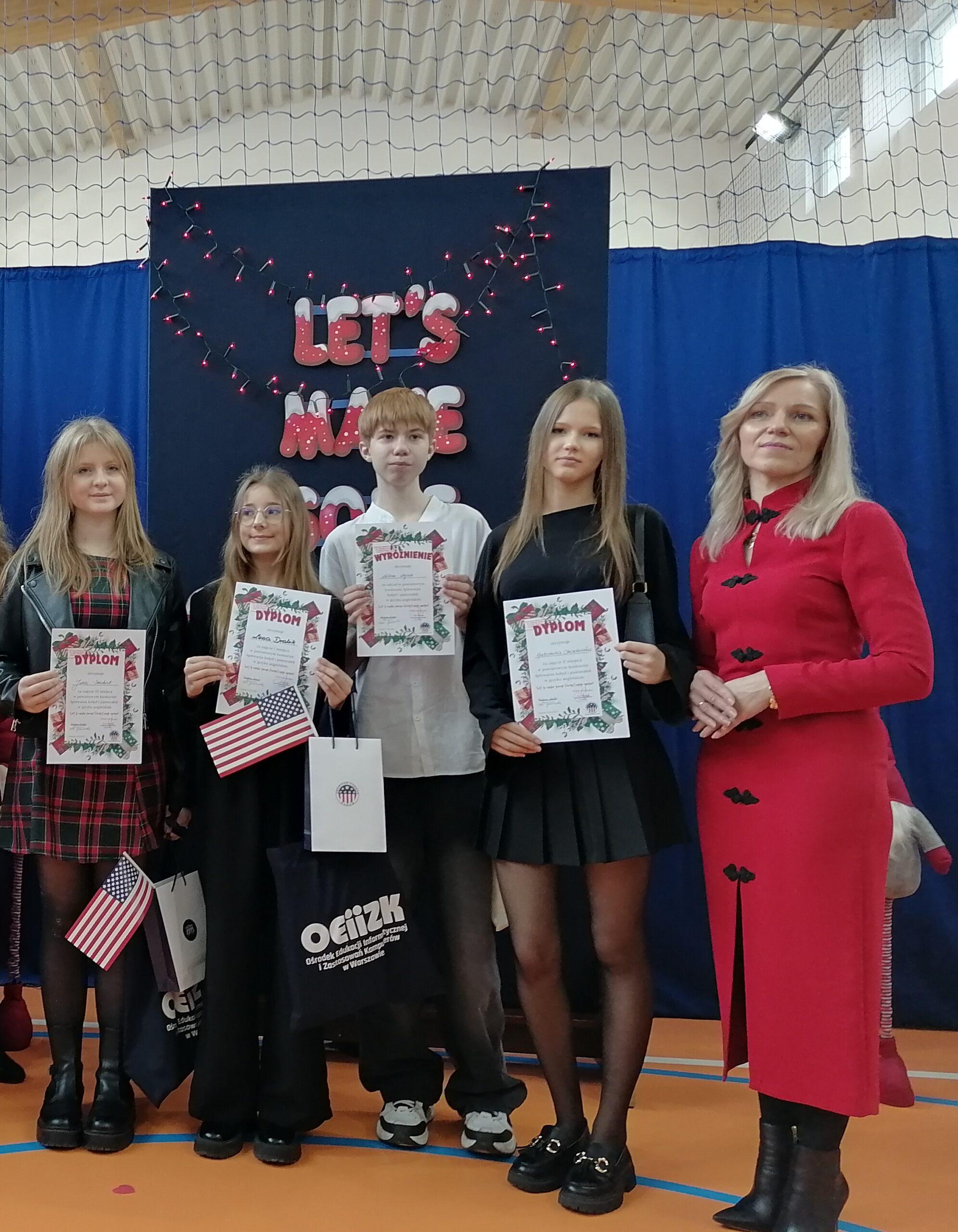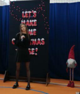 10 grudnia Antonina Chodelska, uczennica klasy 8b, reprezentowała naszą szkołę w powiatowym konkursie kolęd i pastorałek w j. angielskim „Let’s make some Christmas noise”. Organizatorem przedsięwzięcia była Publiczna Szkoła Podstawowa im. Żołnierzy Armii Krajowej 72 Pułku w Mniszku we współpracy z American Corner Radom.