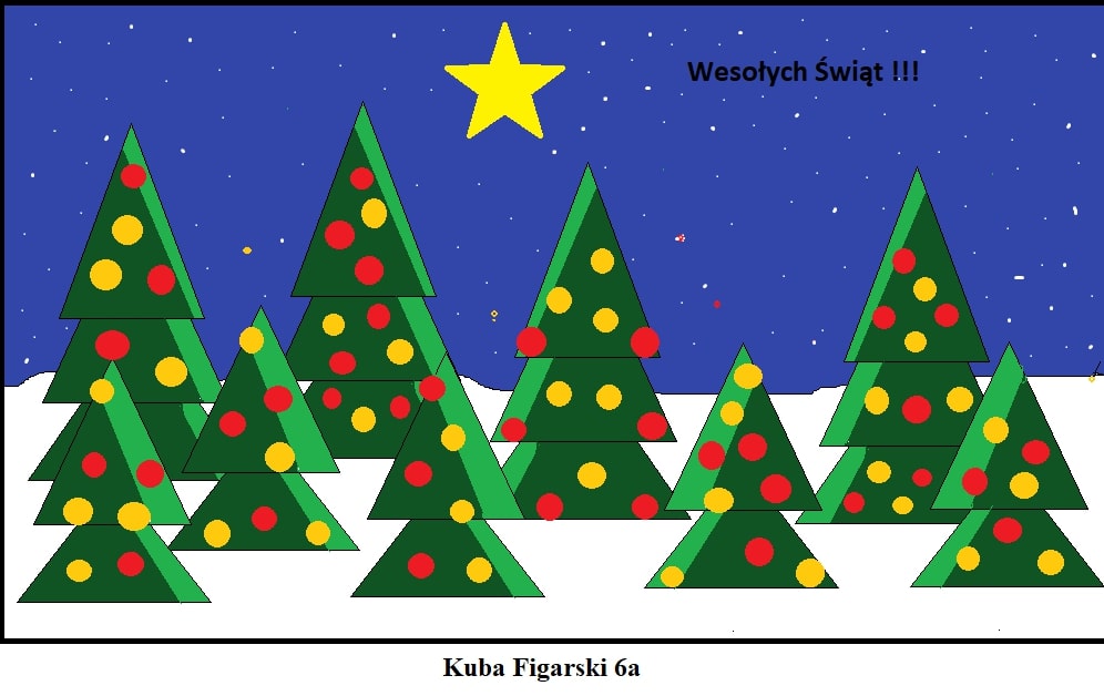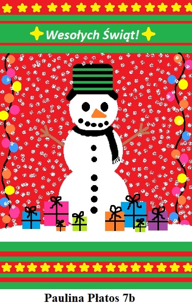 Najpiękniejsze kartki świąteczne to te, które powstają własnoręcznie i są wykonane przez dzieci. 19 grudnia został rozstrzygnięty szkolny konkurs na kartkę bożonarodzeniową. Zadaniem uczestników było wykonanie pracy w dowolnym edytorze graficznym, która nawiązywała tematycznie do obrzędów, zwyczajów lub symboli związanych ze Świętami Bożego Narodzenia. Spośród kilkudziesięciu prac wykonanych przez naszych uczniów nagrodziliśmy te, które nas zachwyciły.