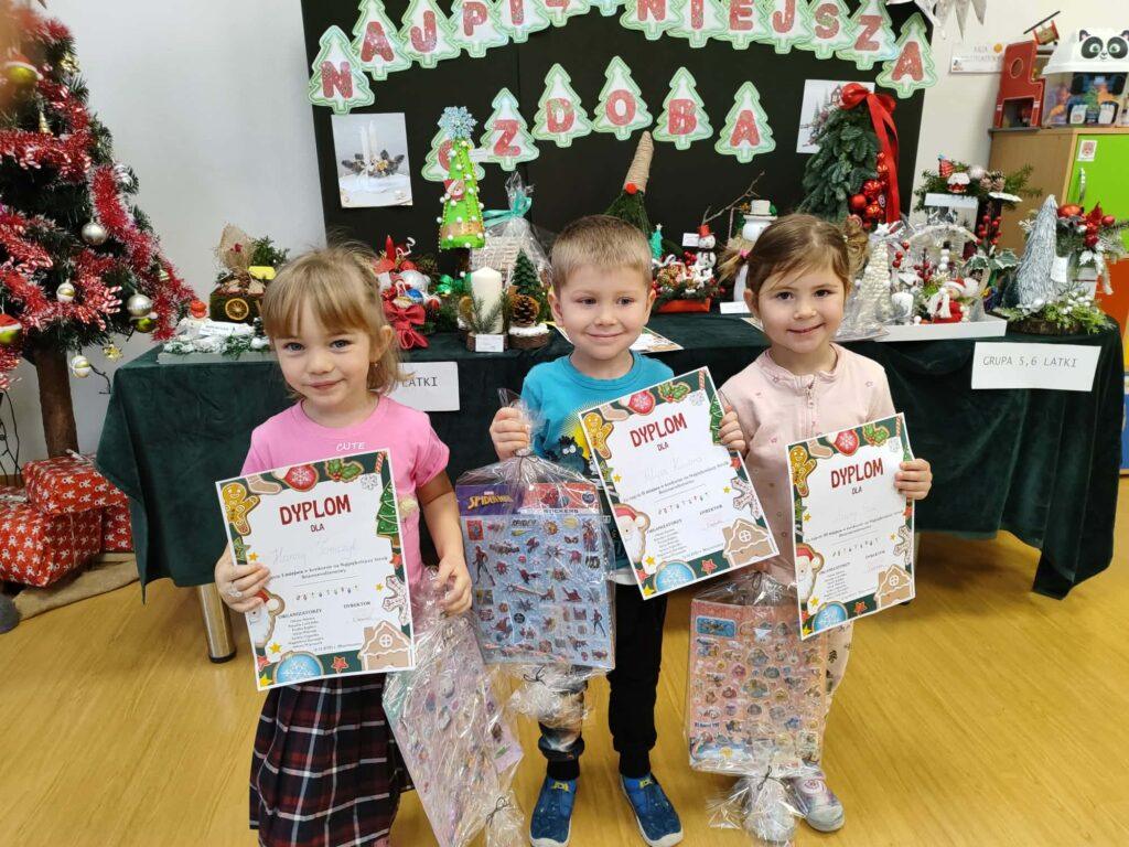 Wszystkie prace zostały zaprezentowane na przedszkolnej wystawie, a uczestnicy konkursu otrzymali pamiątkowe dyplomy i drobne upominki.