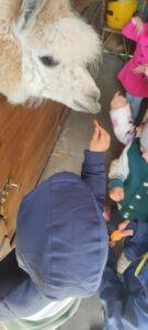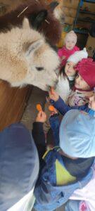 Ogromną radość sprawiło dzieciom również spotkanie z uroczymi alpakami, które można było nie tylko pogłaskać, ale też… nakarmić! Maluchy wykazały się dużą delikatnością i odwagą, a ich uśmiechy mówiły wszystko!
