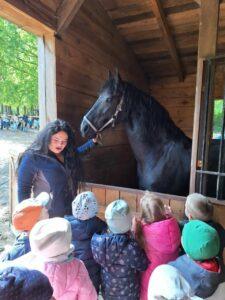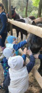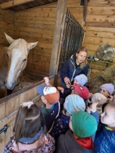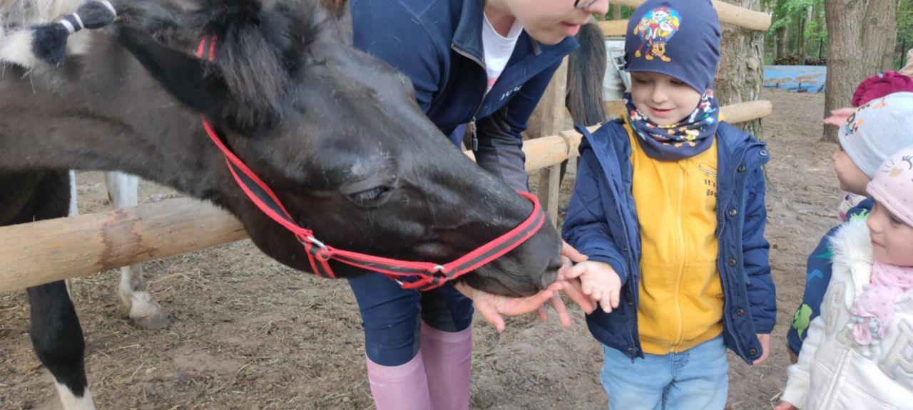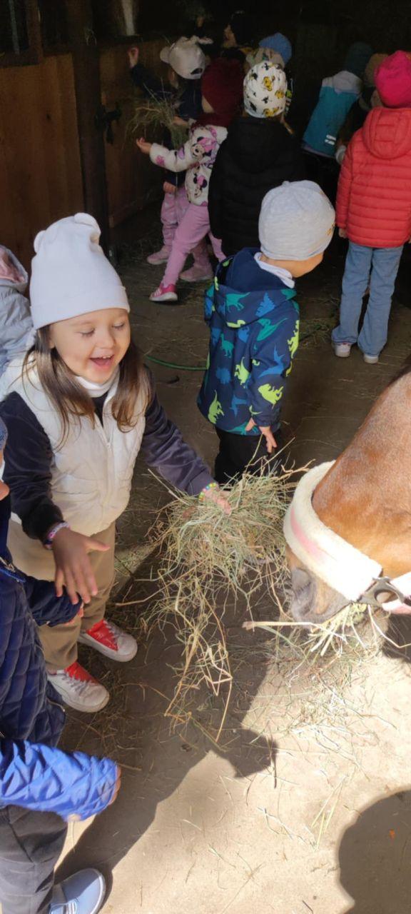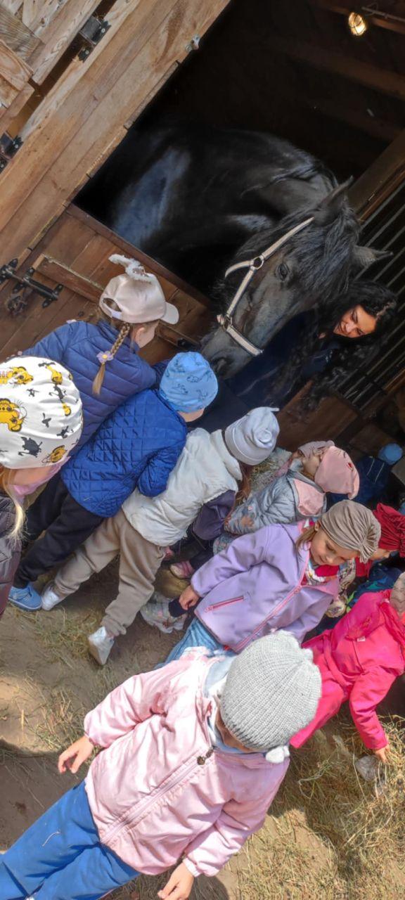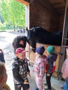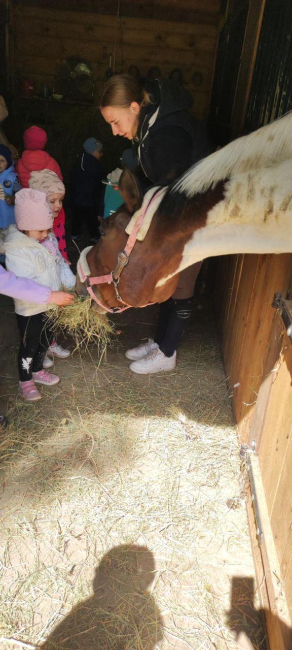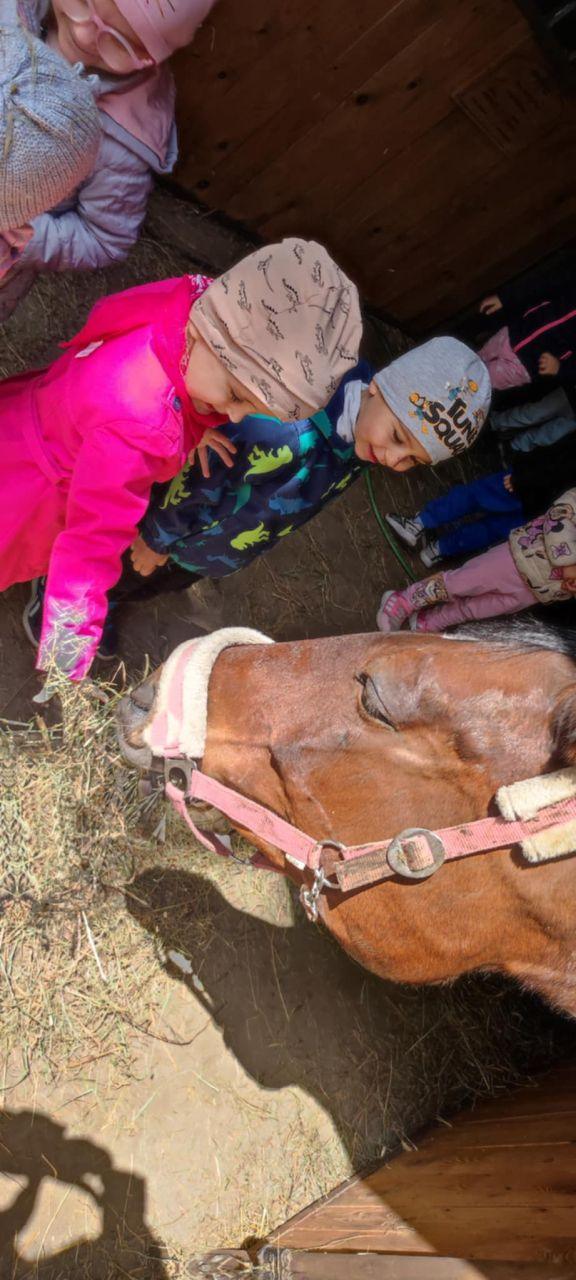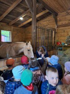 W słoneczny dzień nasze przedszkolaki wybrały się na wyjątkową, krótką wycieczkę do stajni „Konie na Nieboskłonie” w Dąbrówce Warszawskiej. Dla wielu dzieci była to pierwsza okazja, by z bliska zobaczyć majestatyczne konie- poznać ich zwyczaje, dowiedzieć się, czym się żywią i jak należy o nie dbać.