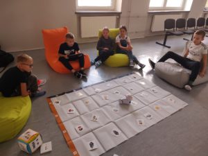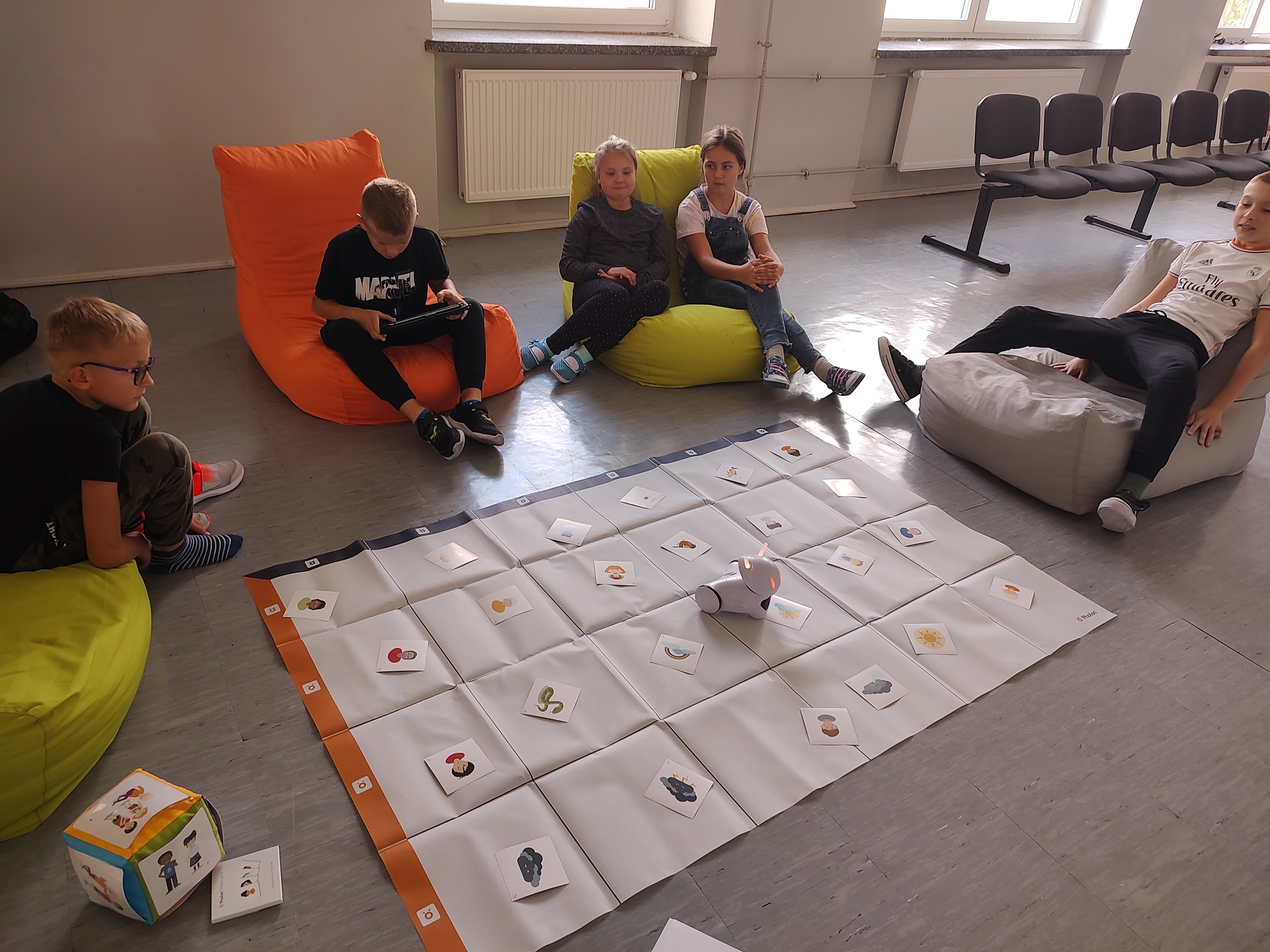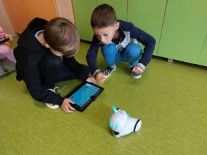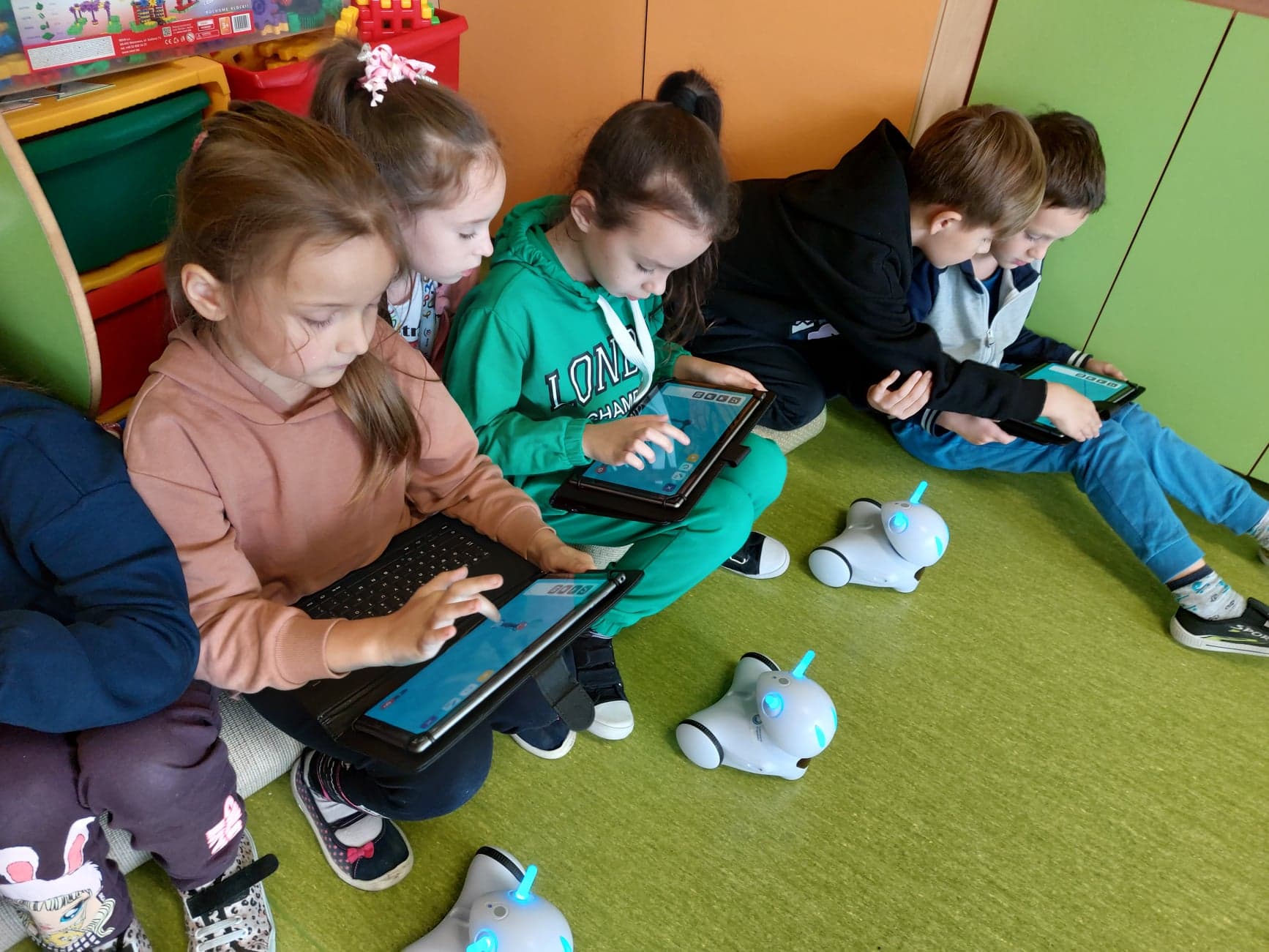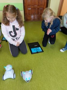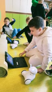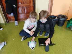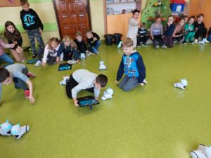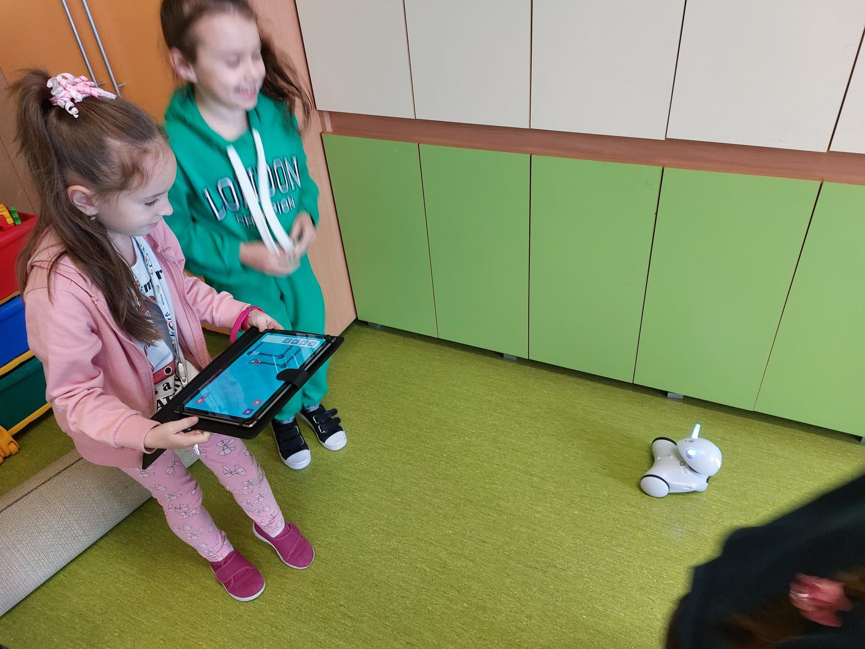 Na pierwszych zajęciach uczniowie doskonalili orientację przestrzenną z wykorzystaniem Robotów Photon Edu. Zabawa polegała na programowaniu robotów za pomocą tabletów. Poprzez zadania stawiane robotom, określali ich ruch, wydawanie dźwięków oraz zmianę koloru czułek. Ten sposób programowania uczy dzieci między innymi planowania, rozwijania orientacji przestrzennej, sprawności manualnej, logicznego myślenia, koordynacji wzrokowo-ruchowej oraz stymuluje myślenie przyczynowo – skutkowe.