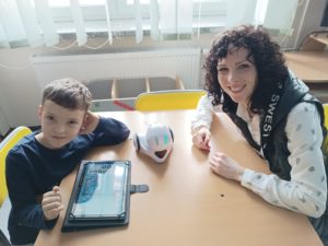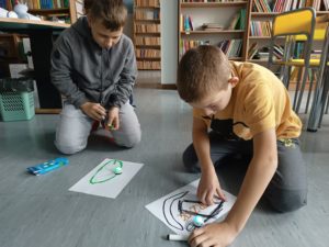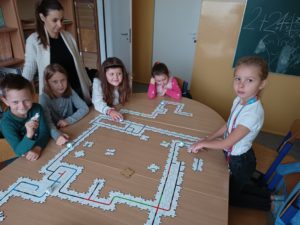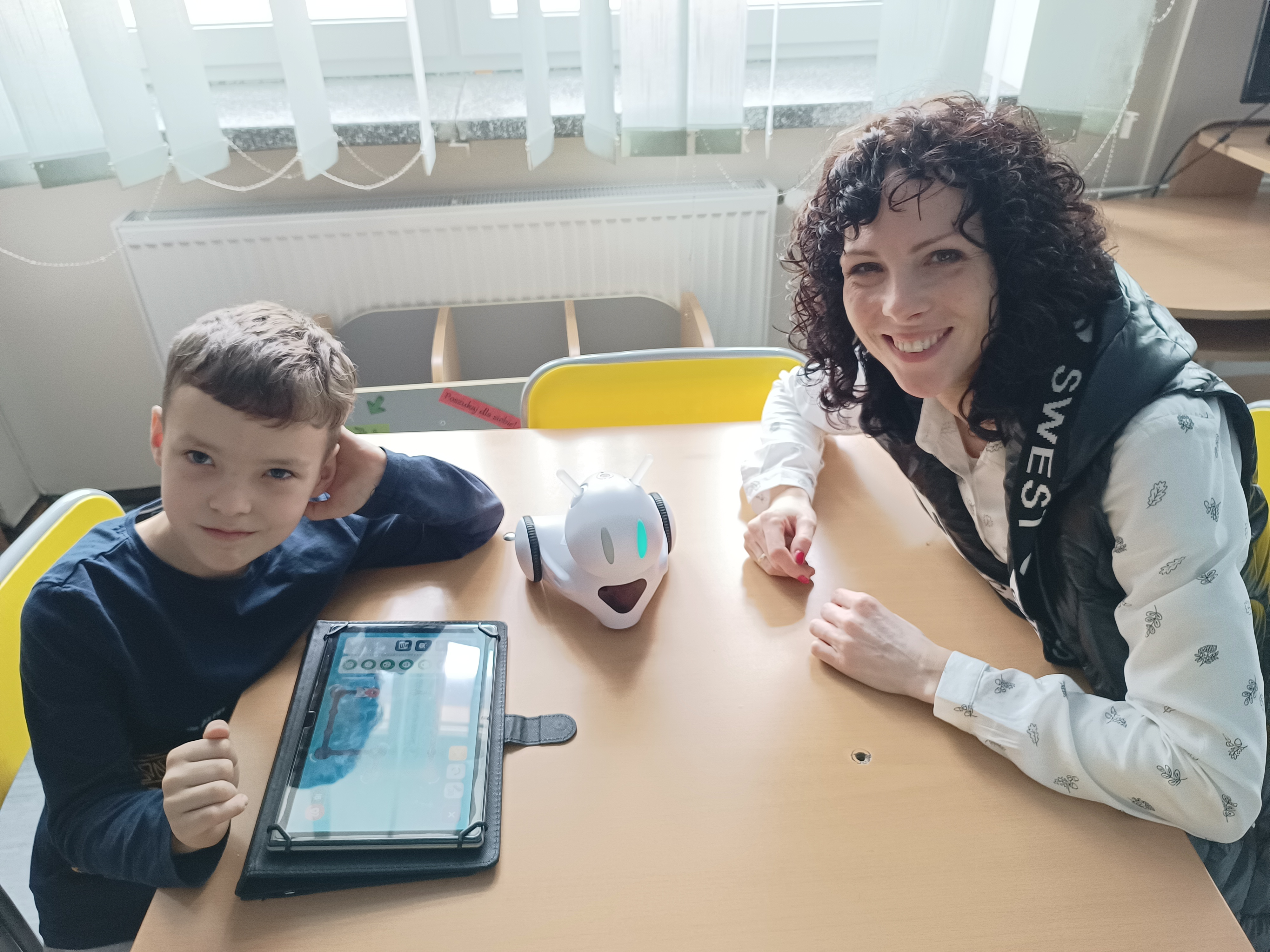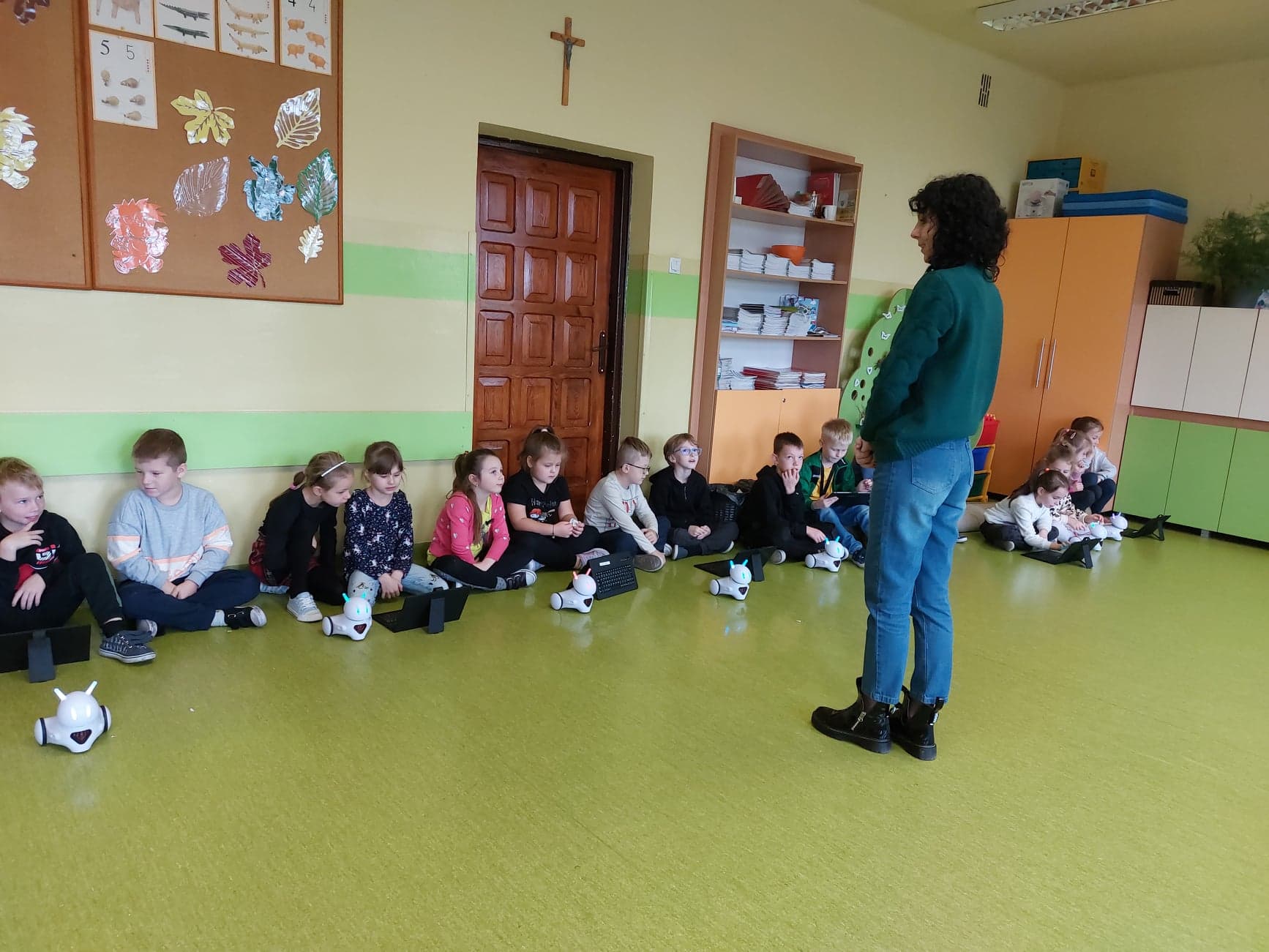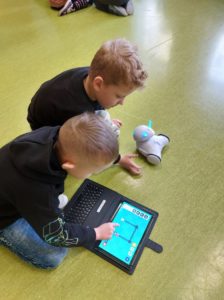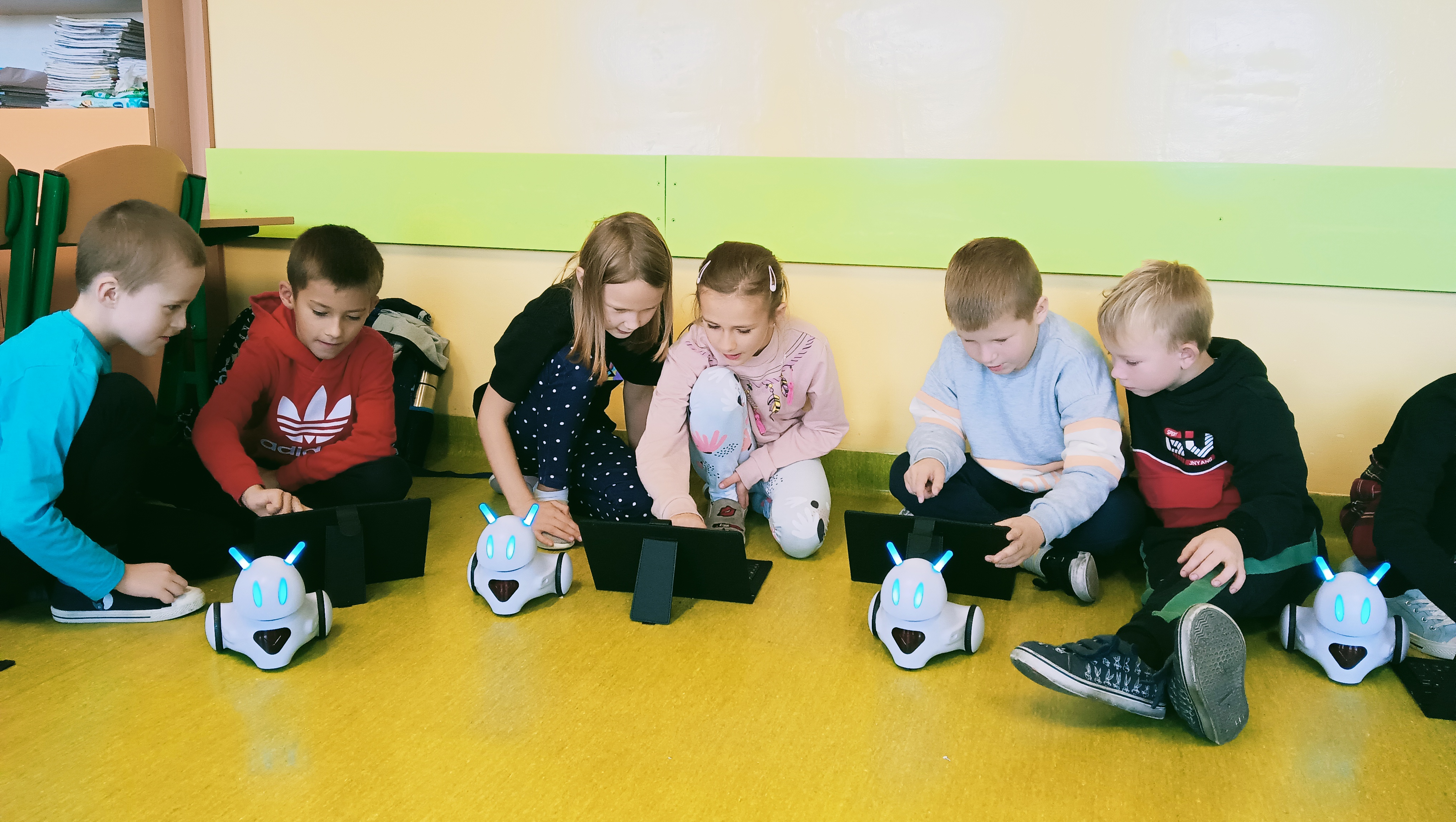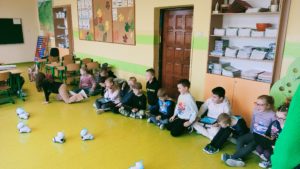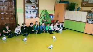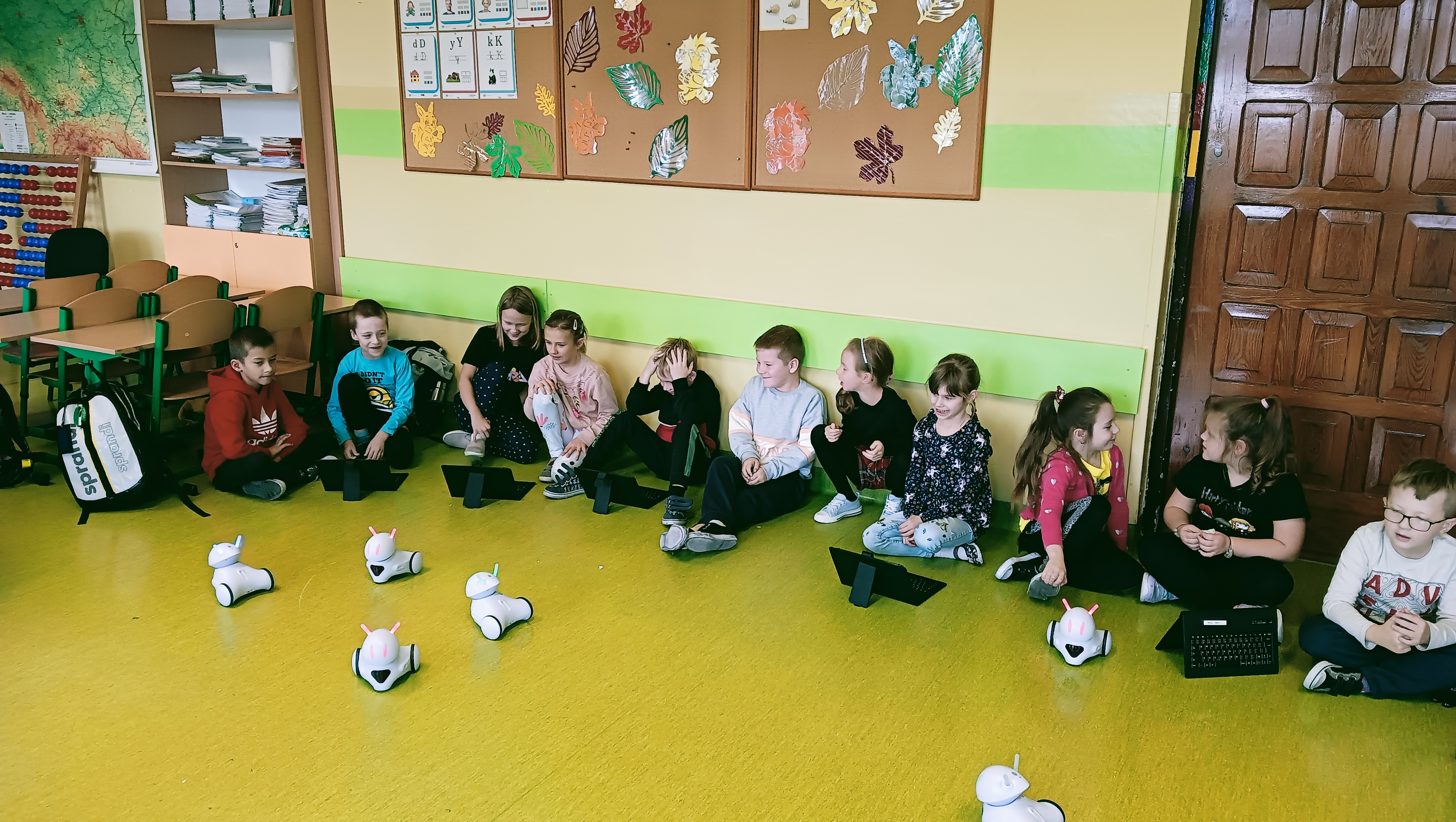 Na pierwszych zajęciach uczniowie doskonalili orientację przestrzenną z wykorzystaniem Robotów Photon Edu. Zabawa polegała na programowaniu robotów za pomocą tabletów. Poprzez zadania stawiane robotom, określali ich ruch, wydawanie dźwięków oraz zmianę koloru czułek. Ten sposób programowania uczy dzieci między innymi planowania, rozwijania orientacji przestrzennej, sprawności manualnej, logicznego myślenia, koordynacji wzrokowo-ruchowej oraz stymuluje myślenie przyczynowo – skutkowe.