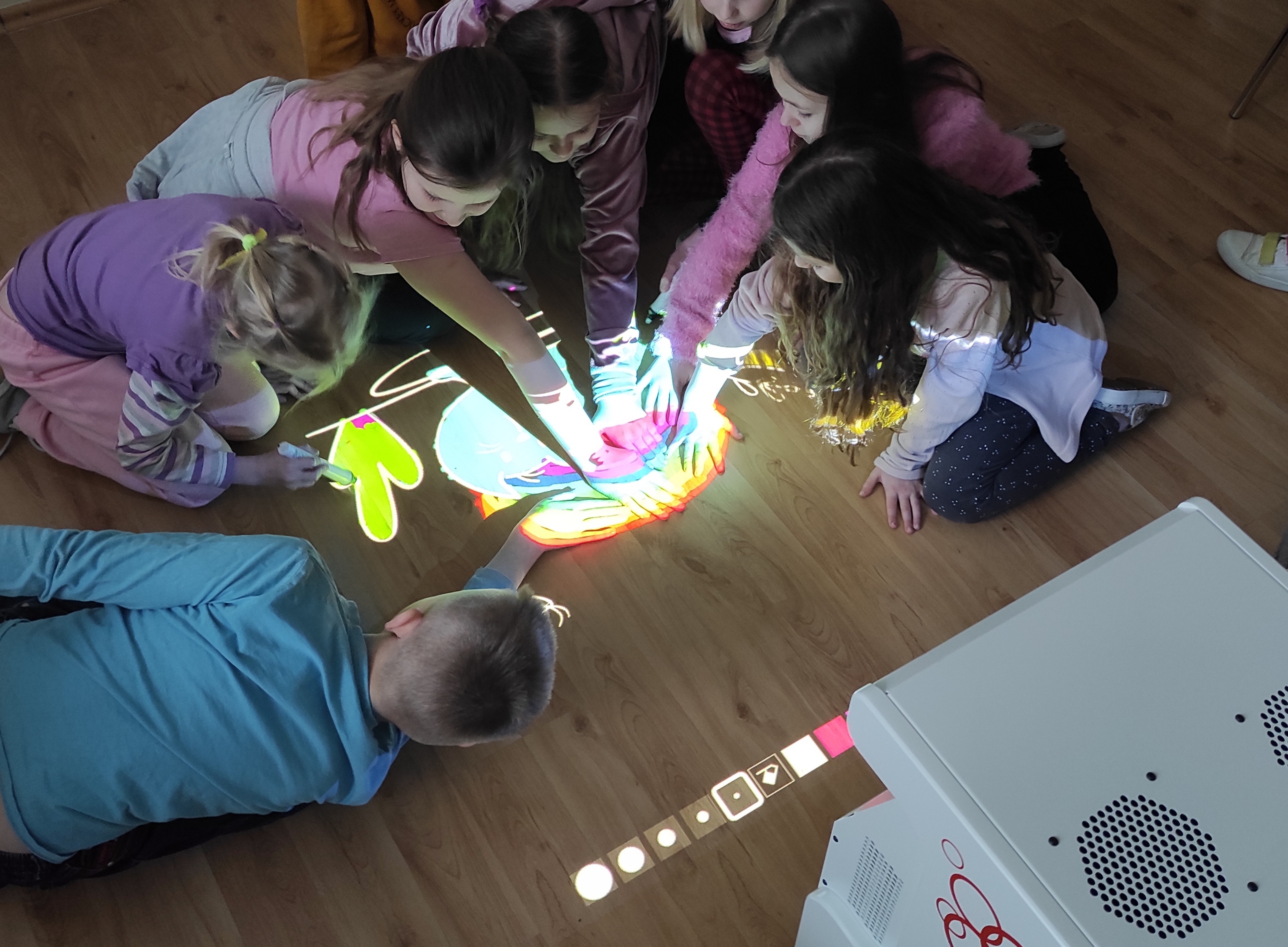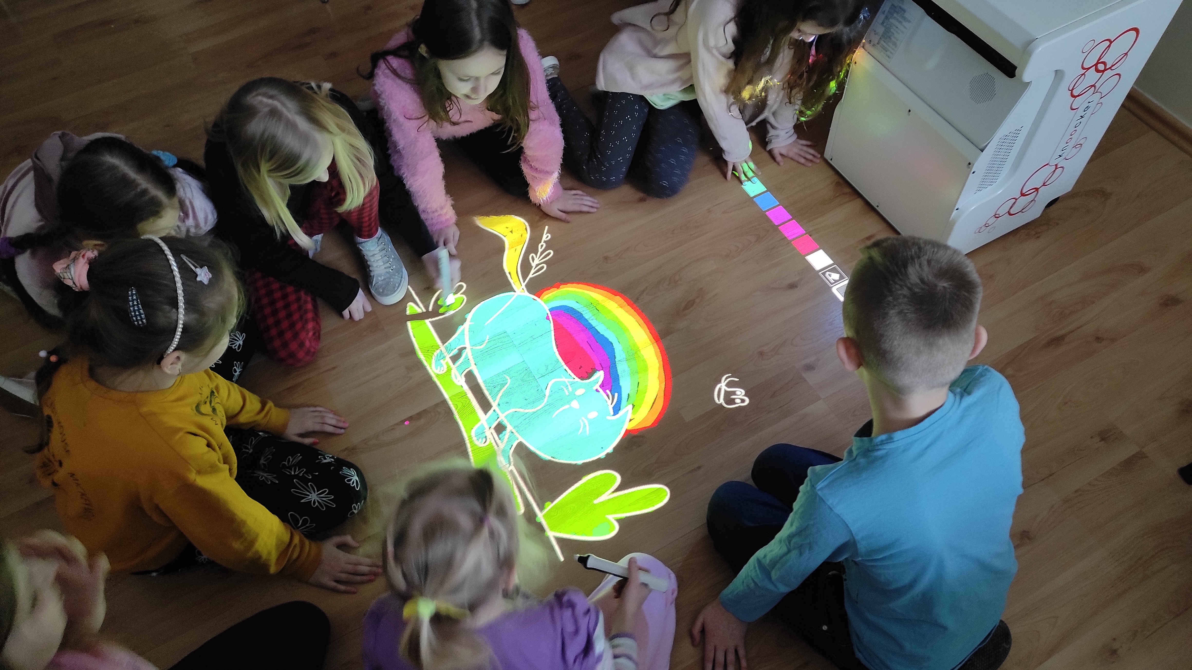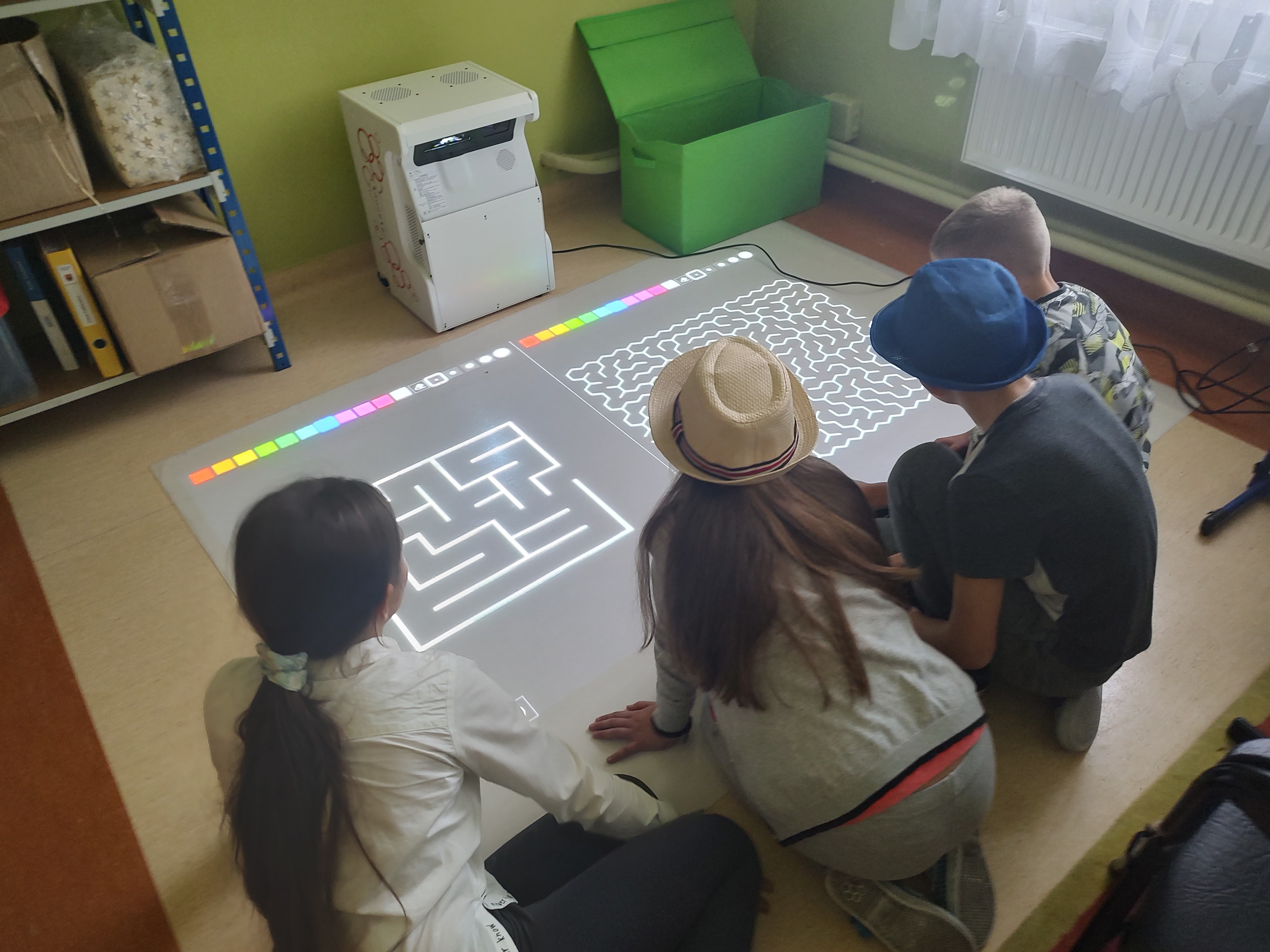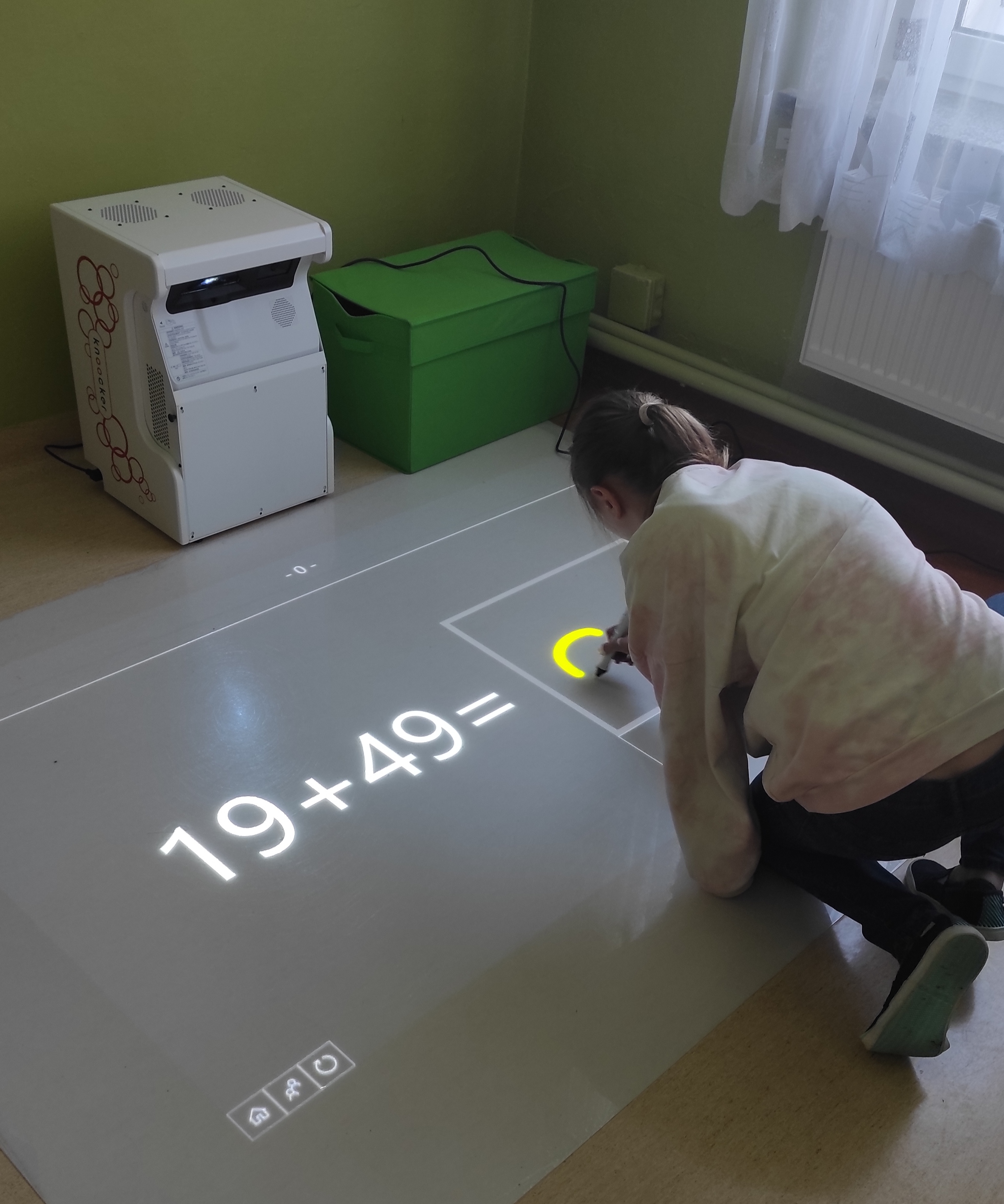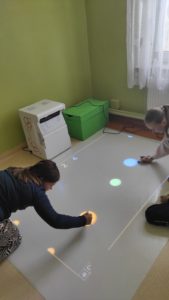 Wykorzystanie Magicznego Boxa – aktywnej podłogi na zajęciach korekcyjno – kompensacyjnych. W przyjemny i nowoczesny sposób stymulujemy ogólny rozwój dziecka (poznawczy i emocjonalny), a przede wszystkim pomagamy w przezwyciężaniu trudność w opanowywaniu określonych umiejętności i w przyswajaniu danej wiedzy.