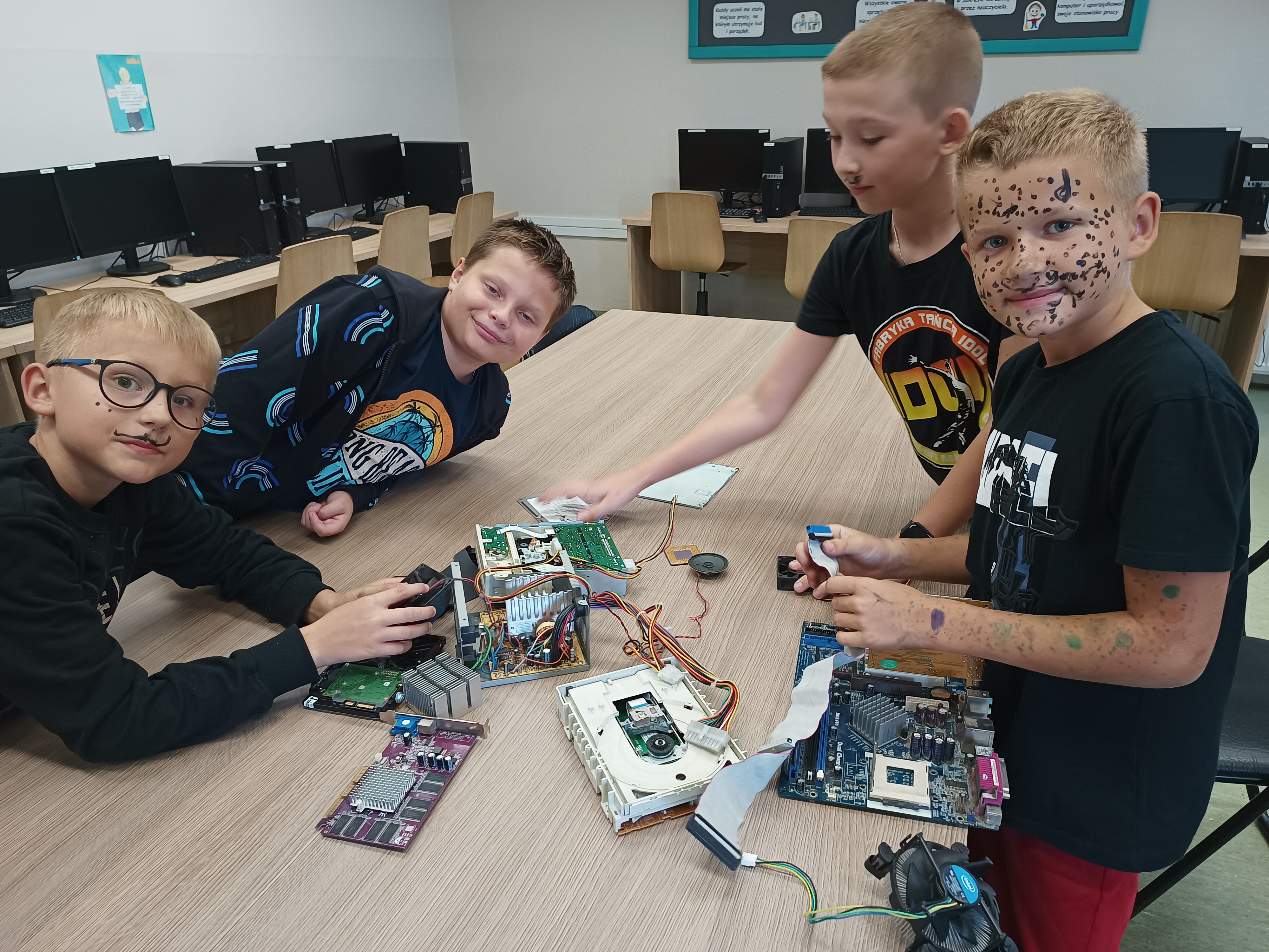 Sprzęt zakupiony w ramach programu Laboratoria Przyszłości bardzo spodobał się naszym uczniom. Pierwsze lekcje to: wyścig Photonów, programowanie kolorami Ozobotów, wydruk 3D pamiątkowych medali na Dzień Nauczyciela, programowanie poprzez zabawę na tabletach, składanie komputera. Zainteresowani programowaniem uczniowie mogą brać udział w konkursach Logia, Olimpiada Informatyczna Juniorów oraz Animacja w Scratch nt. Marii Konopnickiej.