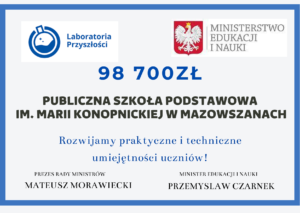 Publiczna Szkoła Podstawowa im. Marii Konopnickiej w Mazowszanach jest beneficjentem projektu „Laboratoria przyszłości”.