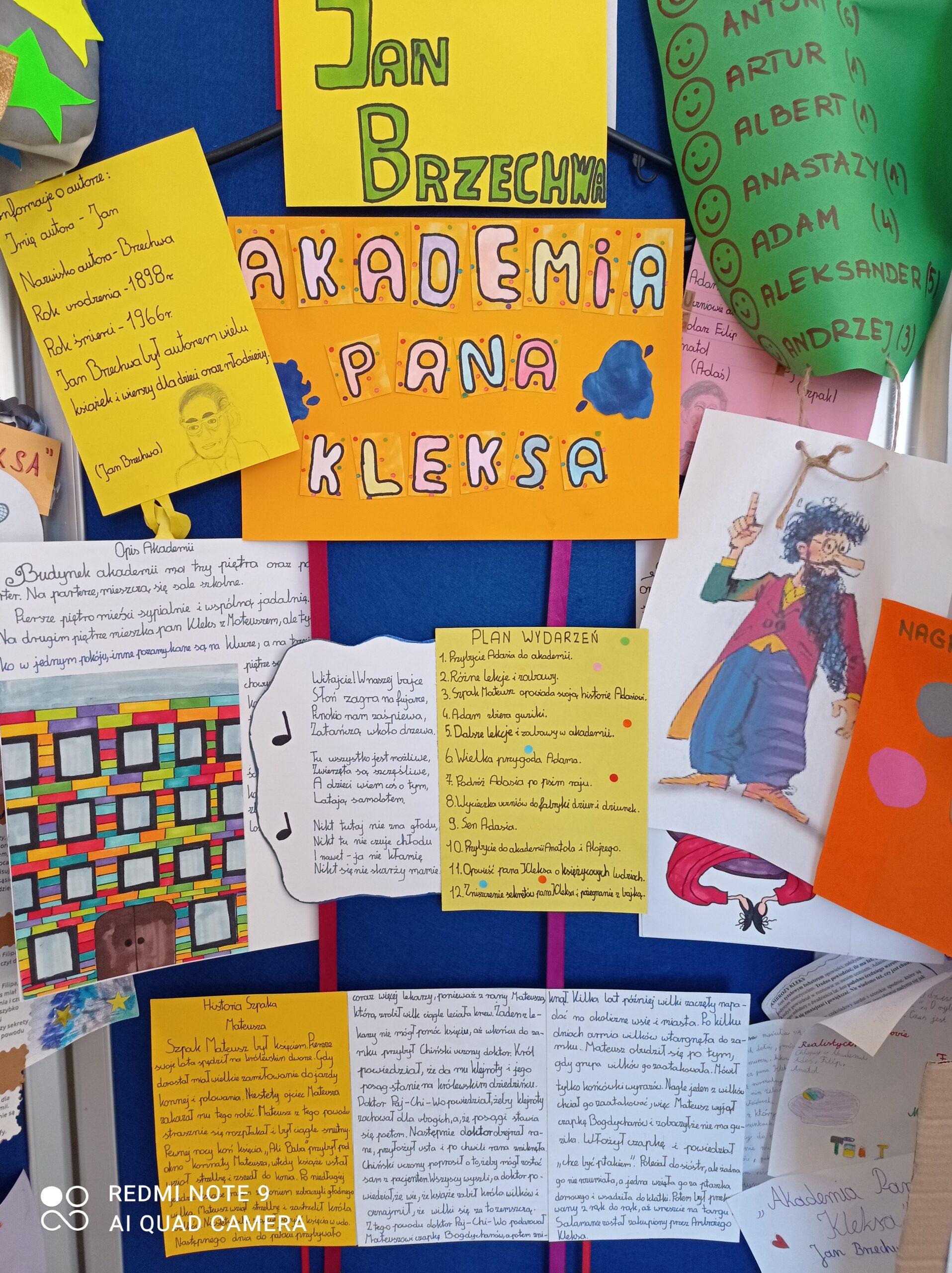 Na wieszakach zwykle wiszą ubrania, ale w naszej szkole powiesiliśmy… lekturę, a dokładniej – notatki z nią związane. „Lektura na wieszaku” to wspaniałe prace czwartoklasistów będące podsumowaniem omawiania lektury szkolnej – „Akademia pana Kleksa” Jana Brzechwy. Jest to również efekt prowadzonej w szkole innowacji pedagogicznej z języka polskiego.