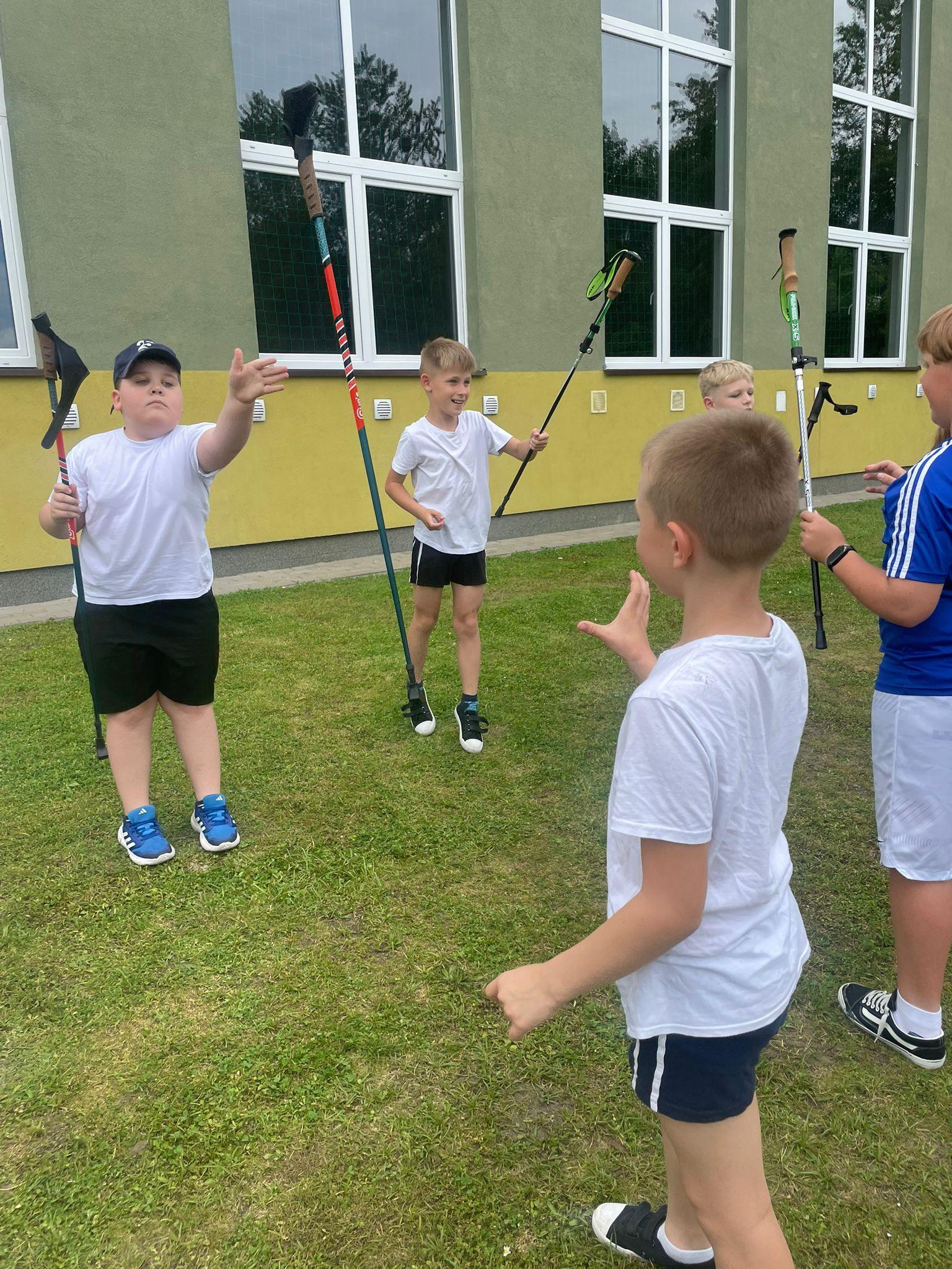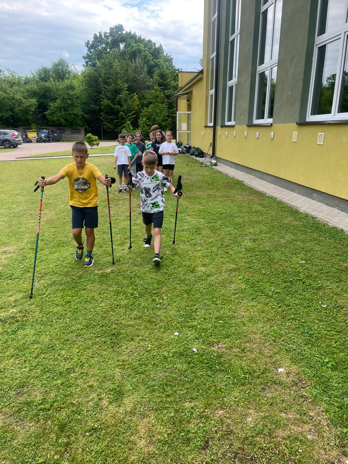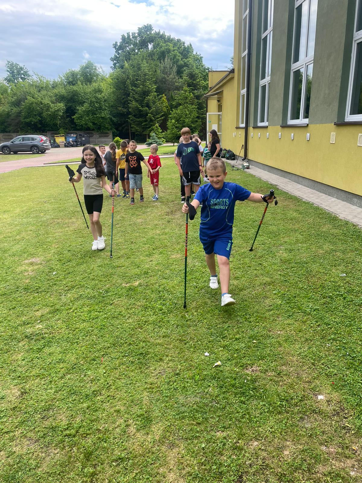 Zajęcia przebiegły w radosnej atmosferze, a uczniowie byli bardzo zaangażowani i chętni do wspólnej aktywności. Wspólnie doszli do wniosku, że ruch może być przyjemnością i świetną zabawą, a kijki – nie tylko narzędziem do marszu, ale również rekwizytem do kreatywnych gier.