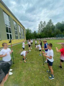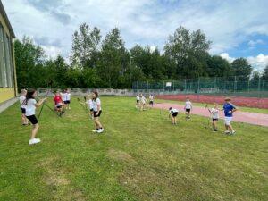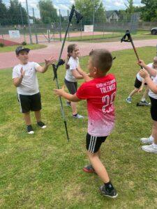 • Tor przeszkód z kijkami – dzieci przechodziły wyznaczoną trasę z kijkami.