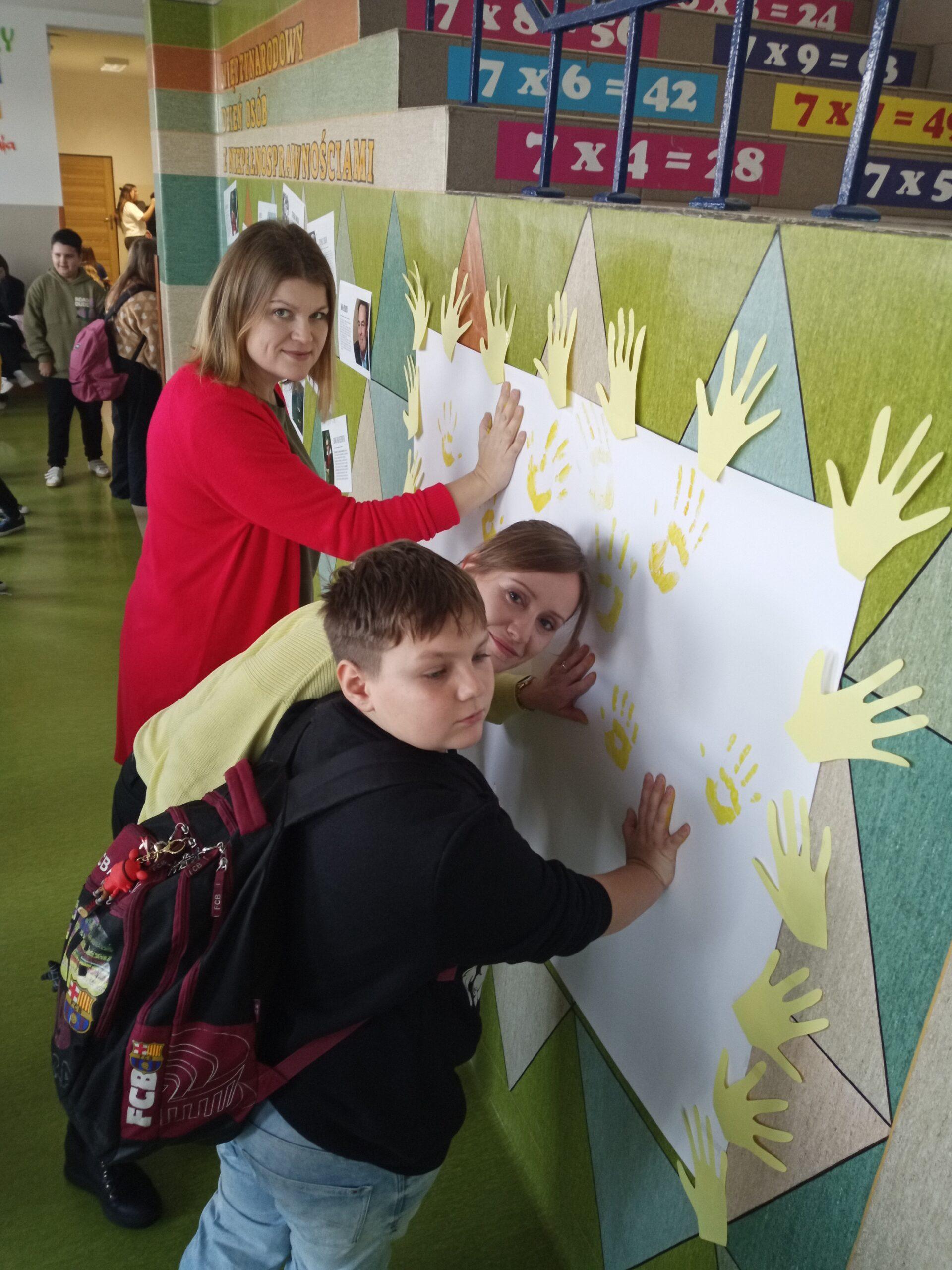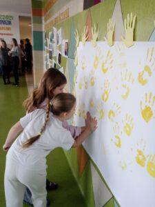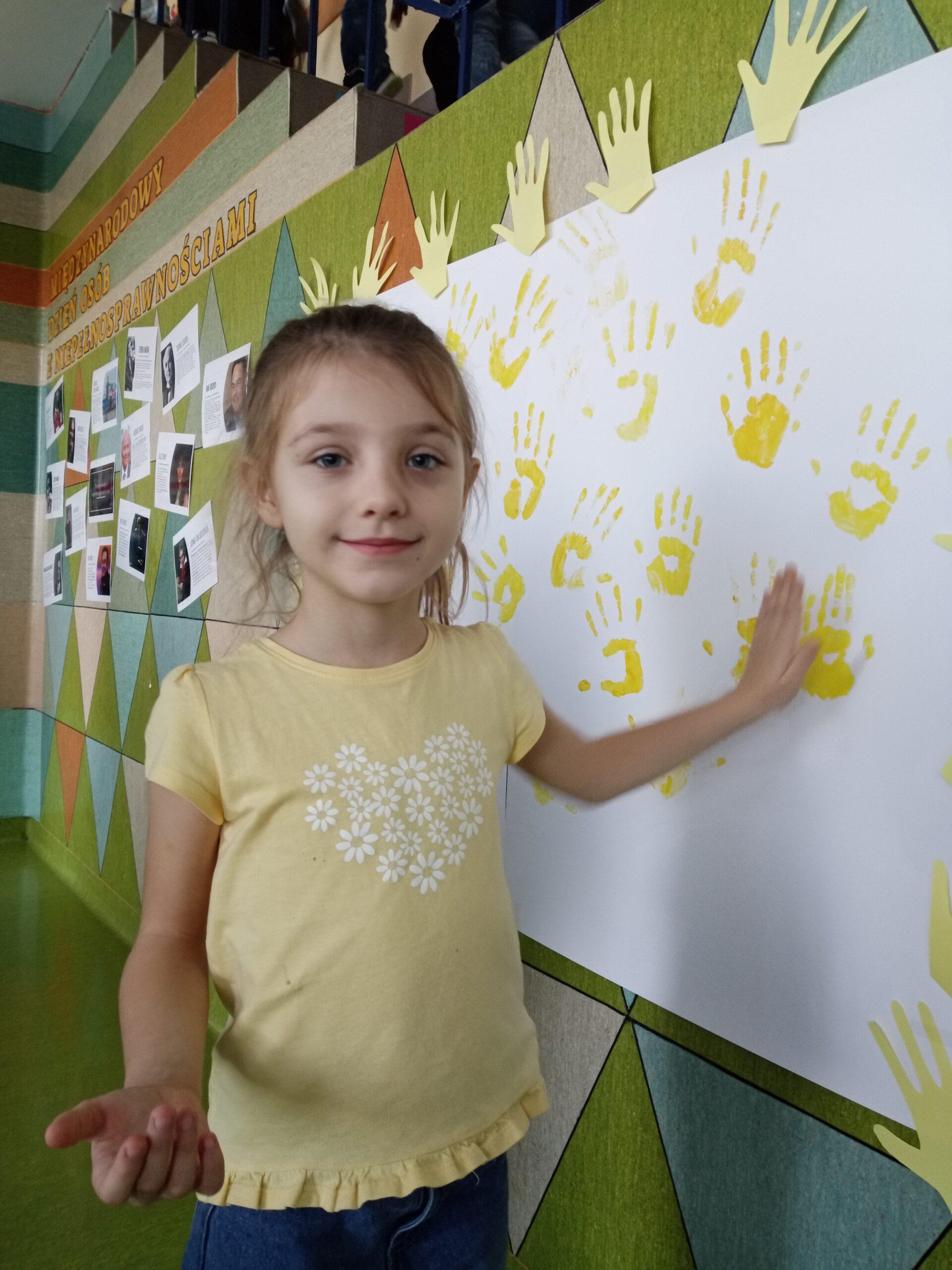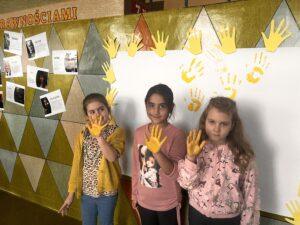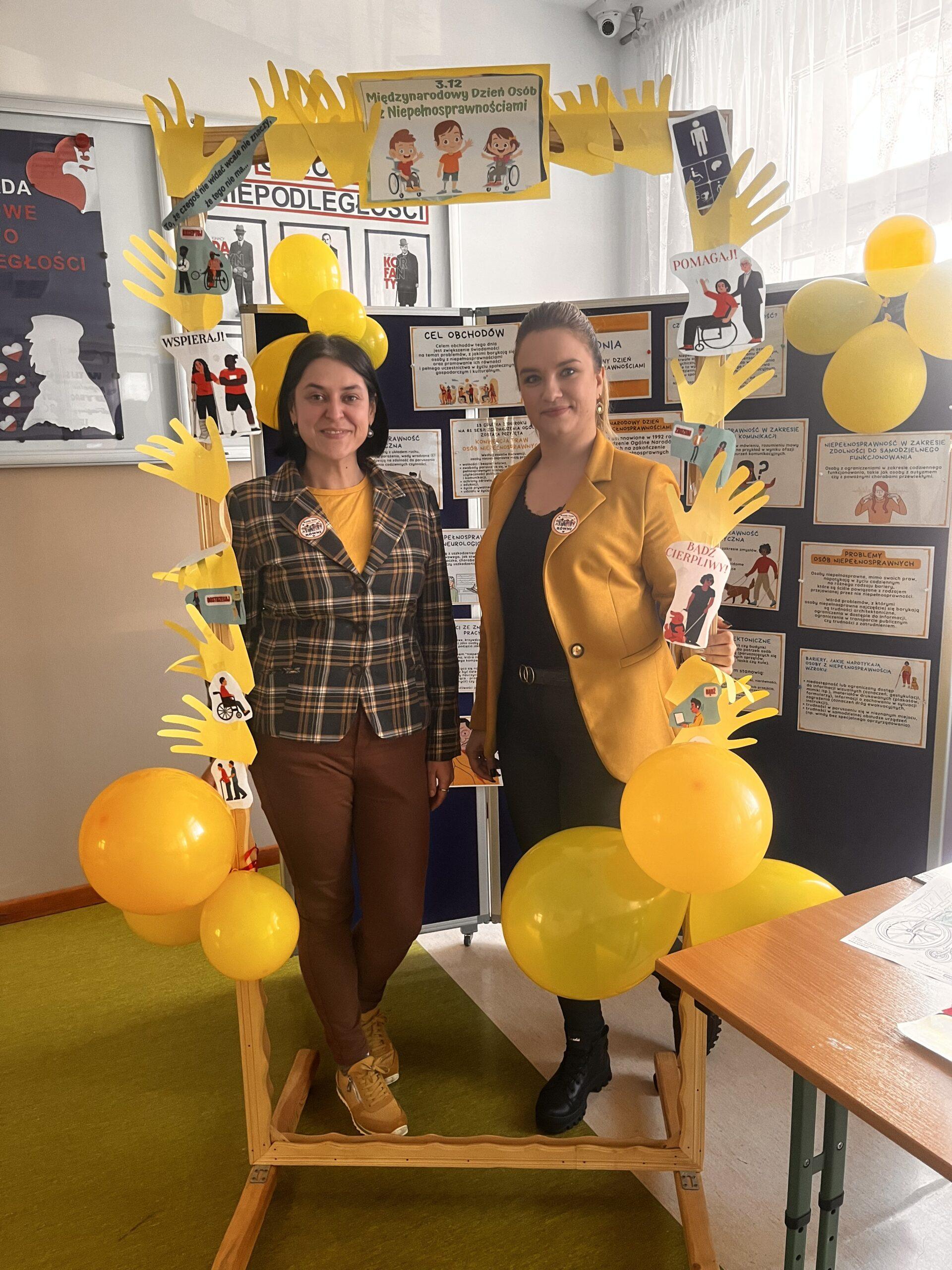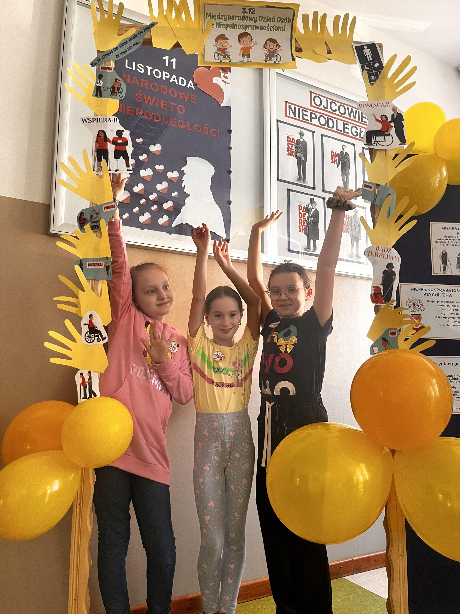 3 grudnia 2024 roku w naszej szkole obchodziliśmy Międzynarodowy Dzień Osób Niepełnosprawnych. Z tej okazji nauczyciele współorganizujący przygotowali na szkolnym korytarzu kolorową gazetkę informacyjną. Znalazły się w niej fakty, dotyczące znanych oraz wybitnych osób niepełnosprawnych, które miały wpływ na naukę, sztukę, kulturę oraz rozwój inżynierii. Uczniowie mogli zapoznać się z ciekawostkami na temat wybranych osób, a następnie w duchu solidarności kolorowali obrazki o tematyce związanej z tym dniem. Wraz z nauczycielami odciskali na brystolu swoje dłonie w kolorze żółtym na znak wsparcia i akceptacji wobec osób z niepełnosprawnościami.