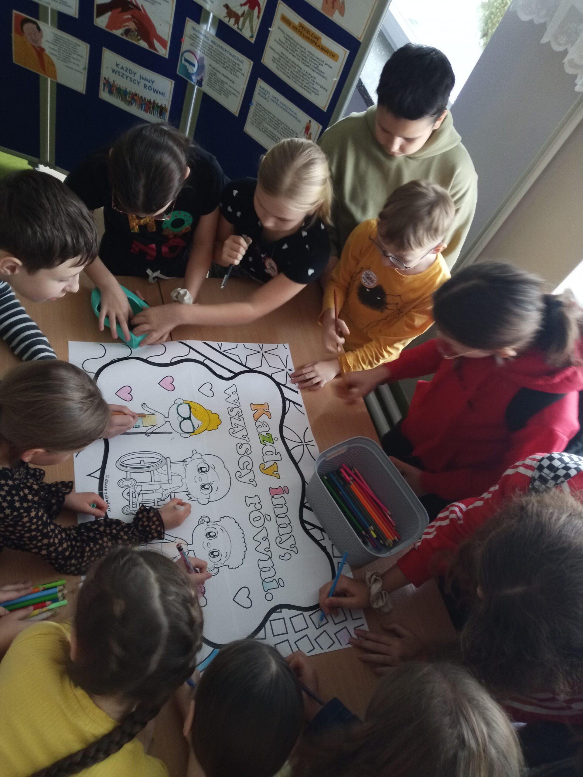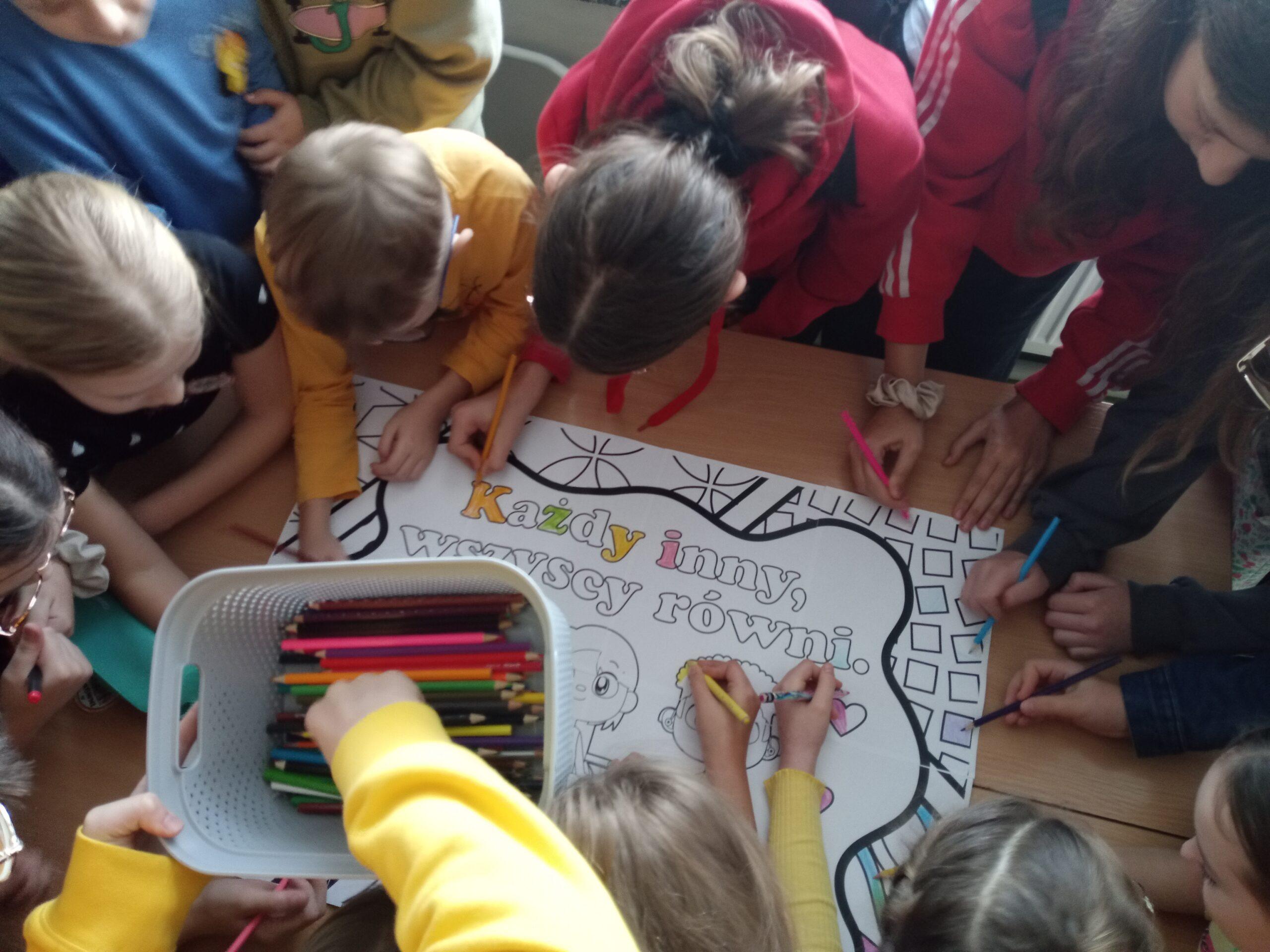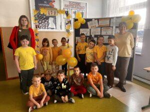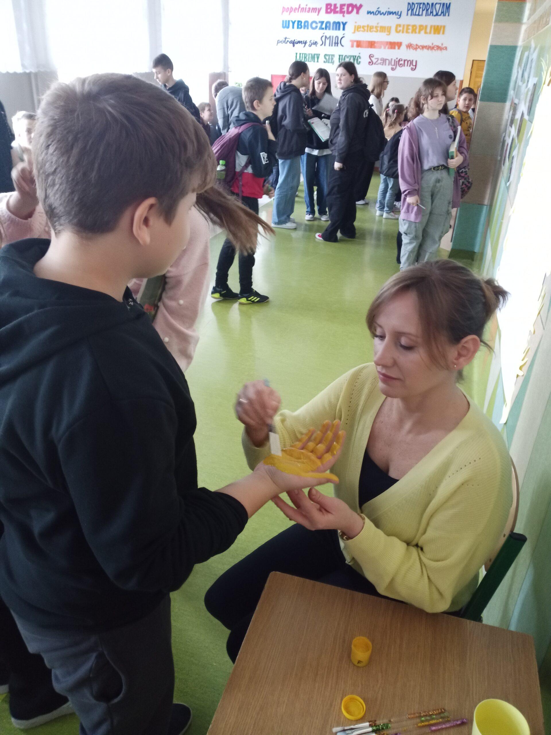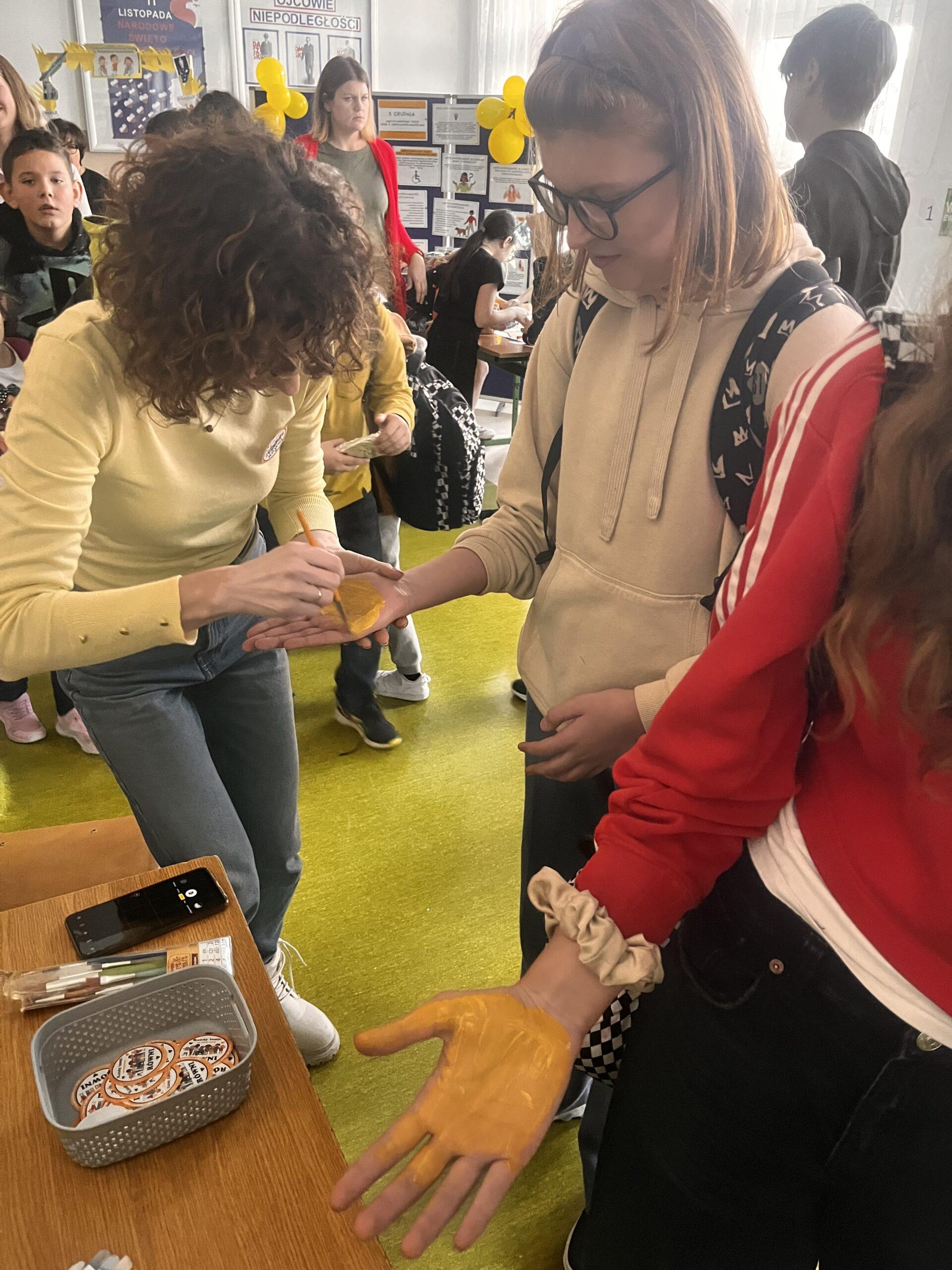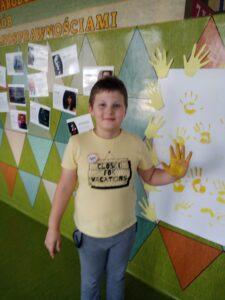 3 grudnia 2024 roku w naszej szkole obchodziliśmy Międzynarodowy Dzień Osób Niepełnosprawnych. Z tej okazji nauczyciele współorganizujący przygotowali na szkolnym korytarzu kolorową gazetkę informacyjną. Znalazły się w niej fakty, dotyczące znanych oraz wybitnych osób niepełnosprawnych, które miały wpływ na naukę, sztukę, kulturę oraz rozwój inżynierii. Uczniowie mogli zapoznać się z ciekawostkami na temat wybranych osób, a następnie w duchu solidarności kolorowali obrazki o tematyce związanej z tym dniem. Wraz z nauczycielami odciskali na brystolu swoje dłonie w kolorze żółtym na znak wsparcia i akceptacji wobec osób z niepełnosprawnościami.