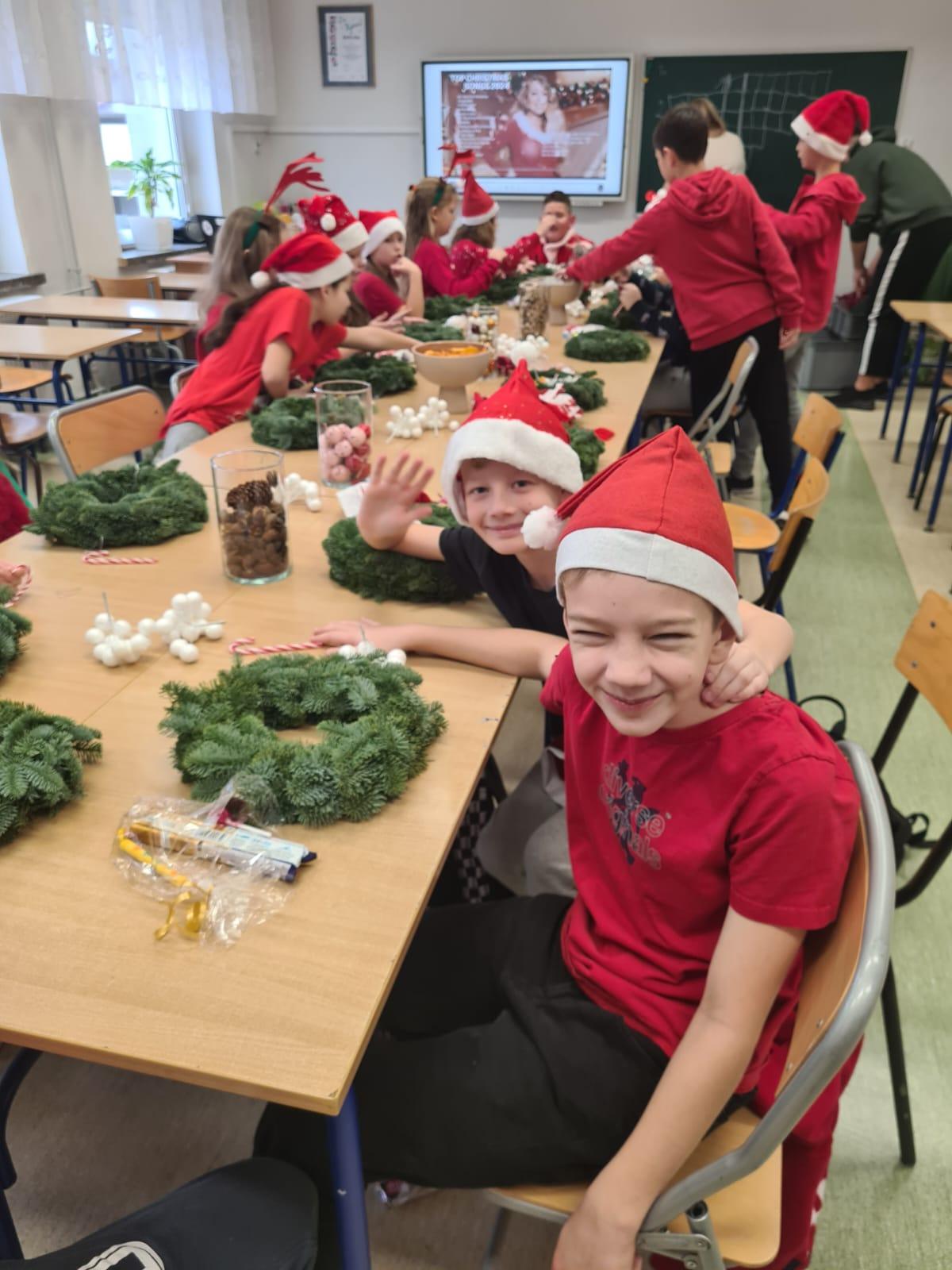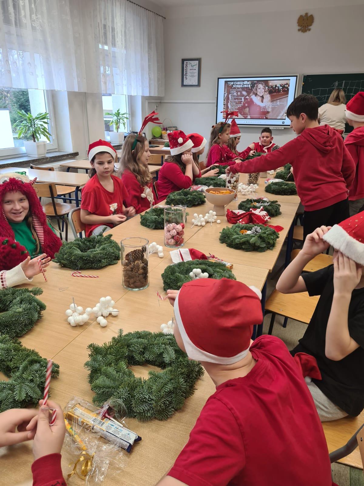 6 grudnia, z okazji Mikołajek, uczniowie klasy 4a mieli okazję wziąć udział w wyjątkowych warsztatach świątecznych, które odbyły się w naszej szkole. Tematem przewodnim zajęć było ozdabianie bożonarodzeniowych wianków, co wprowadziło wszystkich w magiczny nastrój zbliżających się świąt.