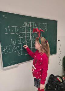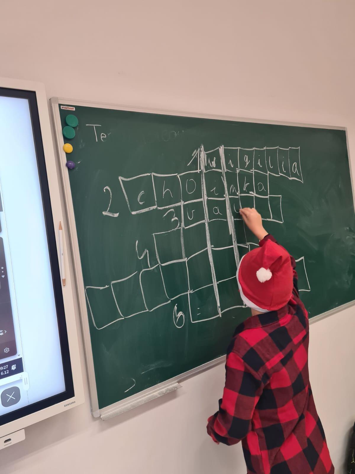 Dodatkową atrakcją była wspólna zabawa przy świątecznej krzyżówce. Zadanie wymagało od uczniów znajomości bożonarodzeniowych tradycji, symboli oraz zwyczajów, co okazało się doskonałą okazją do nauki przez zabawę. Całość warsztatów umilały melodie znanych świątecznych piosenek, które wprowadziły wszystkich w jeszcze bardziej radosny i świąteczny nastrój.