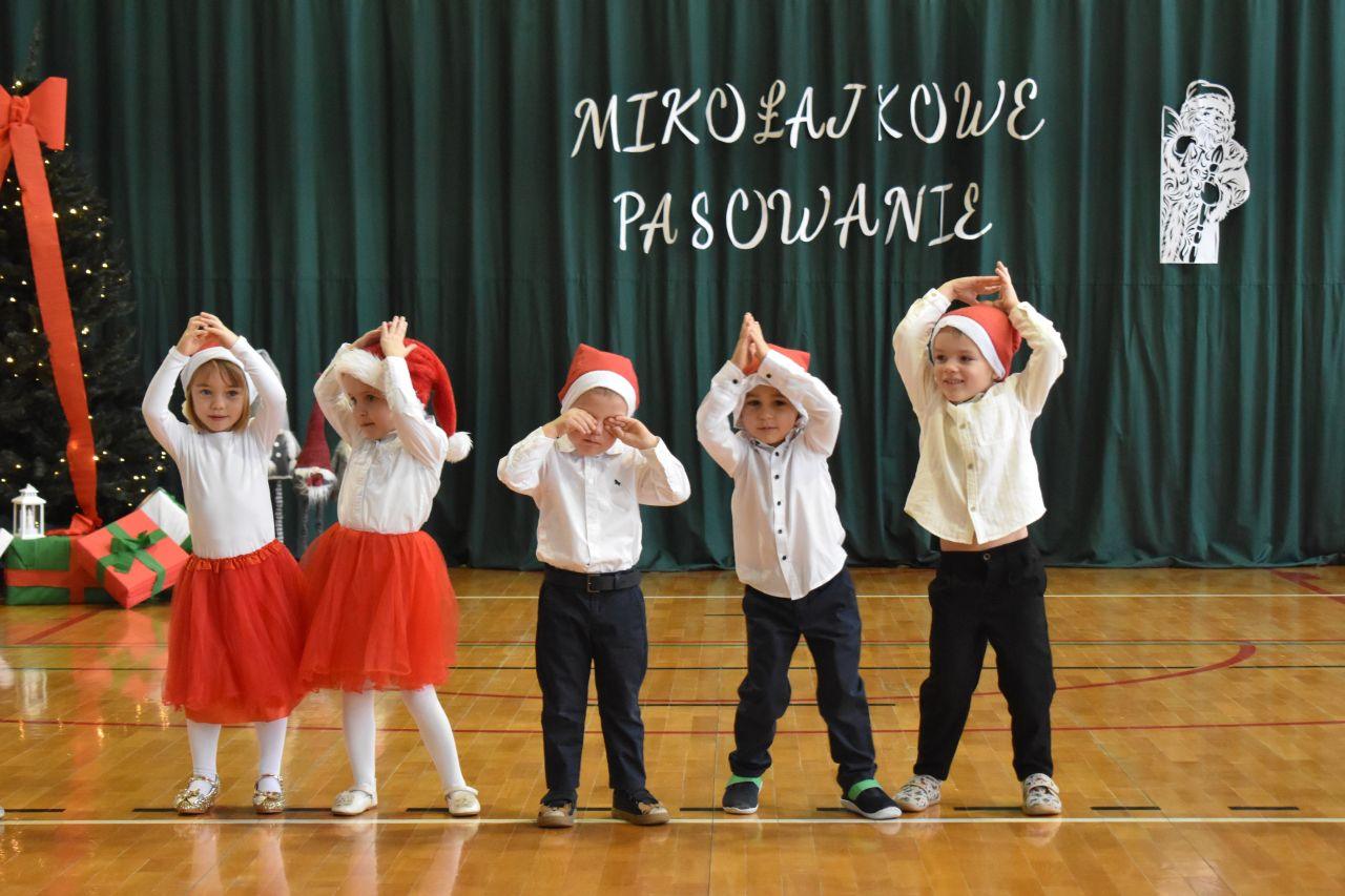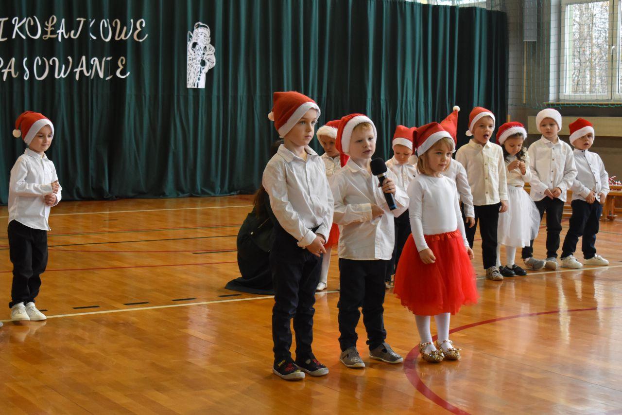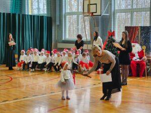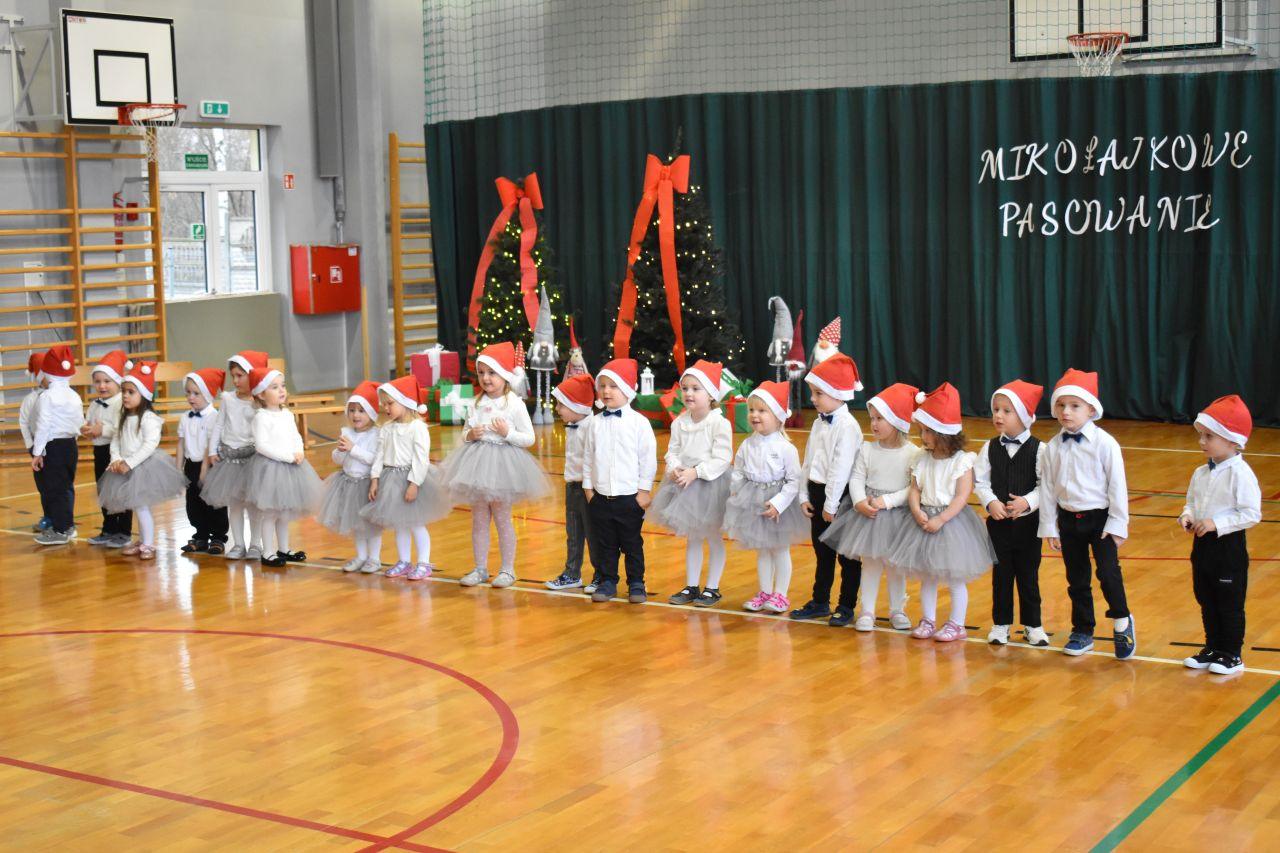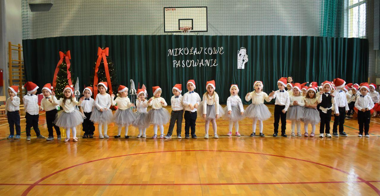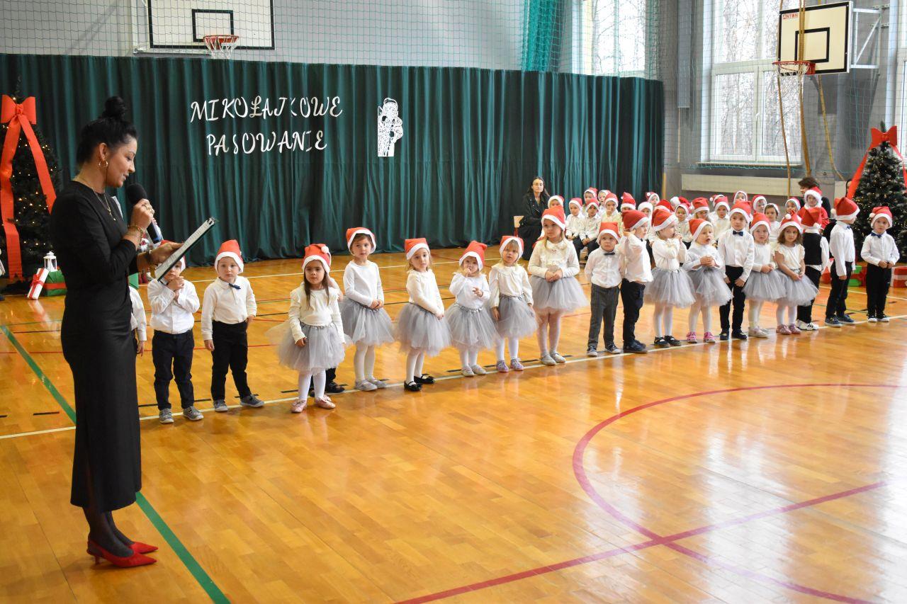 Dnia 05.12.2025r. w szkolnej sali gimnastycznej odbyła się wyjątkowa uroczystość Mikołajkowego Pasowania, podczas której swoje występy zaprezentowały grupy Stokrotki i Niezapominajki. Dzieci z wielkim zaangażowaniem recytowały przygotowane wierszyki, śpiewały piosenki oraz tańczyły mikołajkowe tańce, co wywołało wiele radości i uśmiechów na twarzach zarówno dzieci, jak i zgromadzonych gości. Ceremonię pasowania na przedszkolaka i na czterolatka przeprowadziła Pani Dyrektor, która z wielką serdecznością dokonała tego ważnego aktu. Po uroczystości dzieci otrzymały prezenty od Świętego Mikołaja, który z zaciekawieniem oglądał wszystkie występy i z uśmiechem na twarzy podziwiał talenty małych artystów. Na widowni zasiedli rodzice wszystkich przedszkolaków, którzy z dumą i radością obserwowali występy swoich pociech. Po oficjalnej części wszyscy udali się na wspólny poczęstunek, przygotowany przez rodziców, co stworzyło miłą i ciepłą atmosferę integracji. To był naprawdę wyjątkowy dzień pełen emocji, śmiechu i wspólnej radości, który na długo pozostanie w pamięci dzieci, rodziców i całej społeczności przedszkolnej.