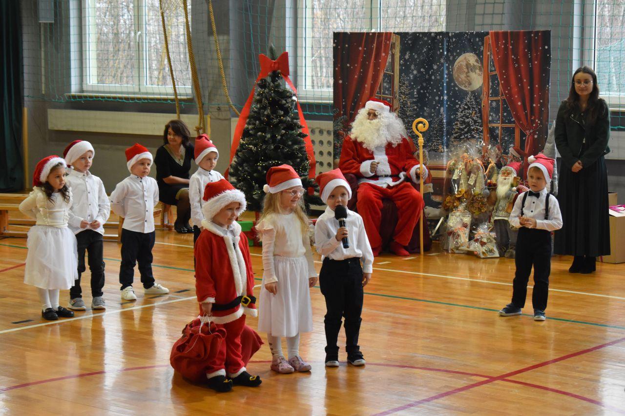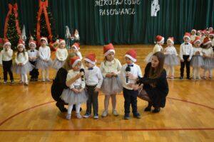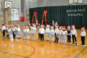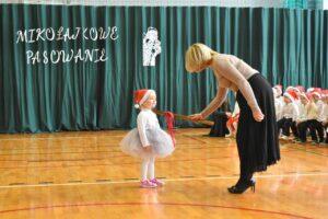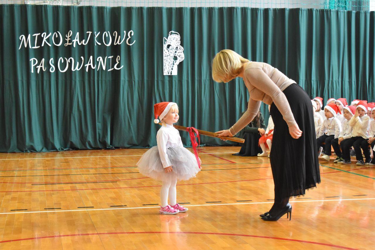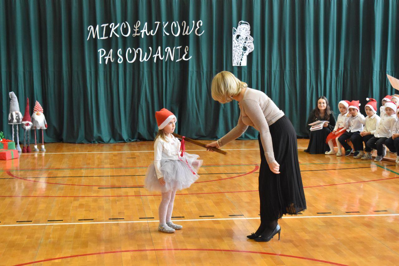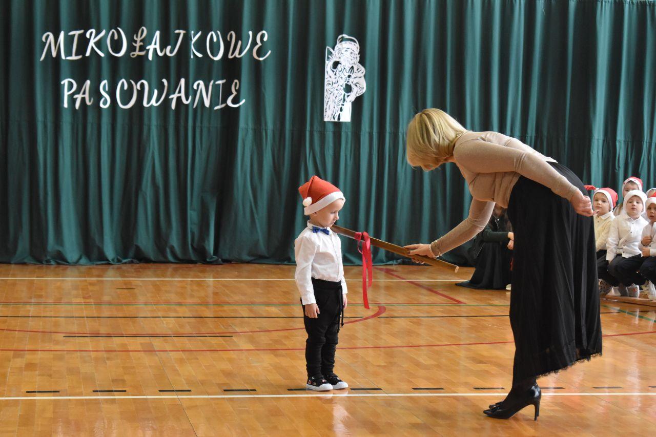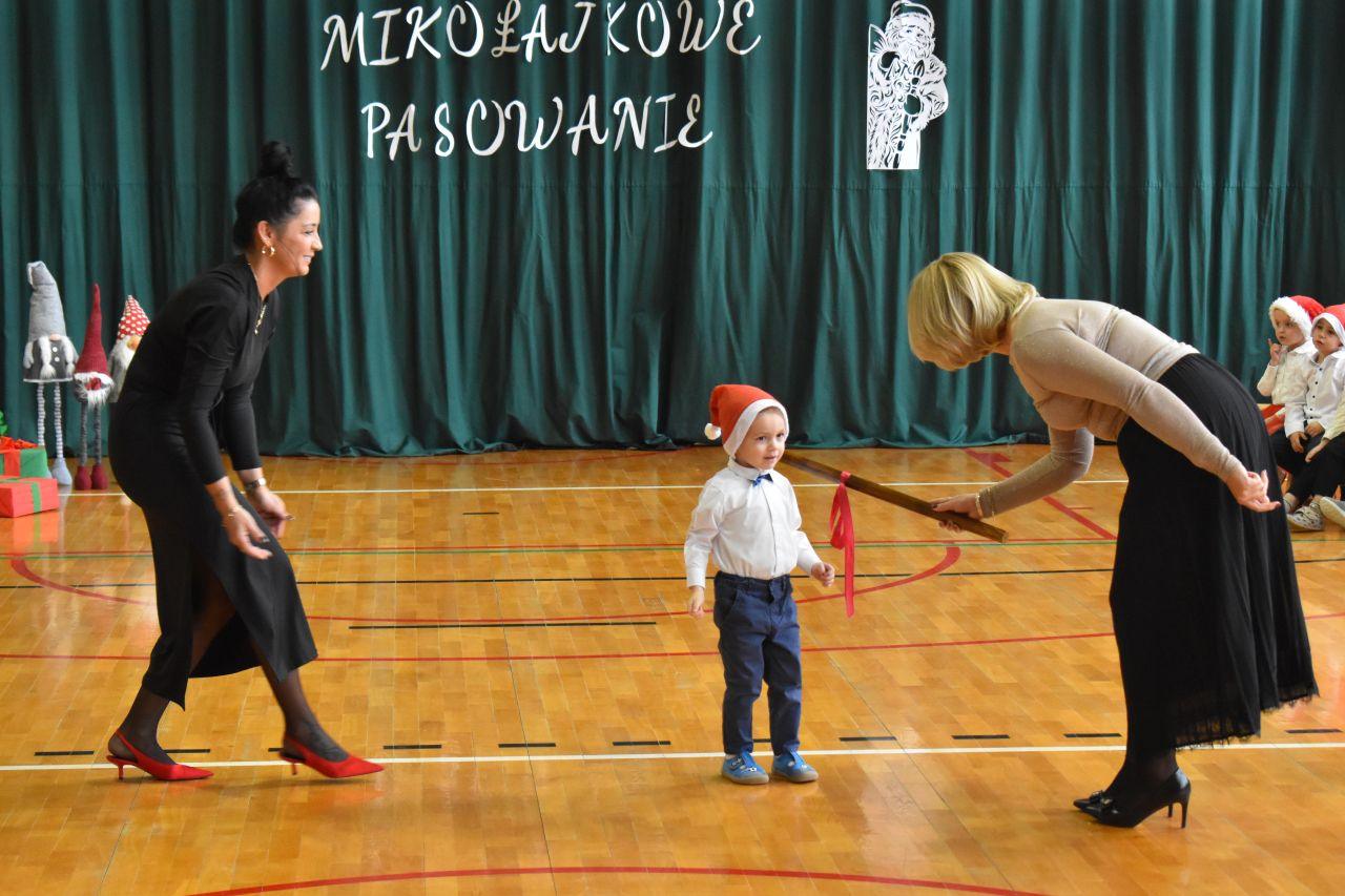 Dnia 05.12.2025r. w szkolnej sali gimnastycznej odbyła się wyjątkowa uroczystość Mikołajkowego Pasowania, podczas której swoje występy zaprezentowały grupy Stokrotki i Niezapominajki. Dzieci z wielkim zaangażowaniem recytowały przygotowane wierszyki, śpiewały piosenki oraz tańczyły mikołajkowe tańce, co wywołało wiele radości i uśmiechów na twarzach zarówno dzieci, jak i zgromadzonych gości. Ceremonię pasowania na przedszkolaka i na czterolatka przeprowadziła Pani Dyrektor, która z wielką serdecznością dokonała tego ważnego aktu. Po uroczystości dzieci otrzymały prezenty od Świętego Mikołaja, który z zaciekawieniem oglądał wszystkie występy i z uśmiechem na twarzy podziwiał talenty małych artystów. Na widowni zasiedli rodzice wszystkich przedszkolaków, którzy z dumą i radością obserwowali występy swoich pociech. Po oficjalnej części wszyscy udali się na wspólny poczęstunek, przygotowany przez rodziców, co stworzyło miłą i ciepłą atmosferę integracji. To był naprawdę wyjątkowy dzień pełen emocji, śmiechu i wspólnej radości, który na długo pozostanie w pamięci dzieci, rodziców i całej społeczności przedszkolnej.