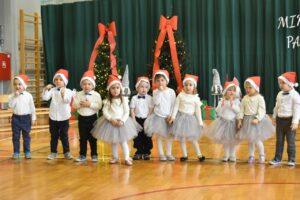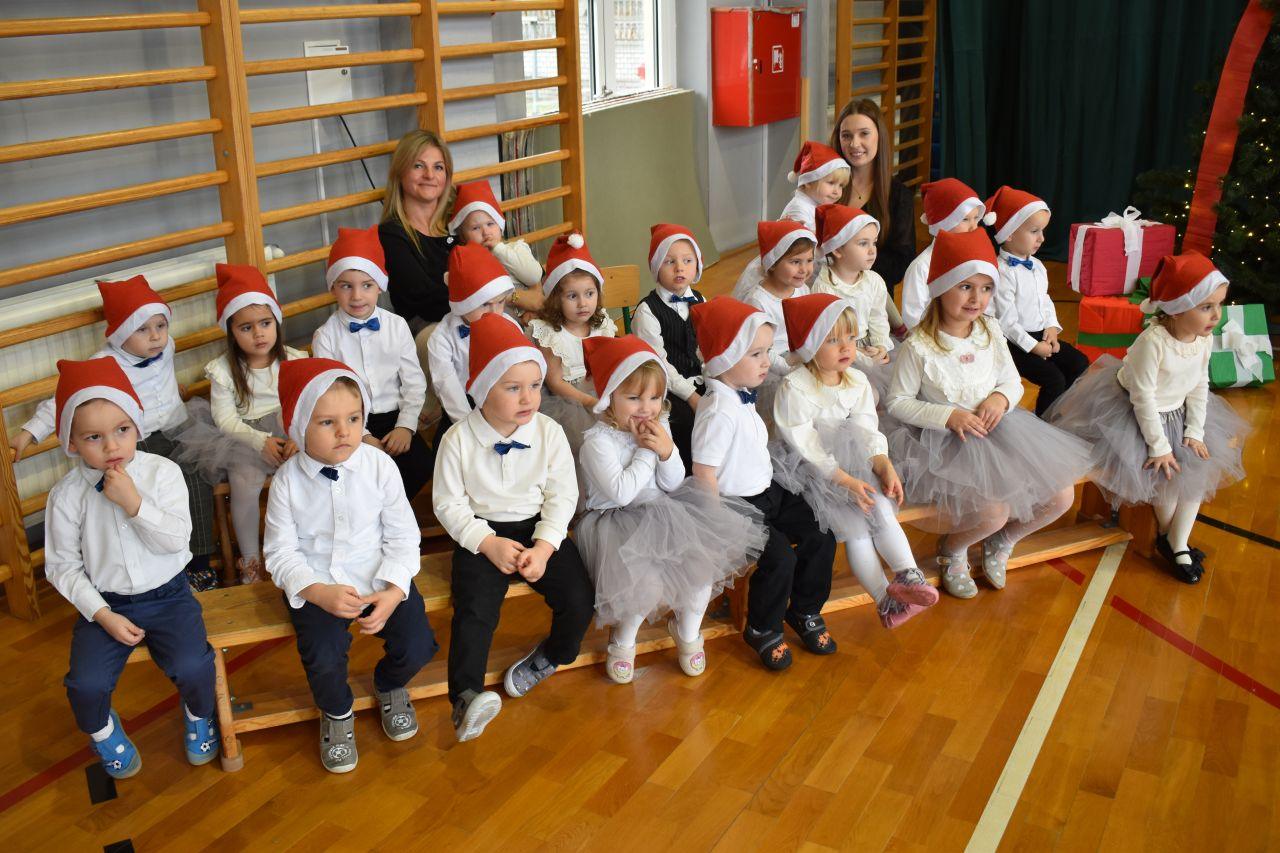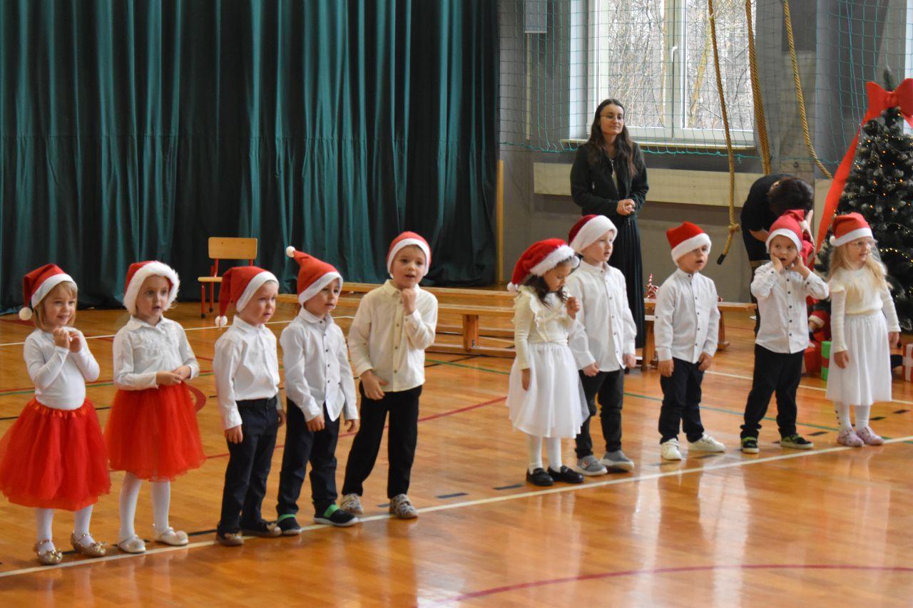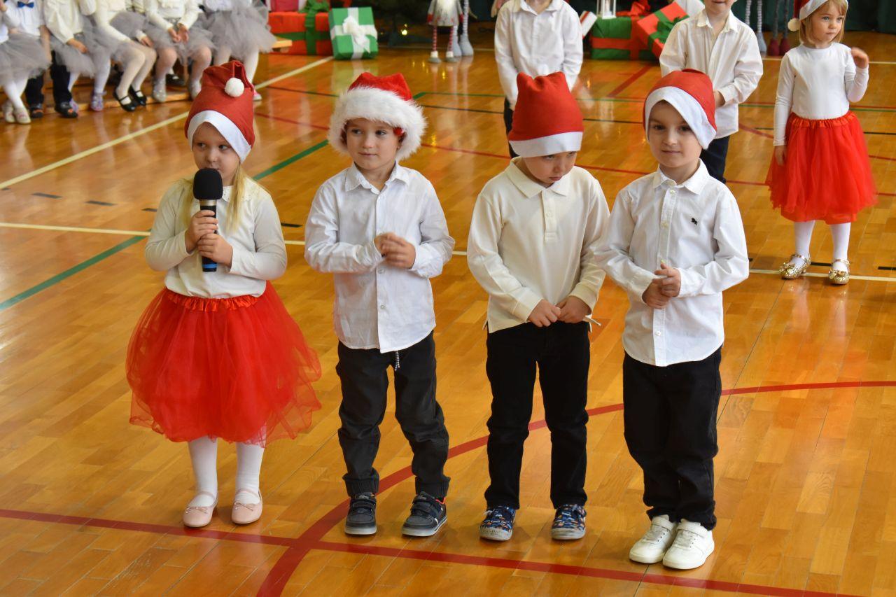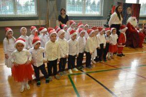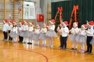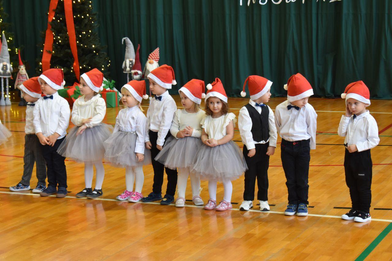 Dnia 05.12.2025r. w szkolnej sali gimnastycznej odbyła się wyjątkowa uroczystość Mikołajkowego Pasowania, podczas której swoje występy zaprezentowały grupy Stokrotki i Niezapominajki. Dzieci z wielkim zaangażowaniem recytowały przygotowane wierszyki, śpiewały piosenki oraz tańczyły mikołajkowe tańce, co wywołało wiele radości i uśmiechów na twarzach zarówno dzieci, jak i zgromadzonych gości. Ceremonię pasowania na przedszkolaka i na czterolatka przeprowadziła Pani Dyrektor, która z wielką serdecznością dokonała tego ważnego aktu. Po uroczystości dzieci otrzymały prezenty od Świętego Mikołaja, który z zaciekawieniem oglądał wszystkie występy i z uśmiechem na twarzy podziwiał talenty małych artystów. Na widowni zasiedli rodzice wszystkich przedszkolaków, którzy z dumą i radością obserwowali występy swoich pociech. Po oficjalnej części wszyscy udali się na wspólny poczęstunek, przygotowany przez rodziców, co stworzyło miłą i ciepłą atmosferę integracji. To był naprawdę wyjątkowy dzień pełen emocji, śmiechu i wspólnej radości, który na długo pozostanie w pamięci dzieci, rodziców i całej społeczności przedszkolnej.